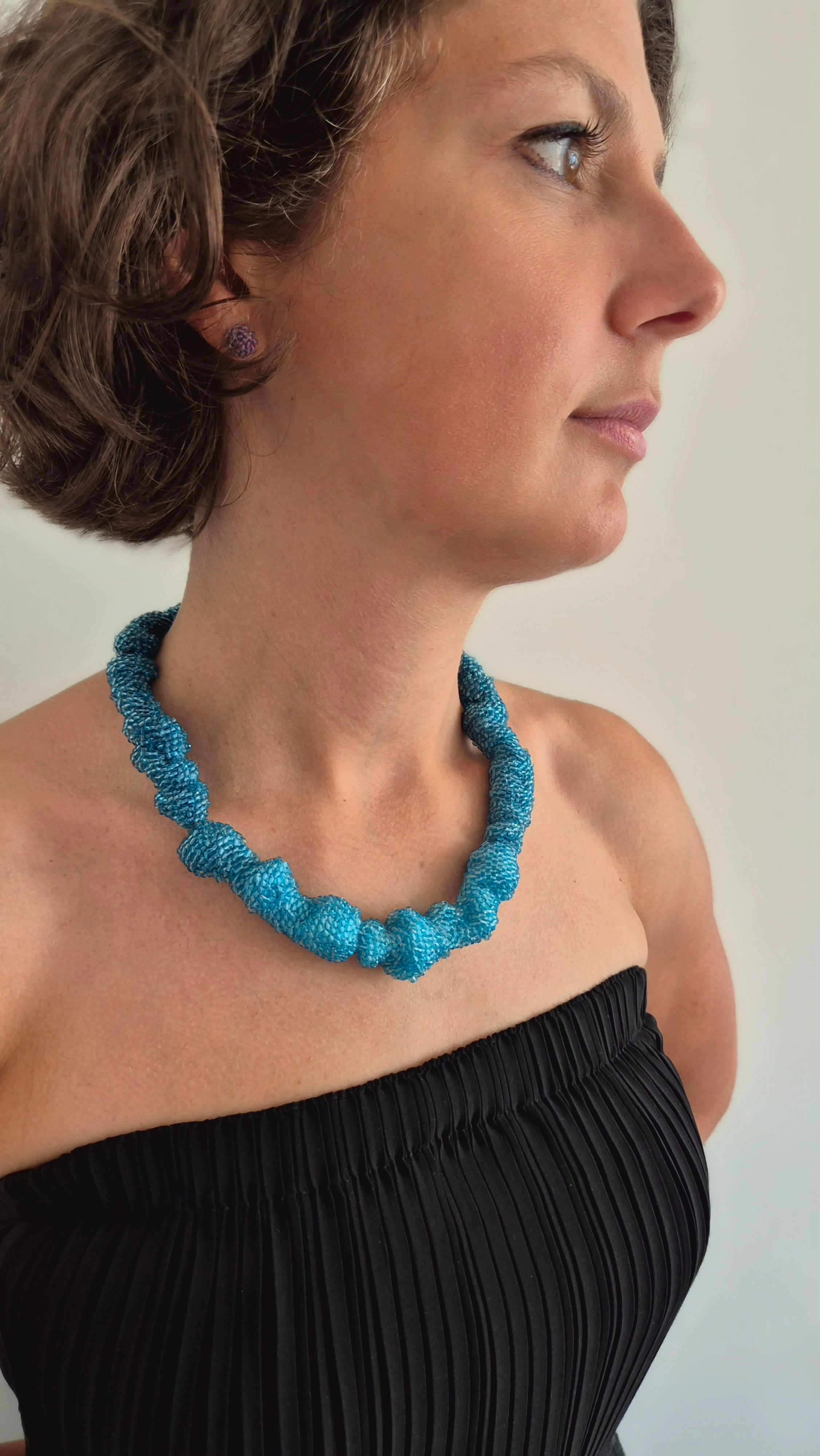 Ein Meter gehäkelter Halskette wiegt unter 100 Gramm