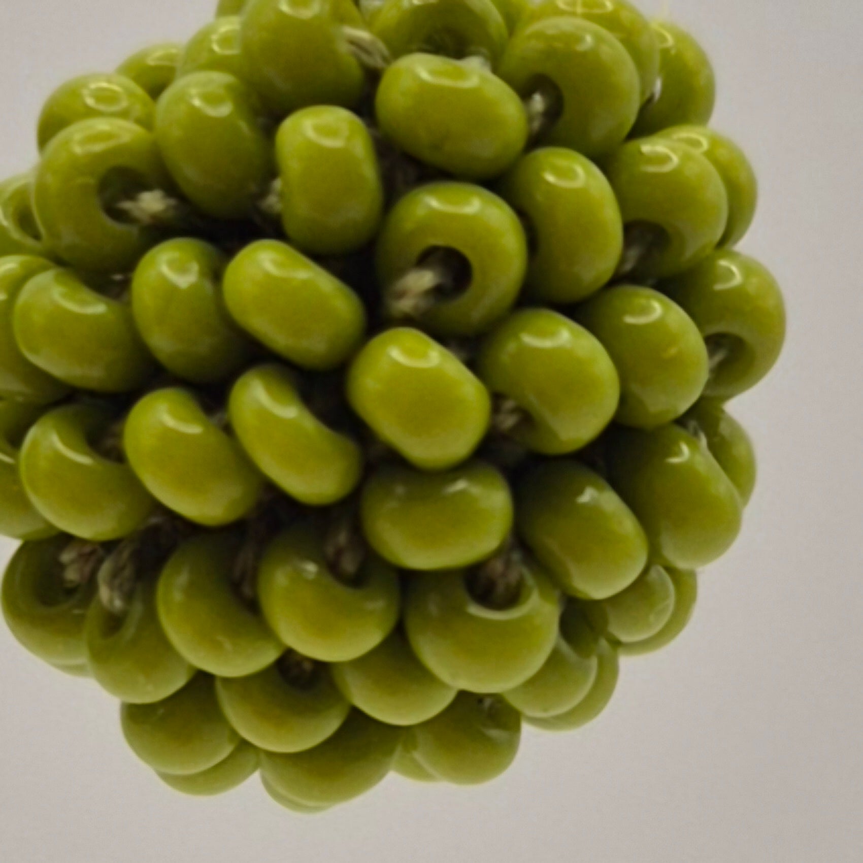 Einzigartiger LINNSI Armreif Auf Baumwollgarn aufgezogene 2mm große Rocailles Glasperlen, in aufwändiger Häkeltechnik von Hand hergestellt. Der Armreif ist aus 316 L Edelstahl (vergoldet) und besitzt eine Applikation in Form einer Linse - gehäkelt und vernäht. Der Schmuck kommt komplett ohne Kleber aus.