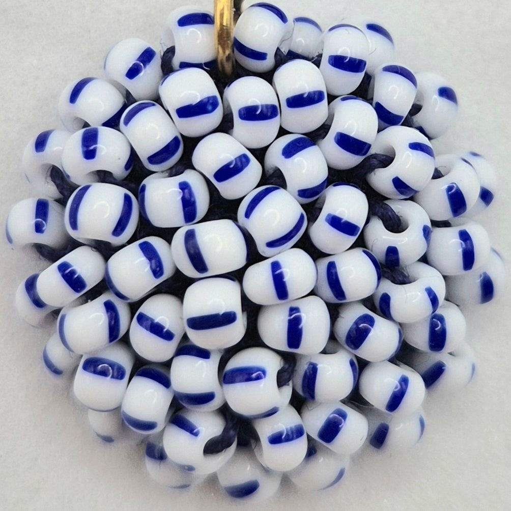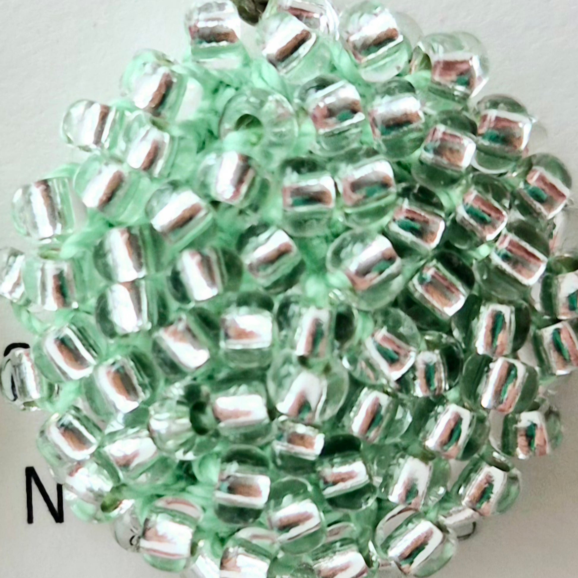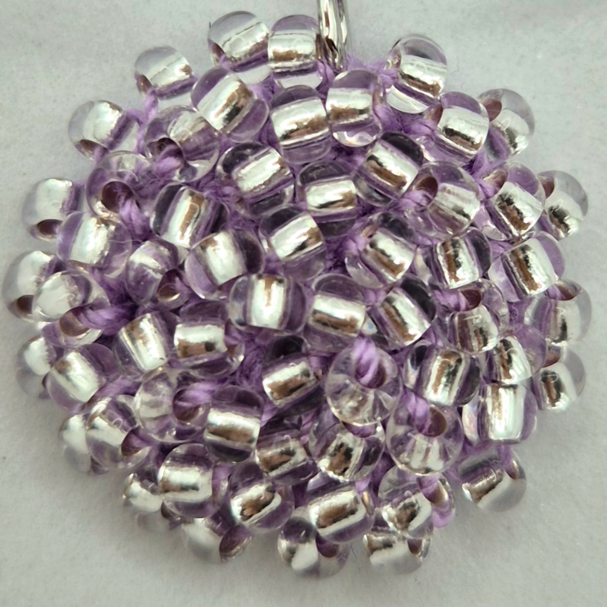 Einzigartige Brosche. LINNSI besteht aus 2,5 mm großen Rocaille Glasperlen (teils mit versilberten Glasperlenlöchern), die auf Baumwollgarn aufgezogen und in aufwändiger Häkeltechnik verarbeitet werden. Die Brosche kommt ohne Kleber aus.