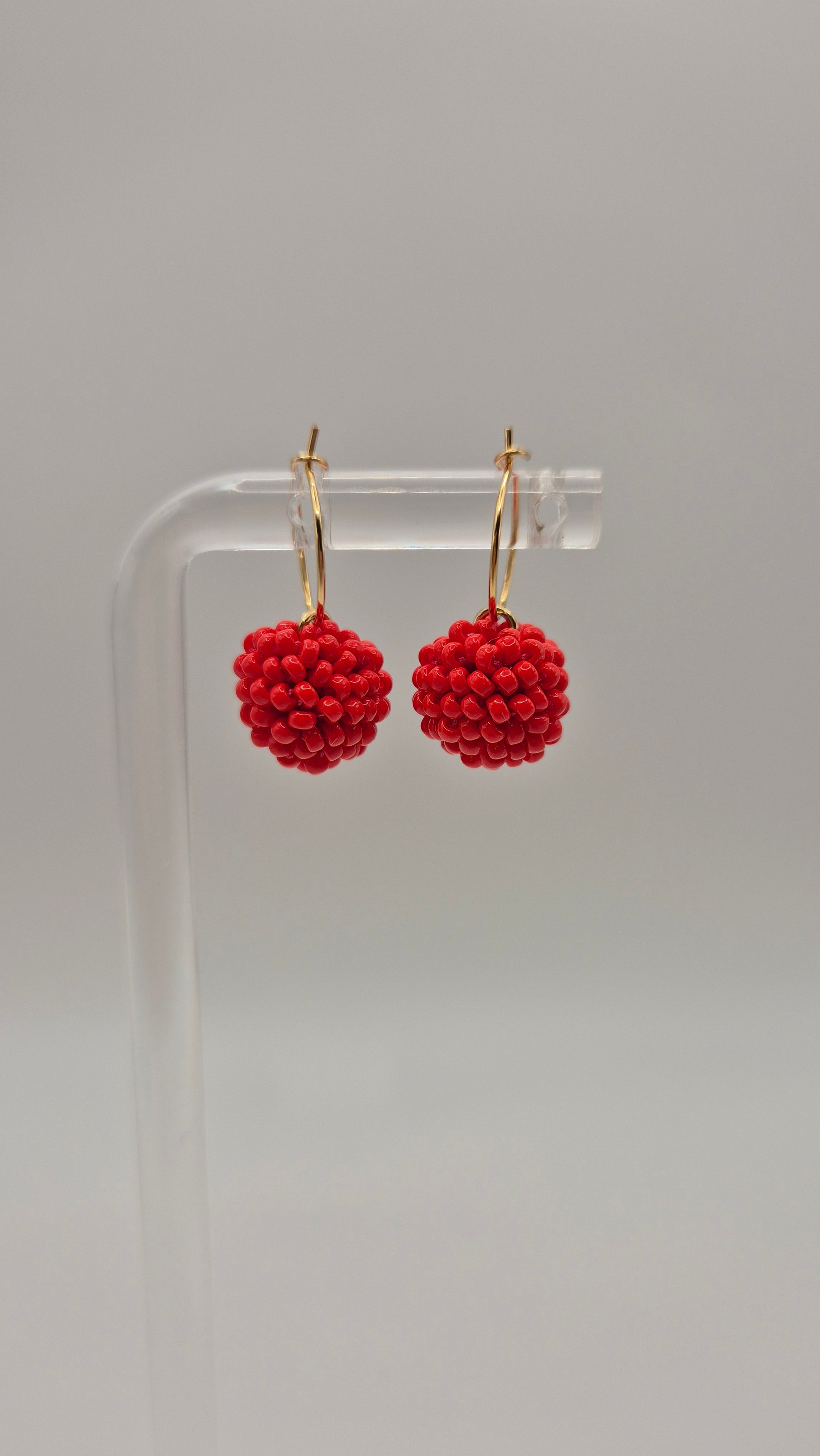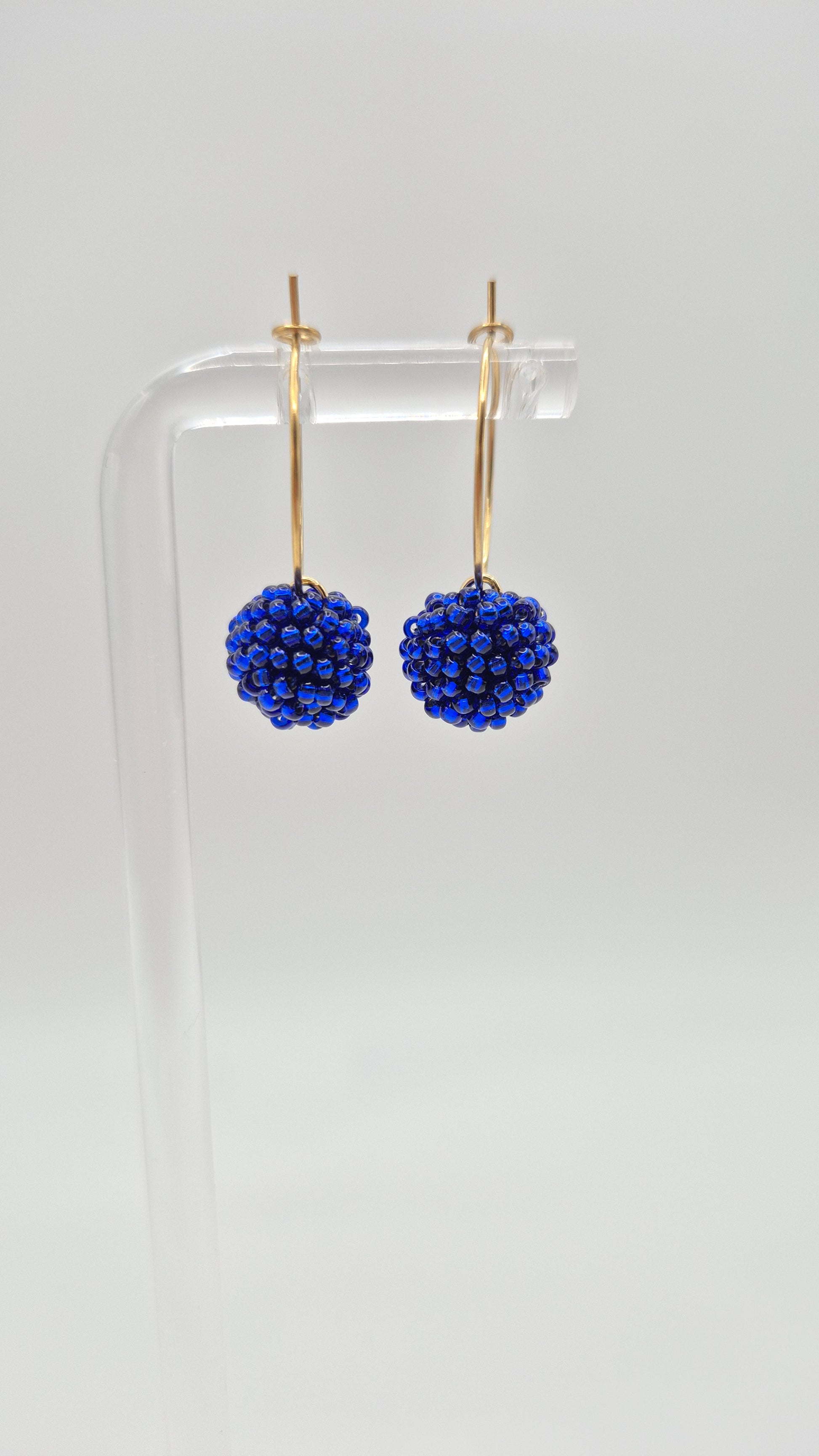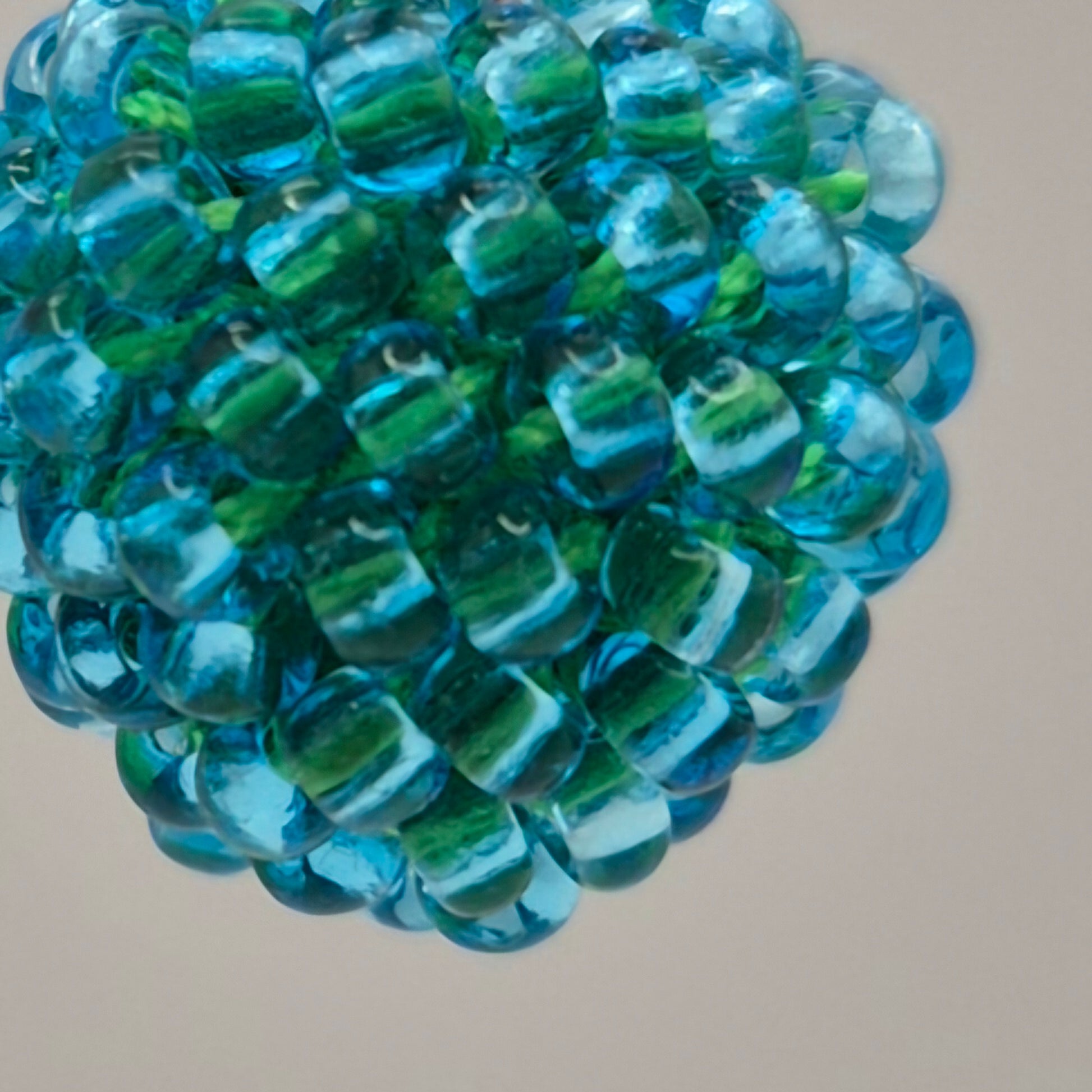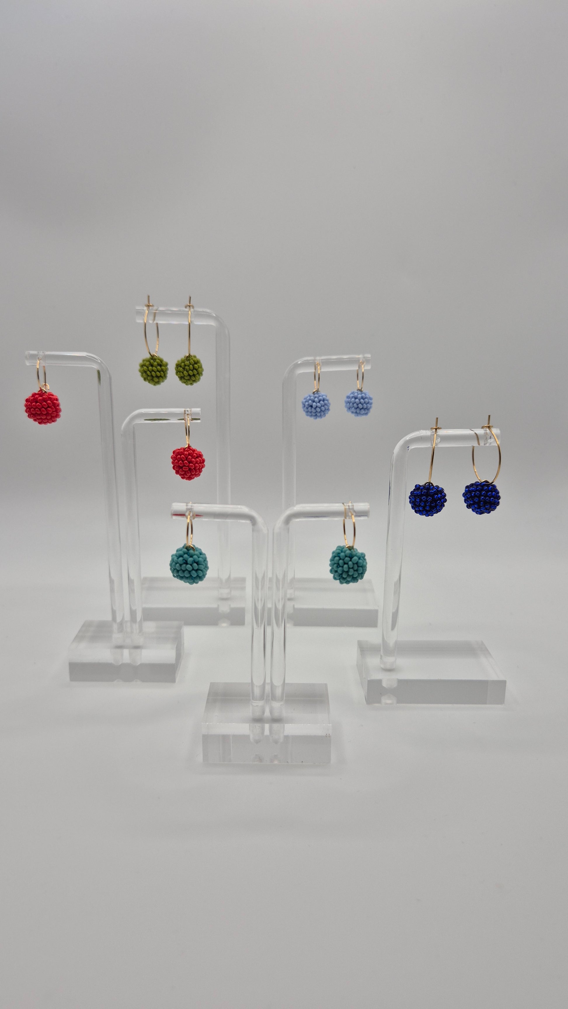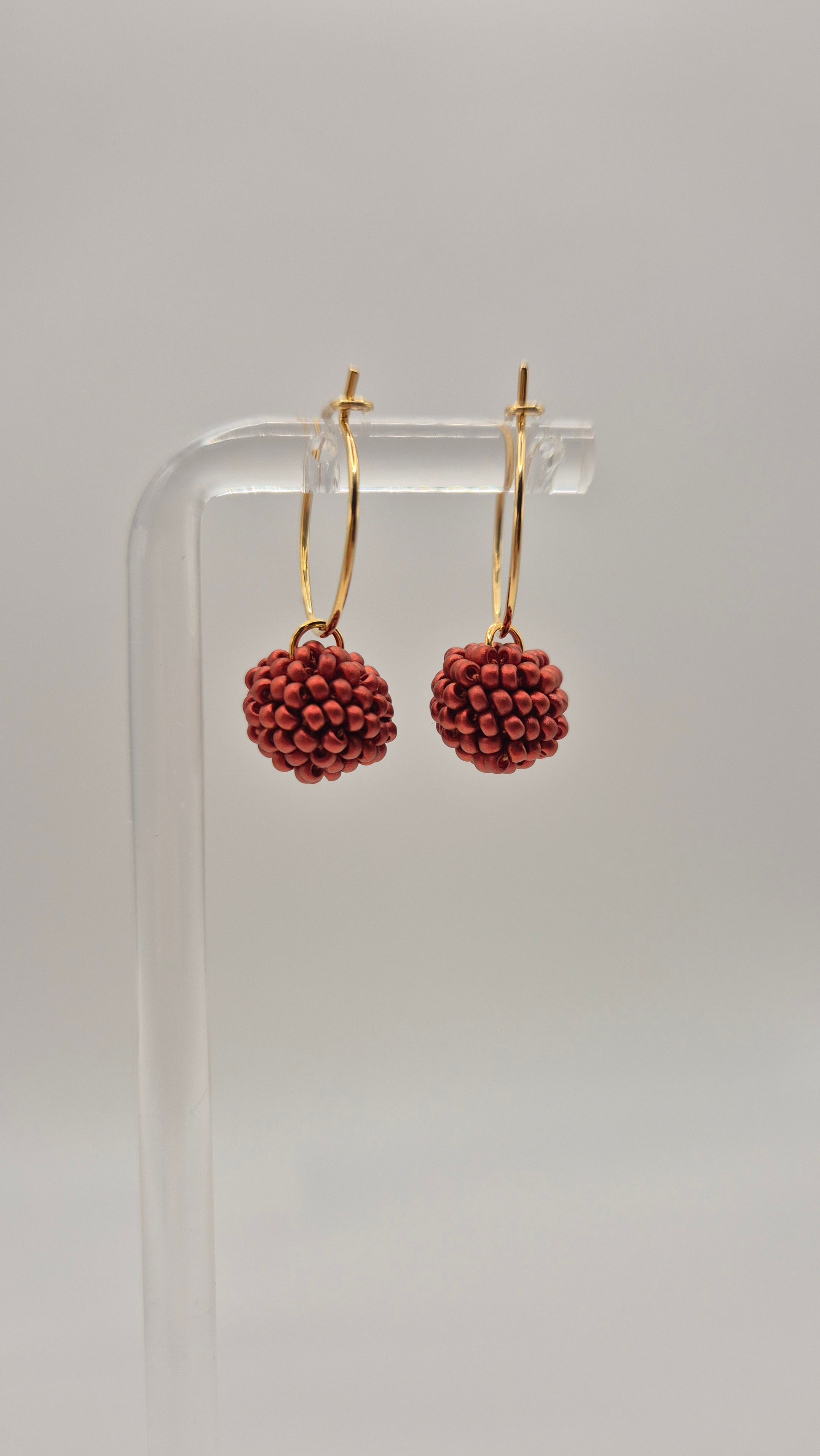 Einzigartige KUULA midi Creolen. Auf Baumwollgarn aufgezogene 2mm große Rocailles Glasperlen, in aufwändiger Häkeltechnik von Hand hergestellt. Die Ohrringe haben jeweils einen Anhänger in Form einer Kugel gehäkelt und vernäht. Die Öse ist eingehäkelt und vernäht. Der Schmuck kommt komplett ohne Kleber aus.