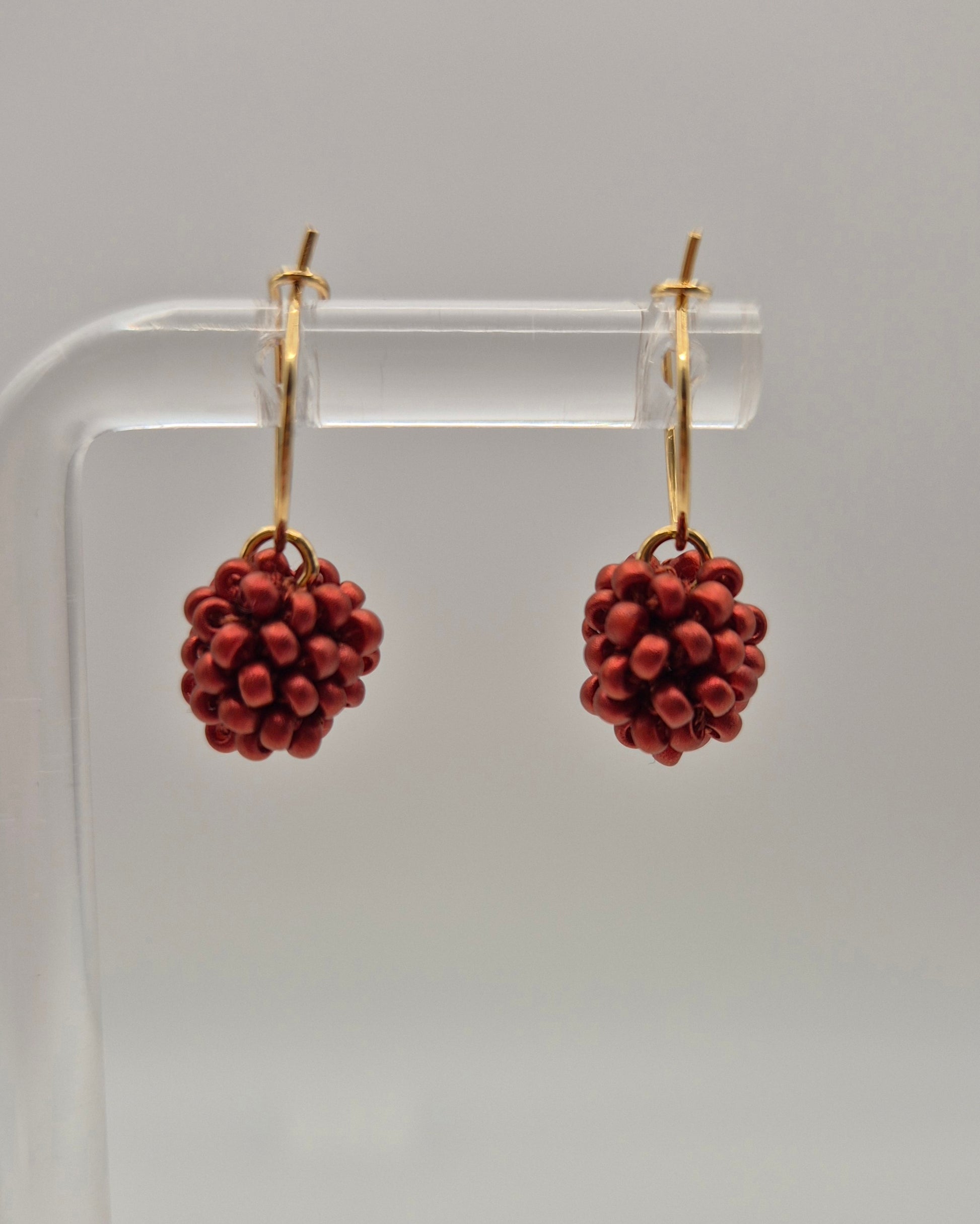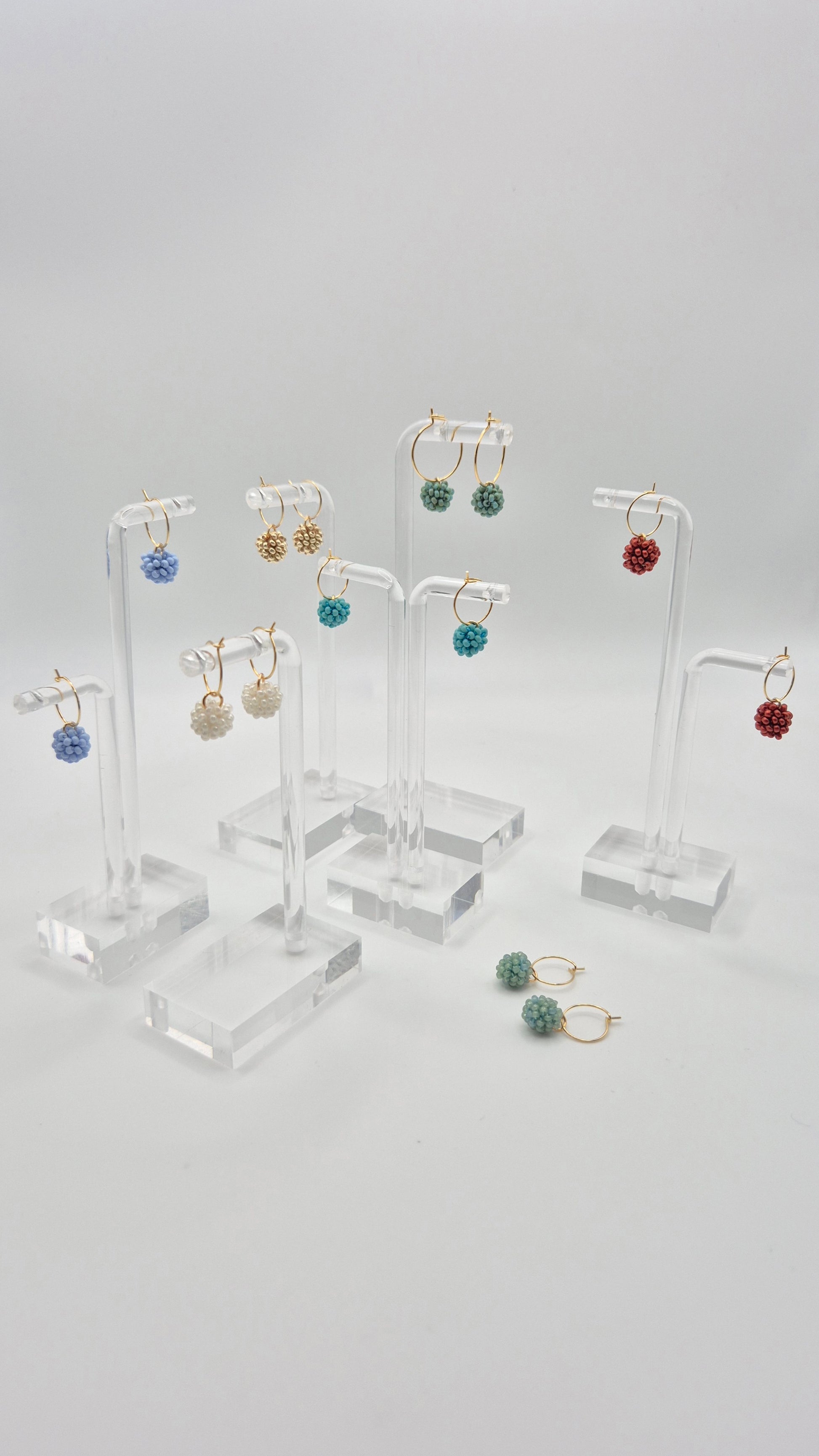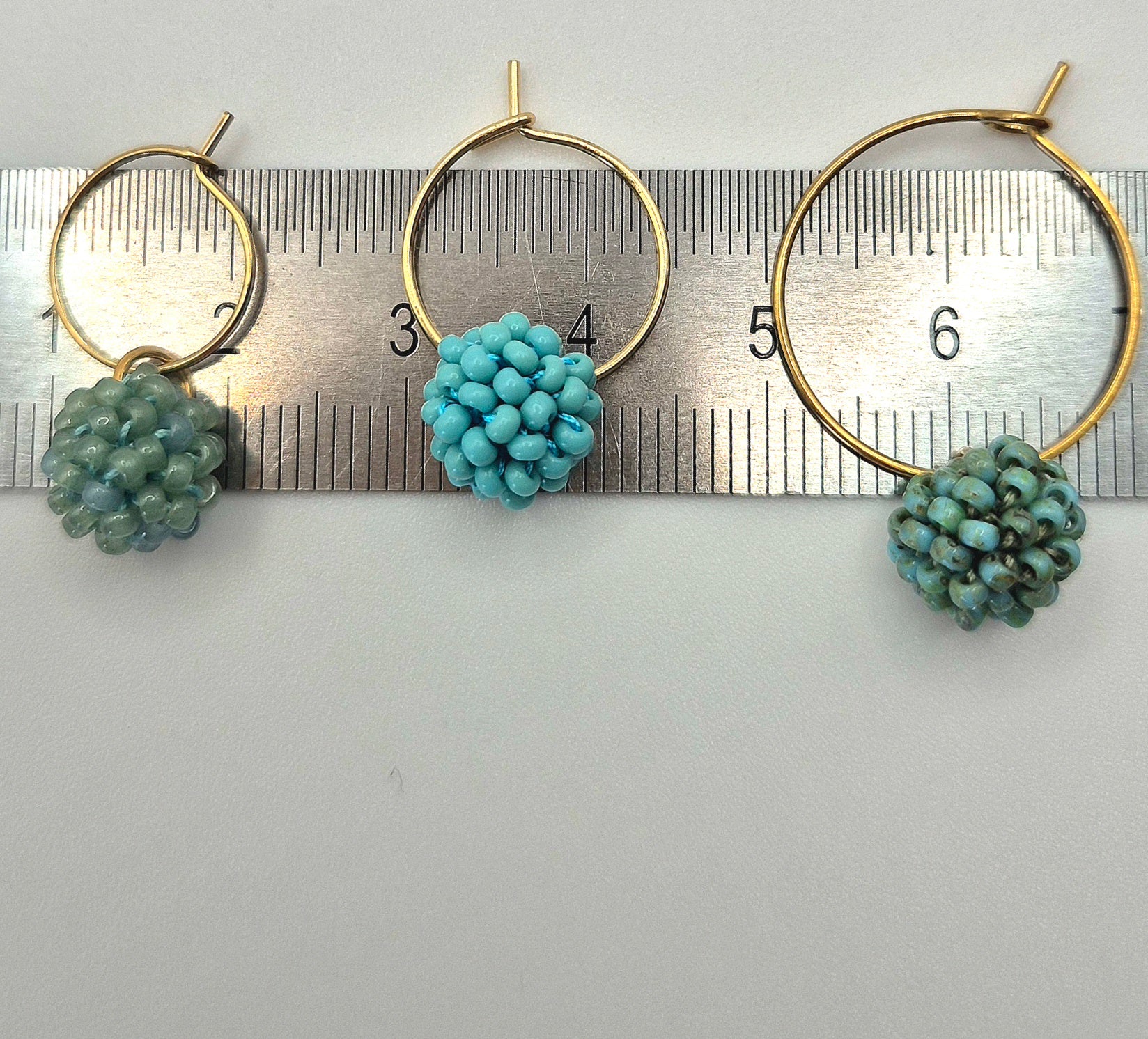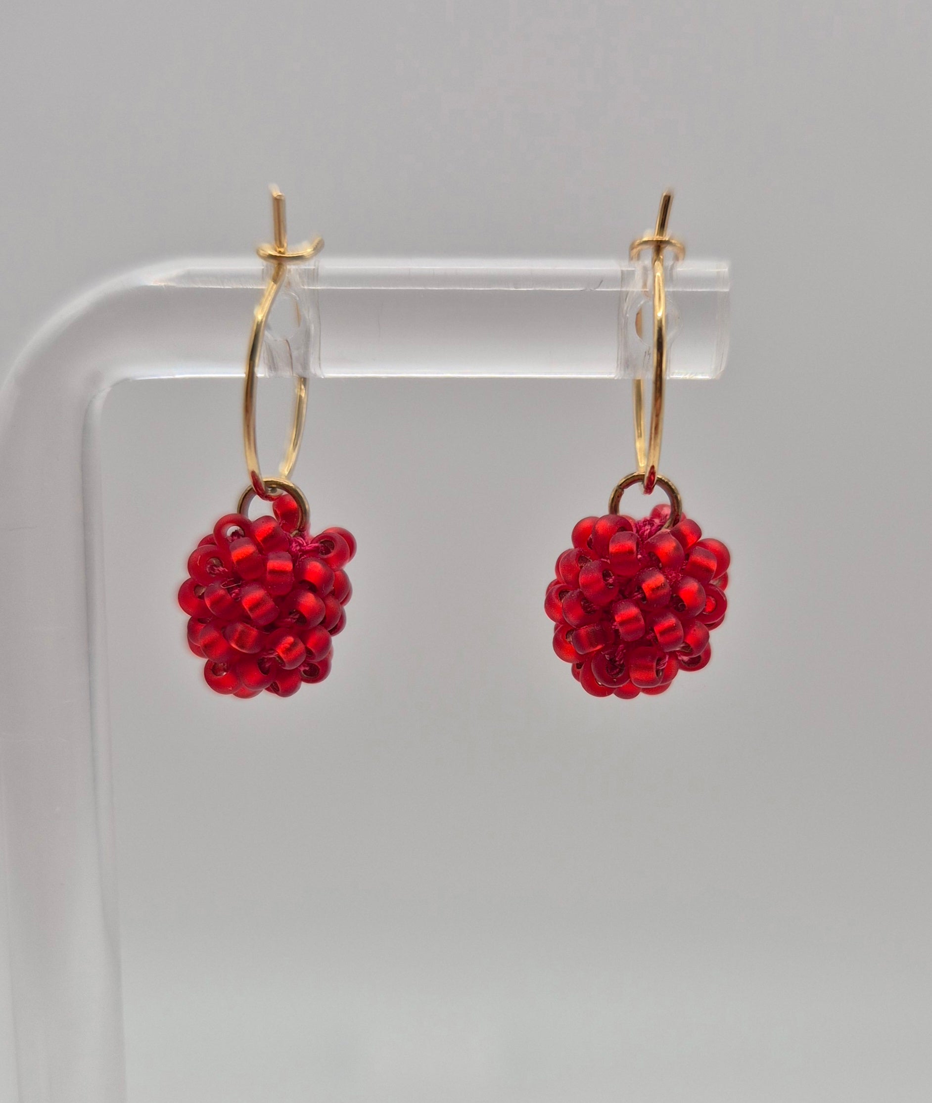 Einzigartige KUULA mini Creolen. Auf Baumwollgarn aufgezogene 2mm große Rocailles Glasperlen, in aufwändiger Häkeltechnik von Hand hergestellt. Die Ohrringe haben jeweils einen Anhänger in Form einer Kugel gehäkelt und vernäht. Die Öse ist eingehäkelt und vernäht. Der Schmuck kommt komplett ohne Kleber aus.