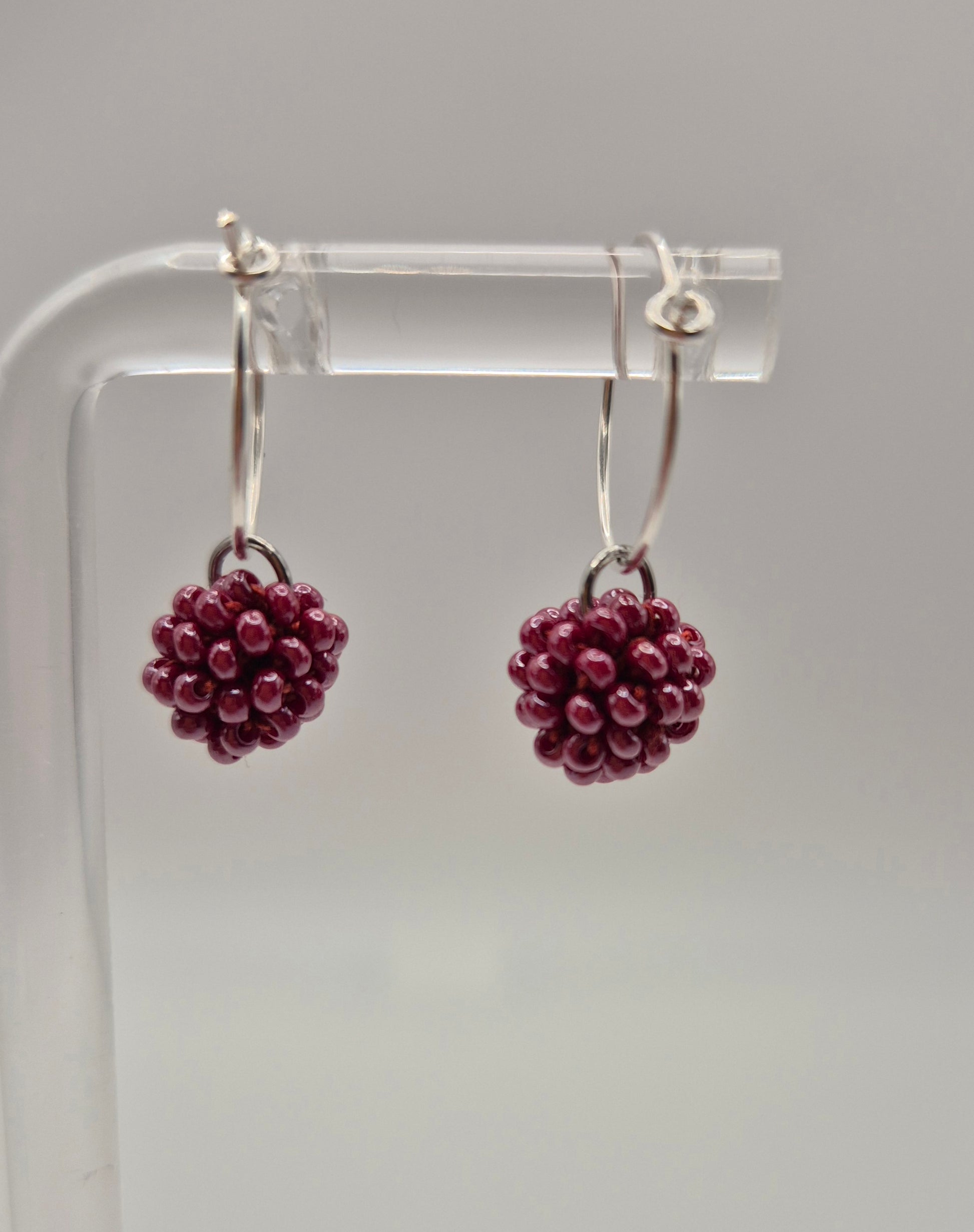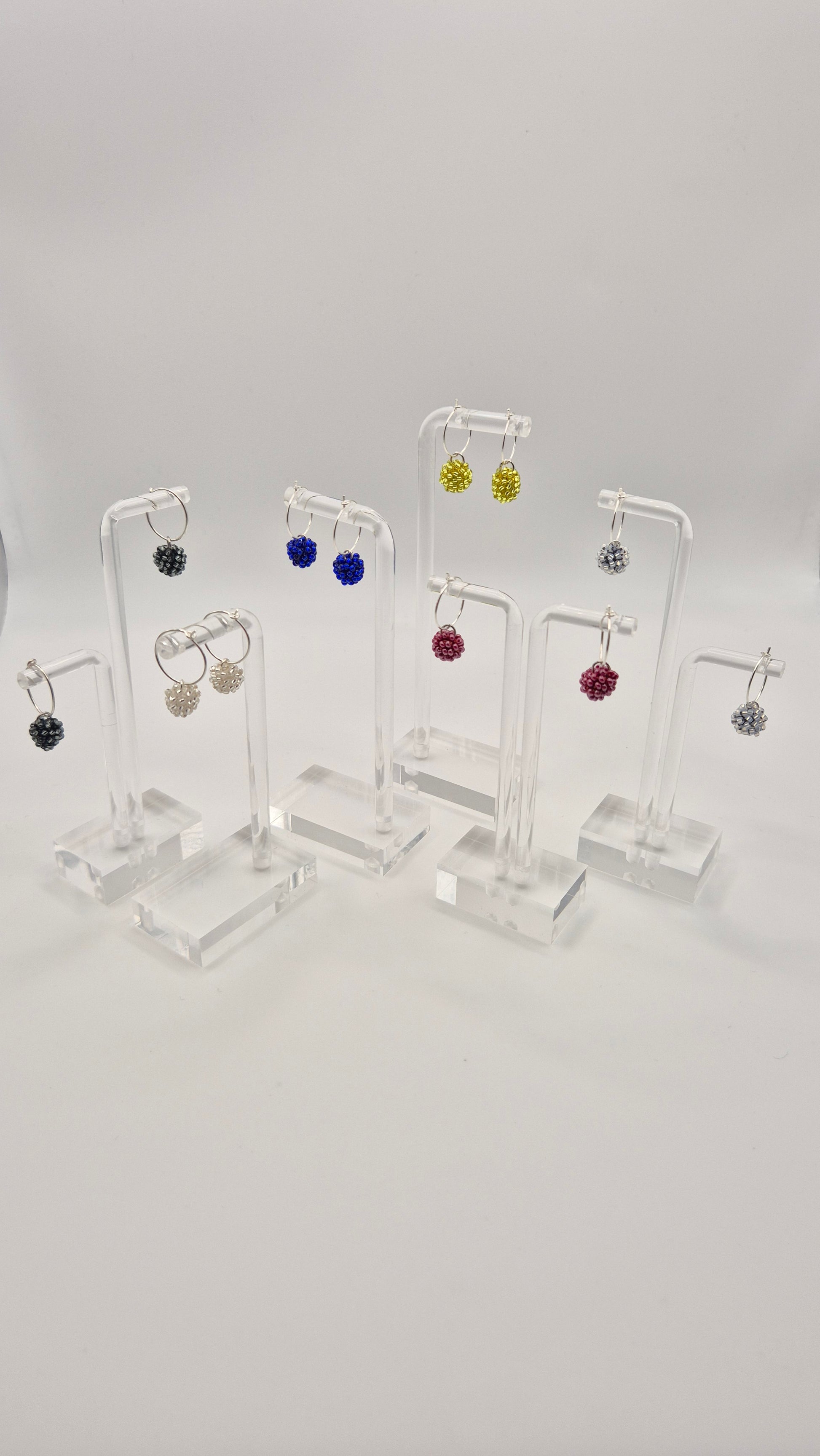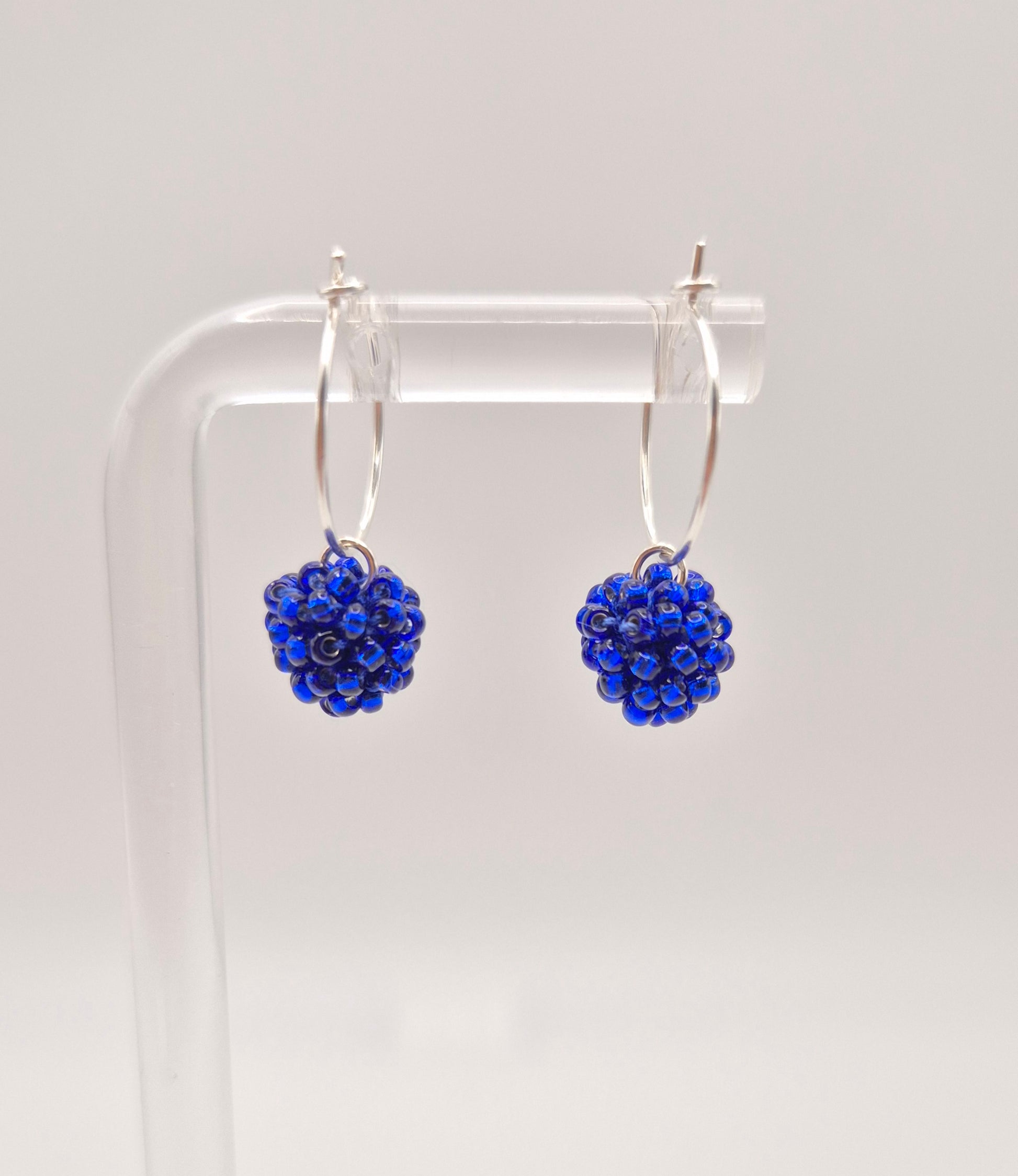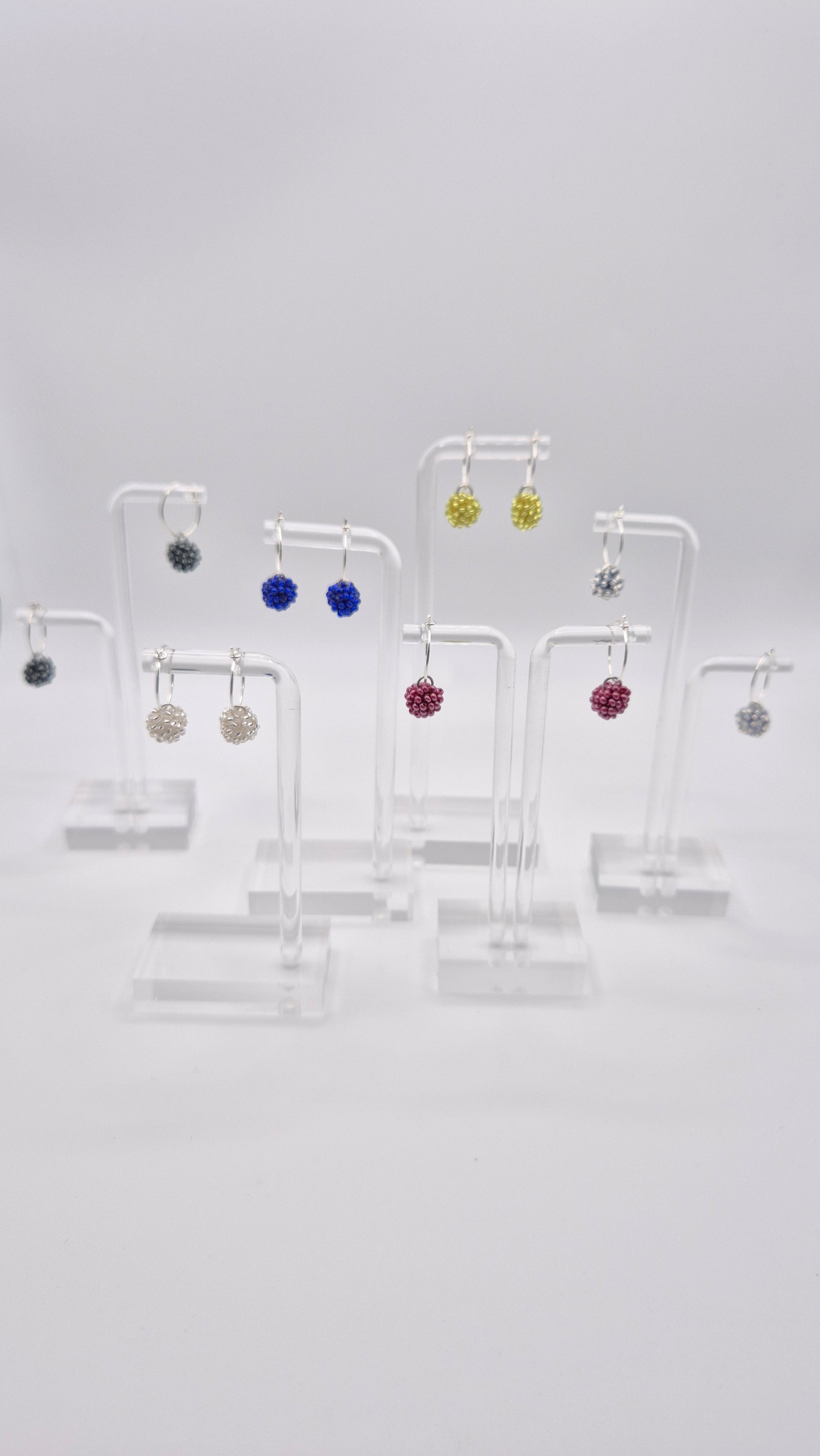 Einzigartige KUULA mini Creolen. Auf Baumwollgarn aufgezogene 2mm große Rocailles Glasperlen, in aufwändiger Häkeltechnik von Hand hergestellt. Die Ohrringe haben jeweils einen Anhänger in Form einer Kugel gehäkelt und vernäht. Die Öse ist eingehäkelt und vernäht. Der Schmuck kommt komplett ohne Kleber aus.