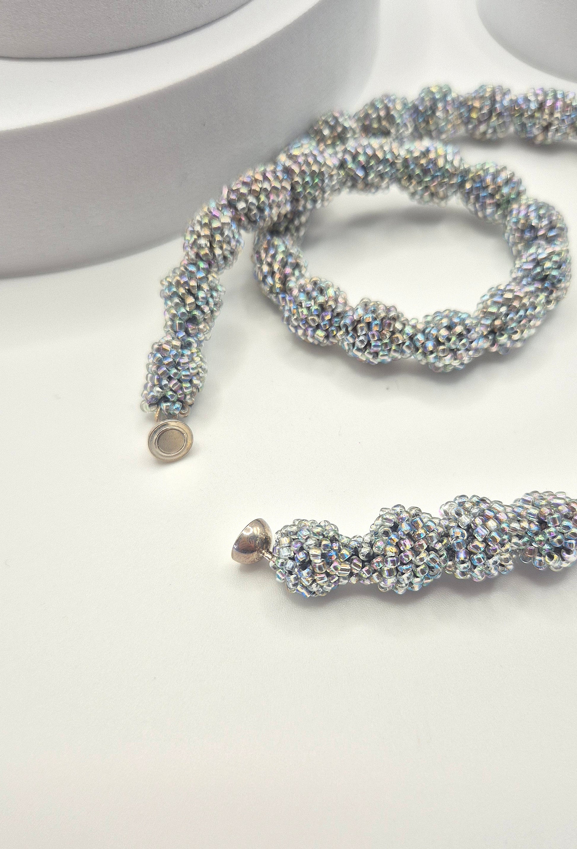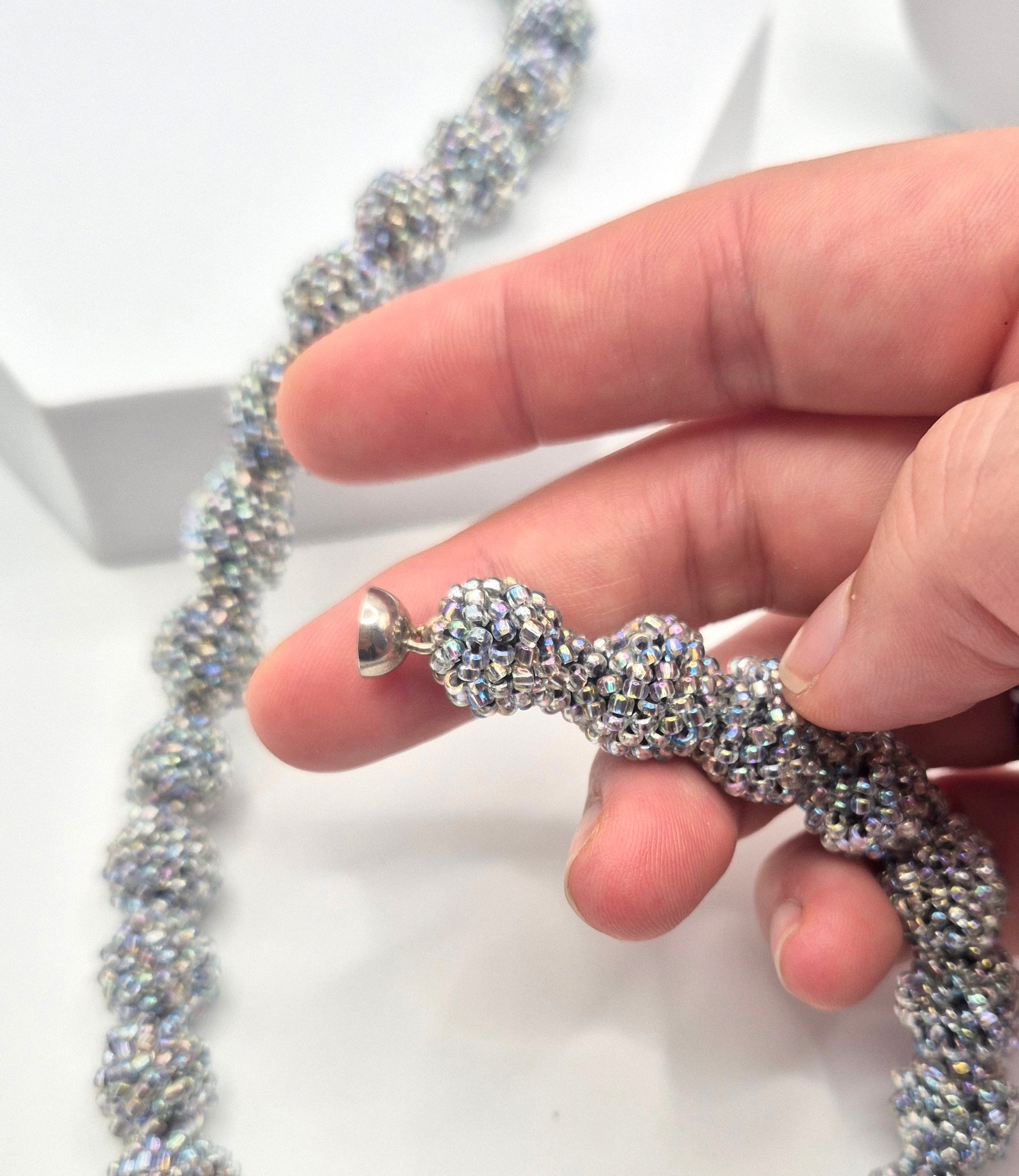 (merzerisierte Baumwolle aus Altbestand, VEB Glauchau), 7-strängige Edelstahlseide, 925er Silber - Magnetverschluss