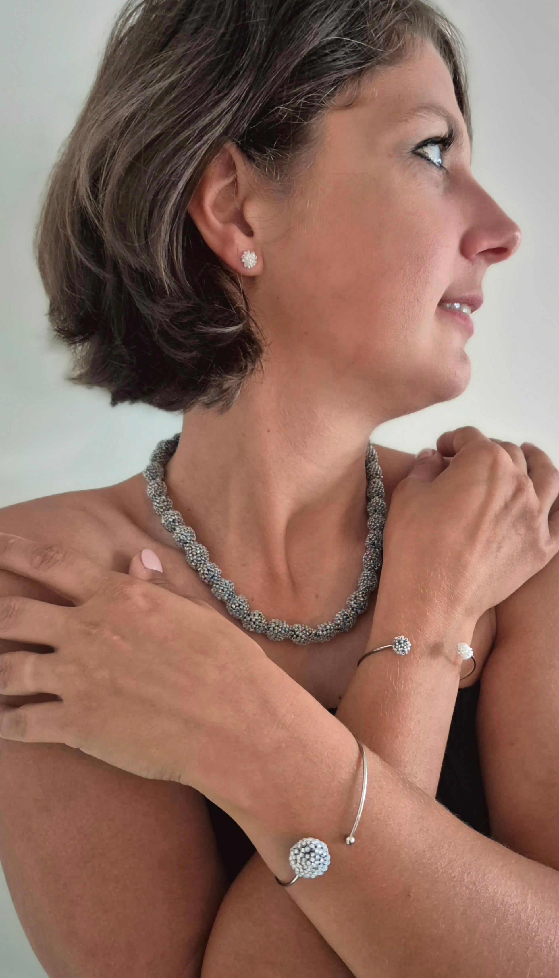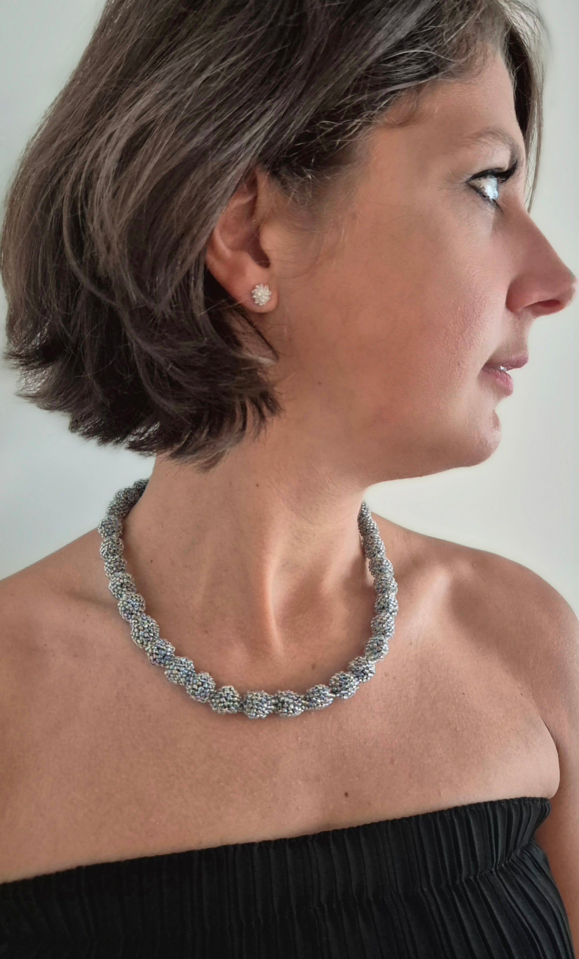 Seit etwa 4000 Jahren vor Chr. gibt es nachweislich Glasperlen. Glas ist ein faszinierender Rohstoff, der sowohl das Feuer als auch die Kälte in sich trägt. Glasperlen gehören zu den ältesten Schmuckstücken der Menschheit. Sie stellen die wichtigsten künstlichen Perlen dar. Häkeln ist eine bereits seit dem 18. Jahrhundert bekannte Technologie, eine Fläche aus Garn zu erstellen. Im Gegensatz zum Stricken und Weben gibt es eigentlich keine maschinelle Häkeltechnik in der Textilindustrie. Damit steht das Häkeln für altbewerte aufwendige Handarbeit, die viel Zeit und Fingerfertigkeit erfordert.