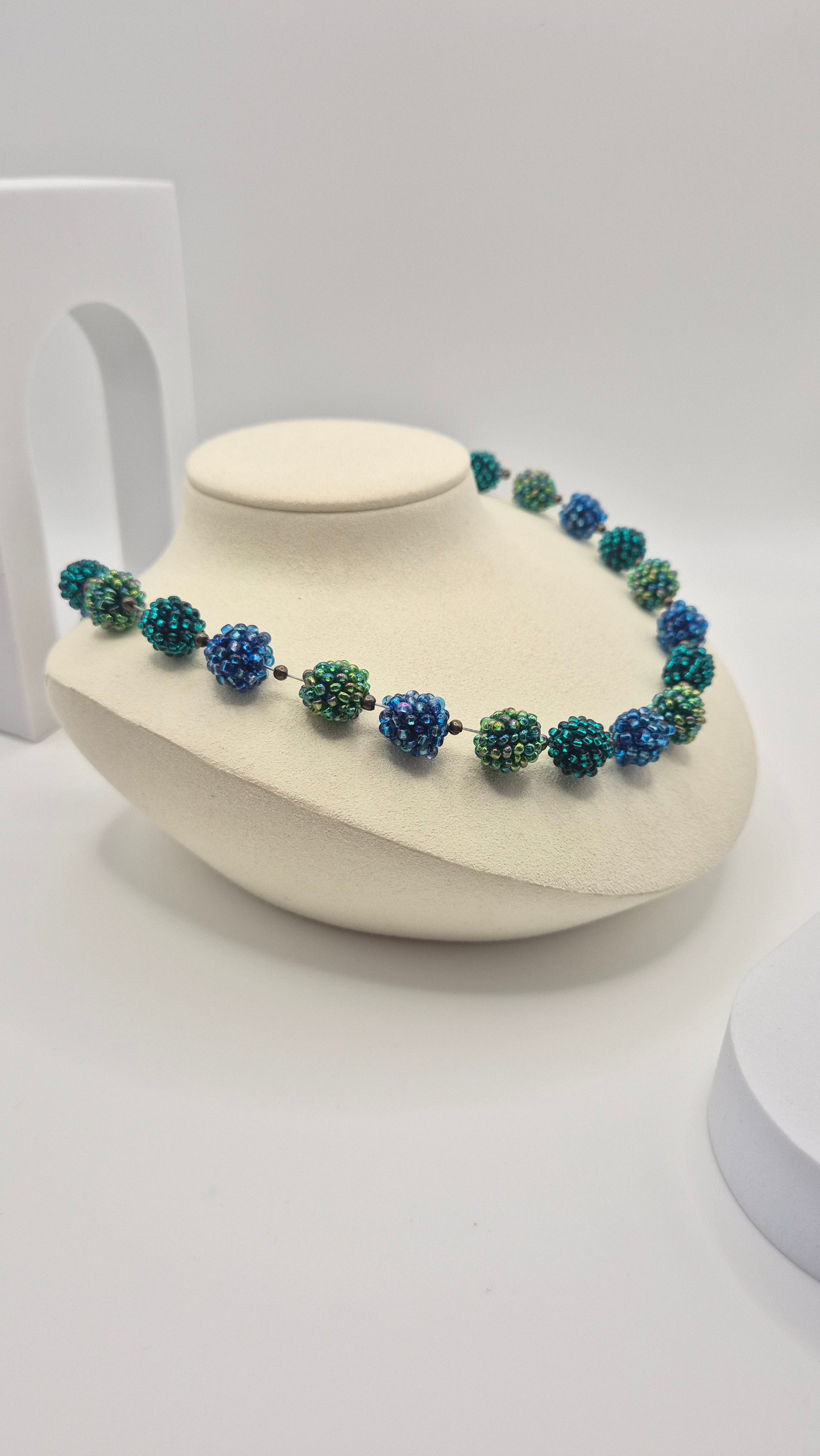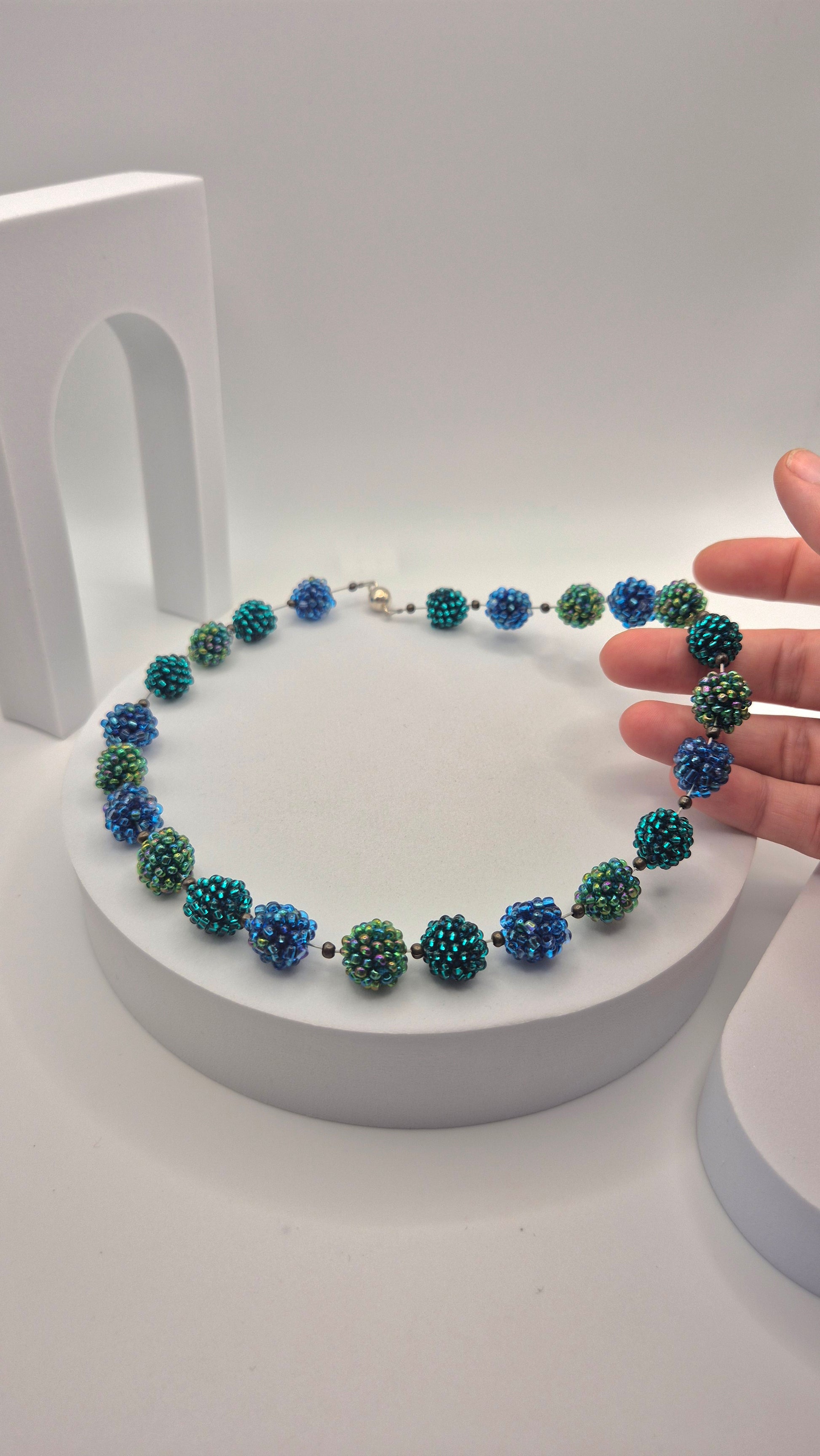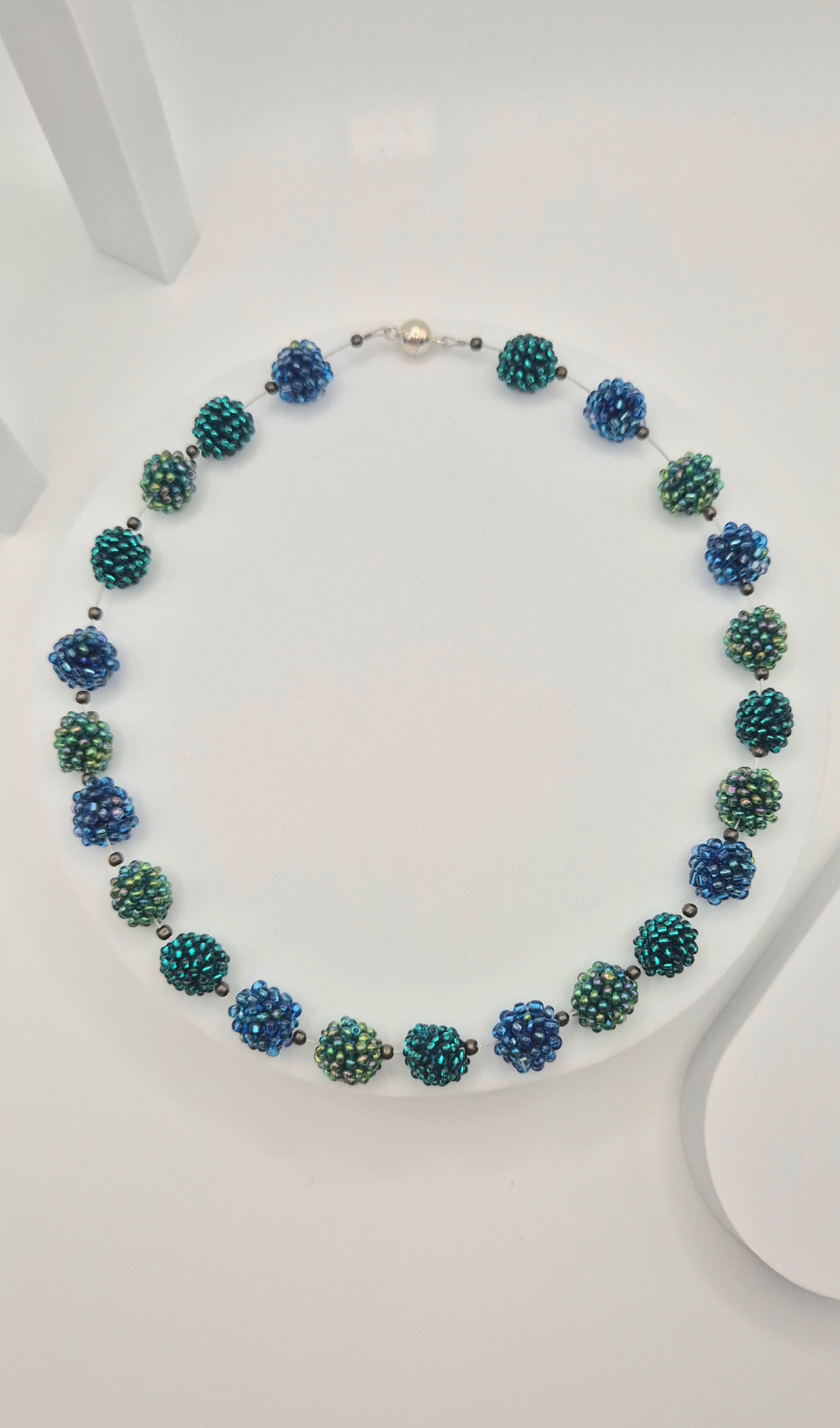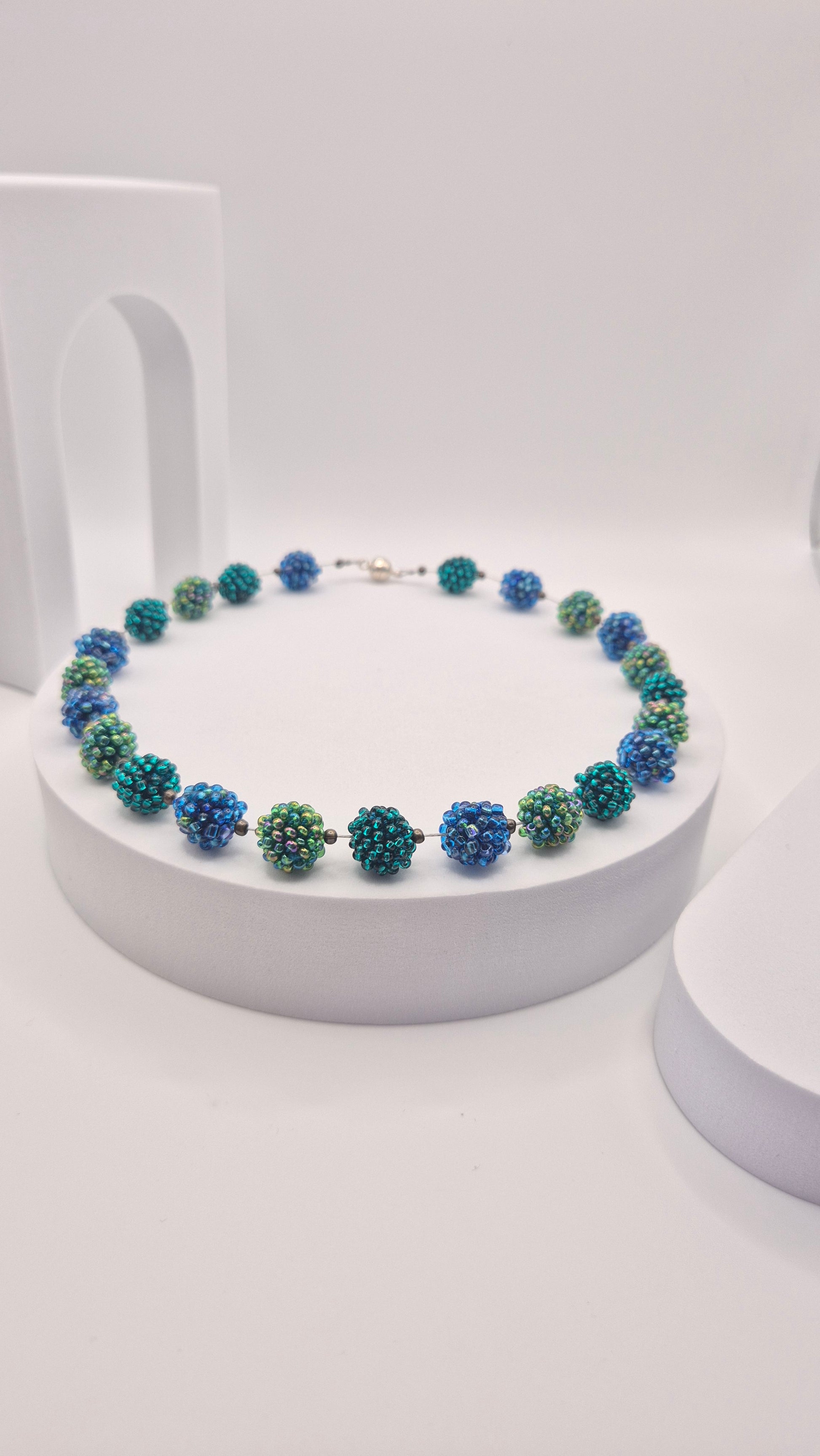 Halskette FLUFFY GREEN OCEAN Unikat - Breite 13 mm | Perlen 3mm