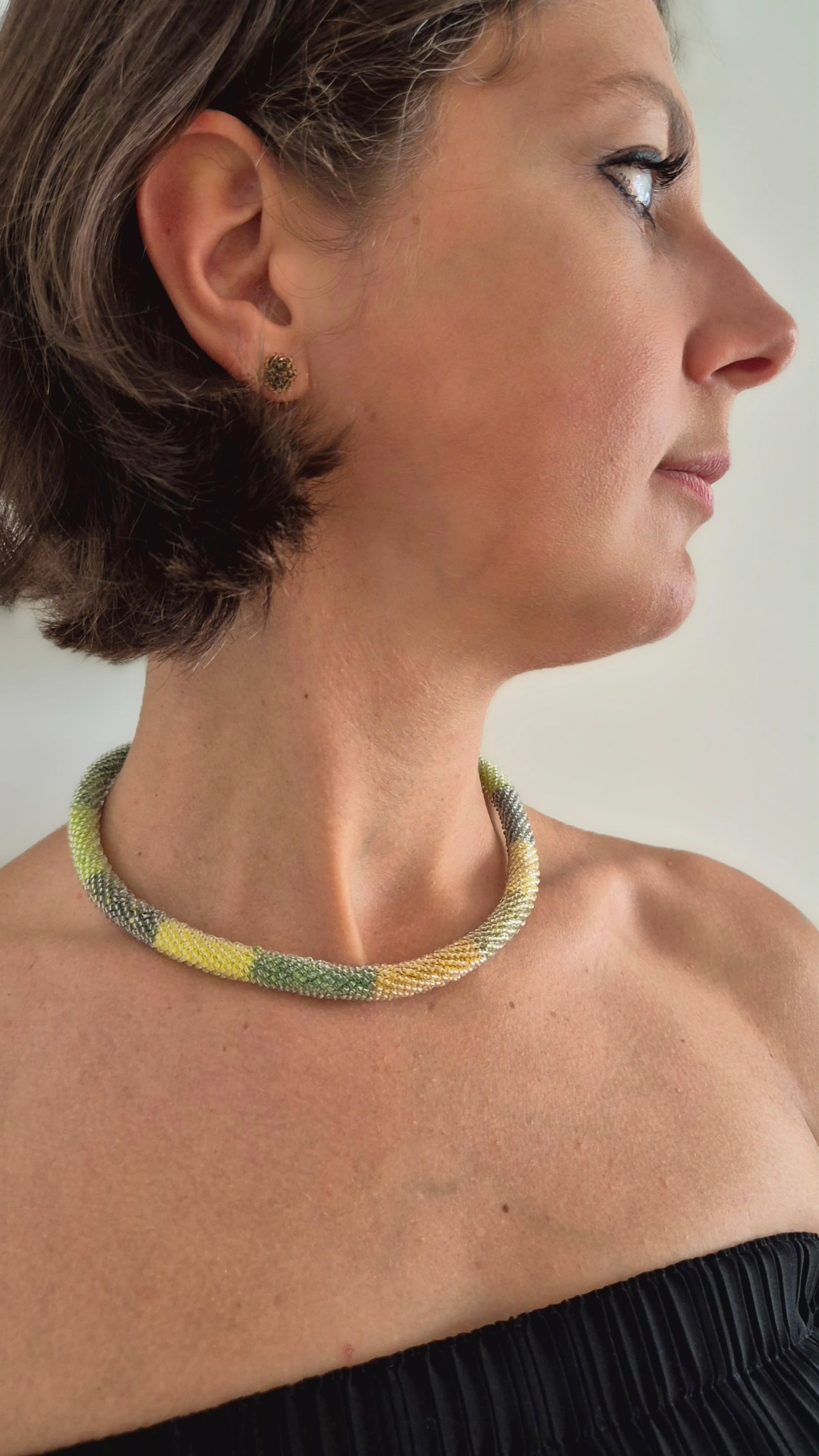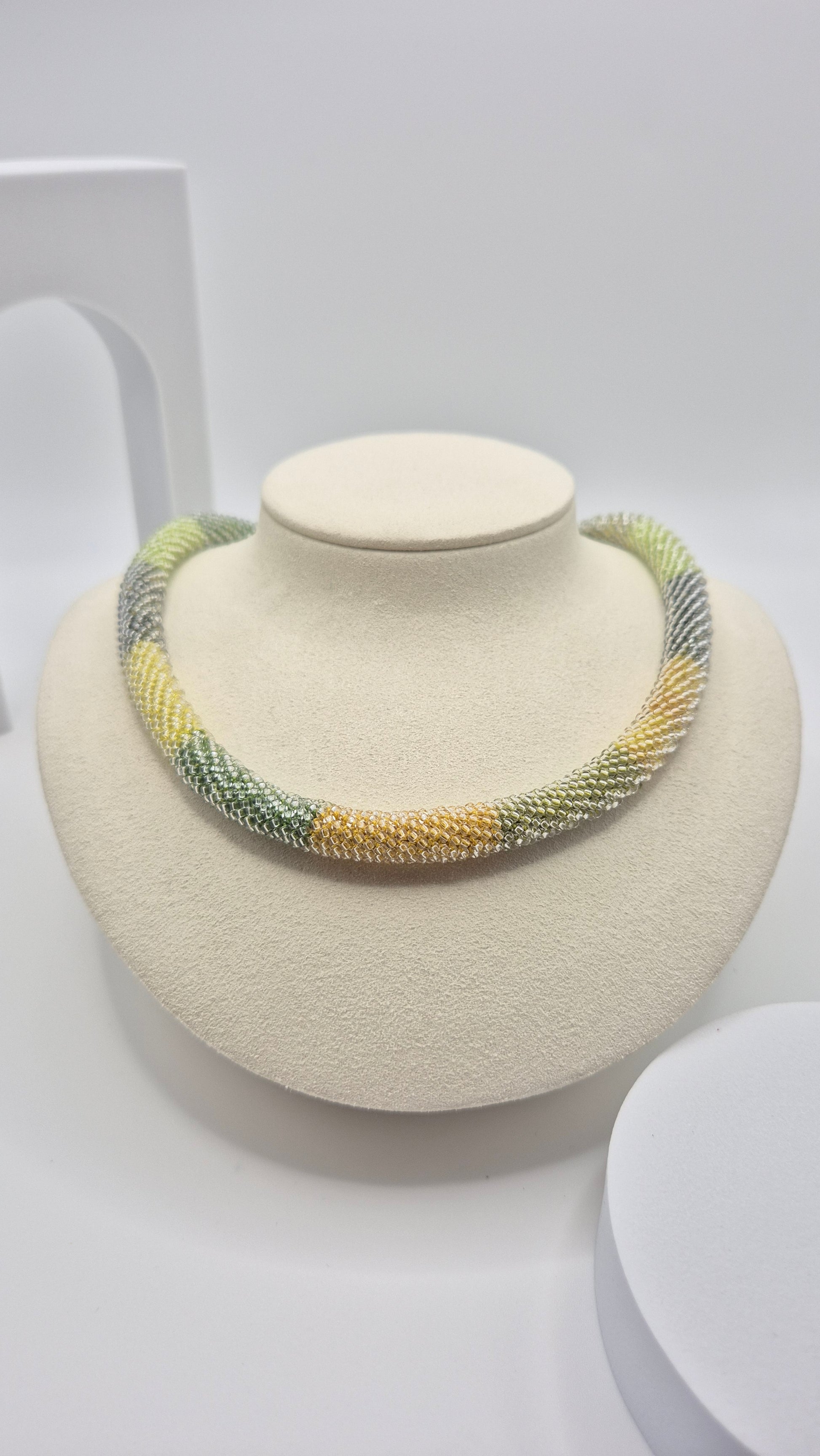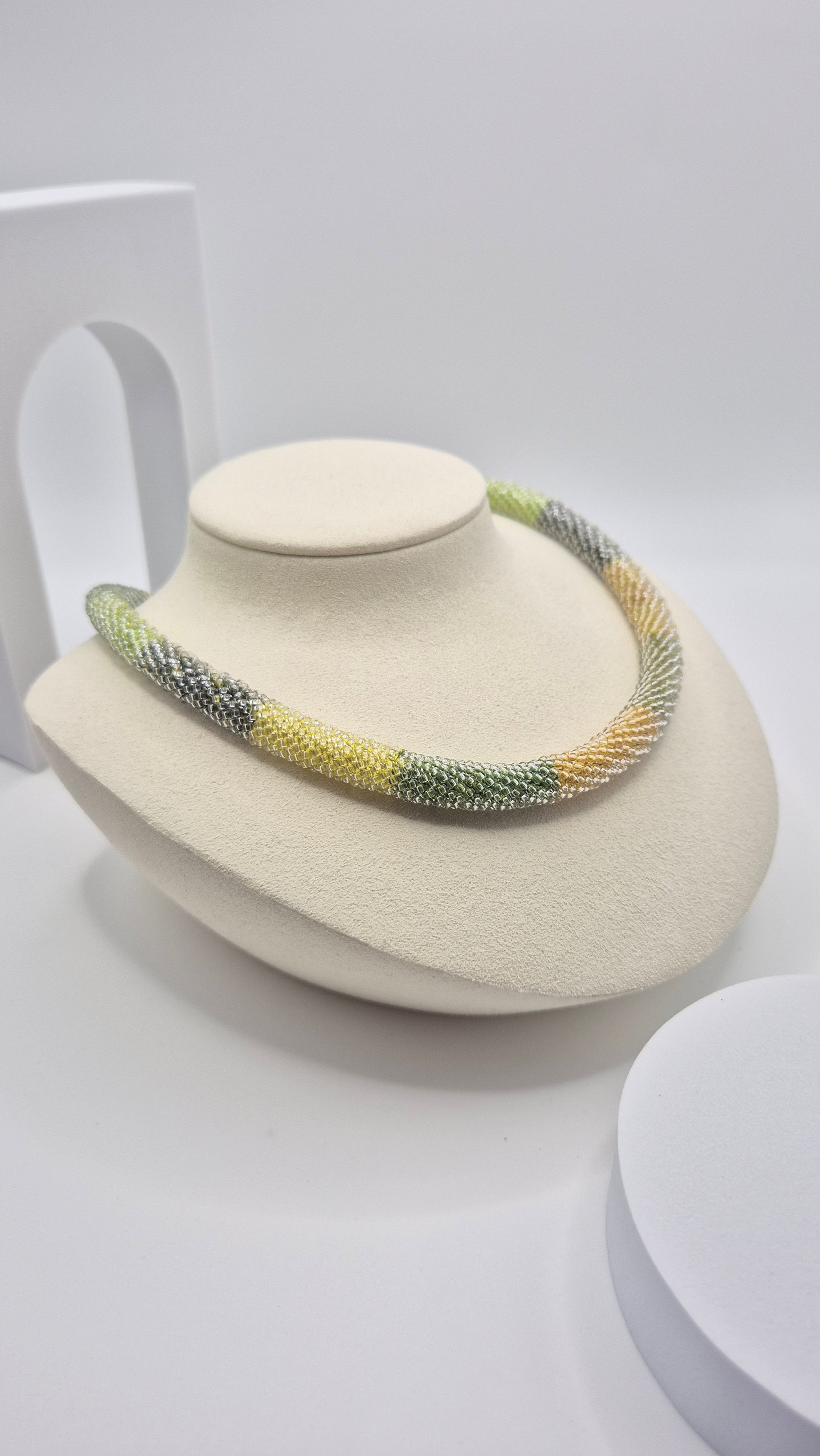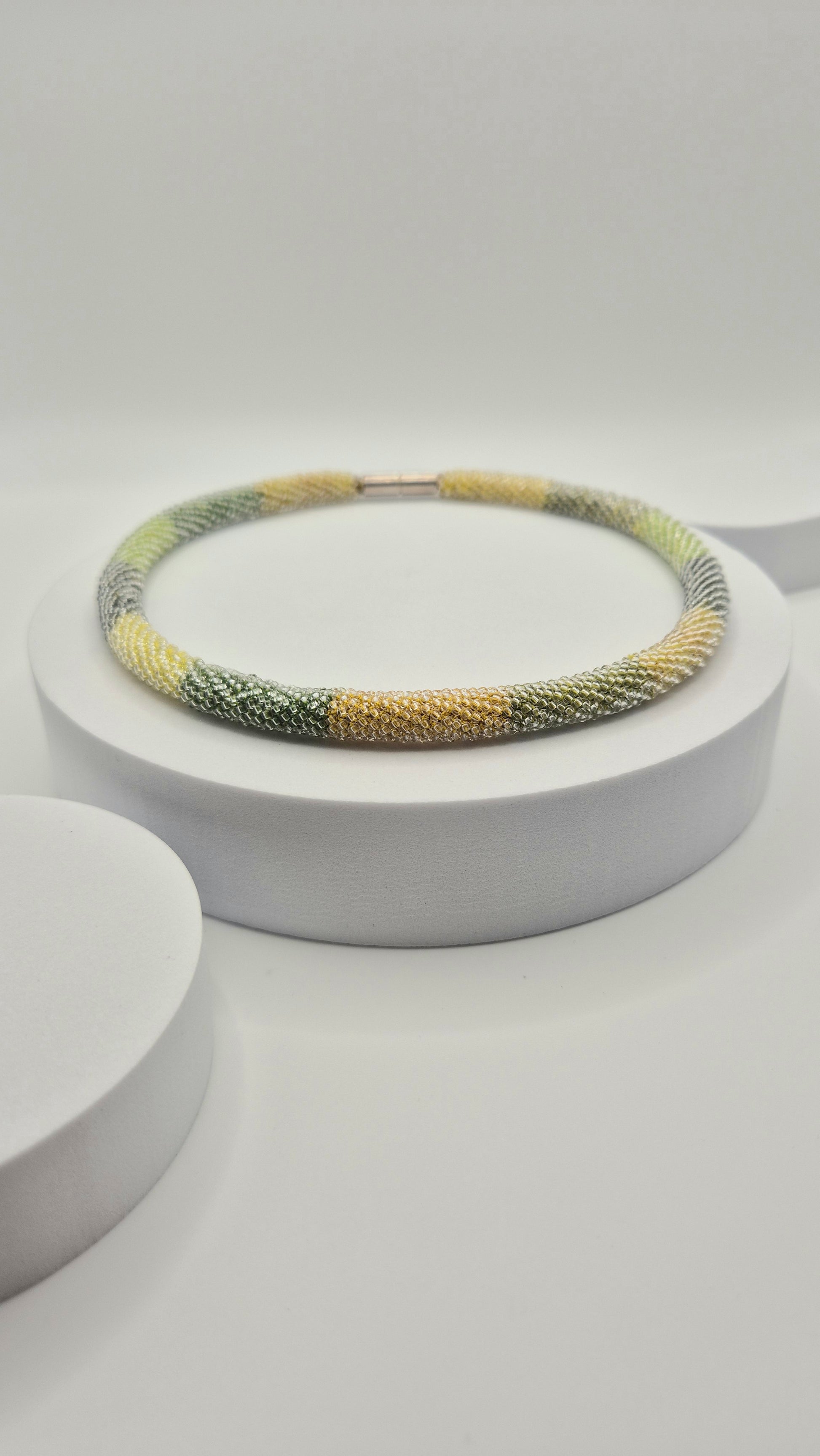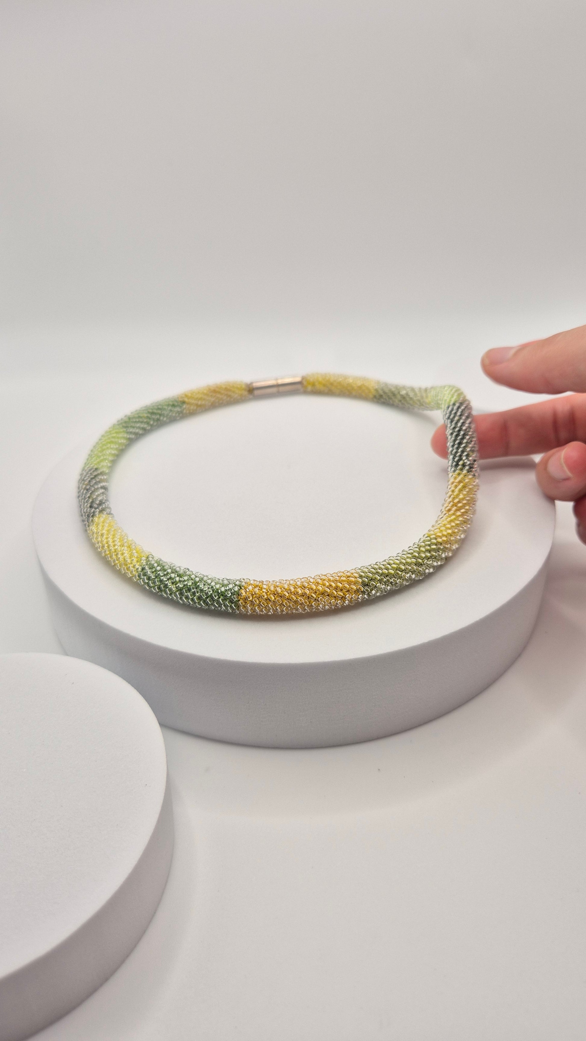 Halskette TUBE KIWI ICED 01 Unikat - Breite 9mm | Perlen 2 mm