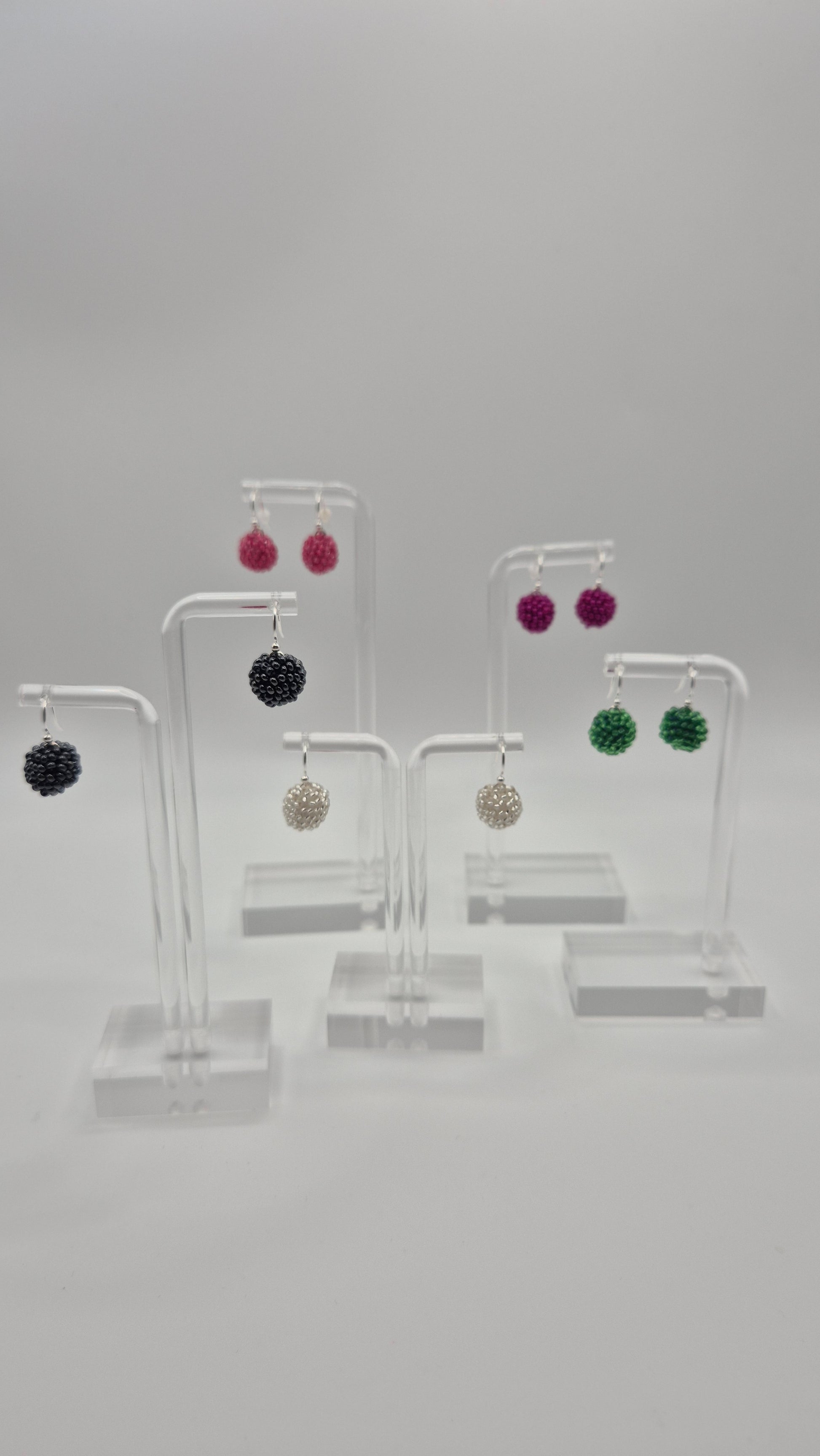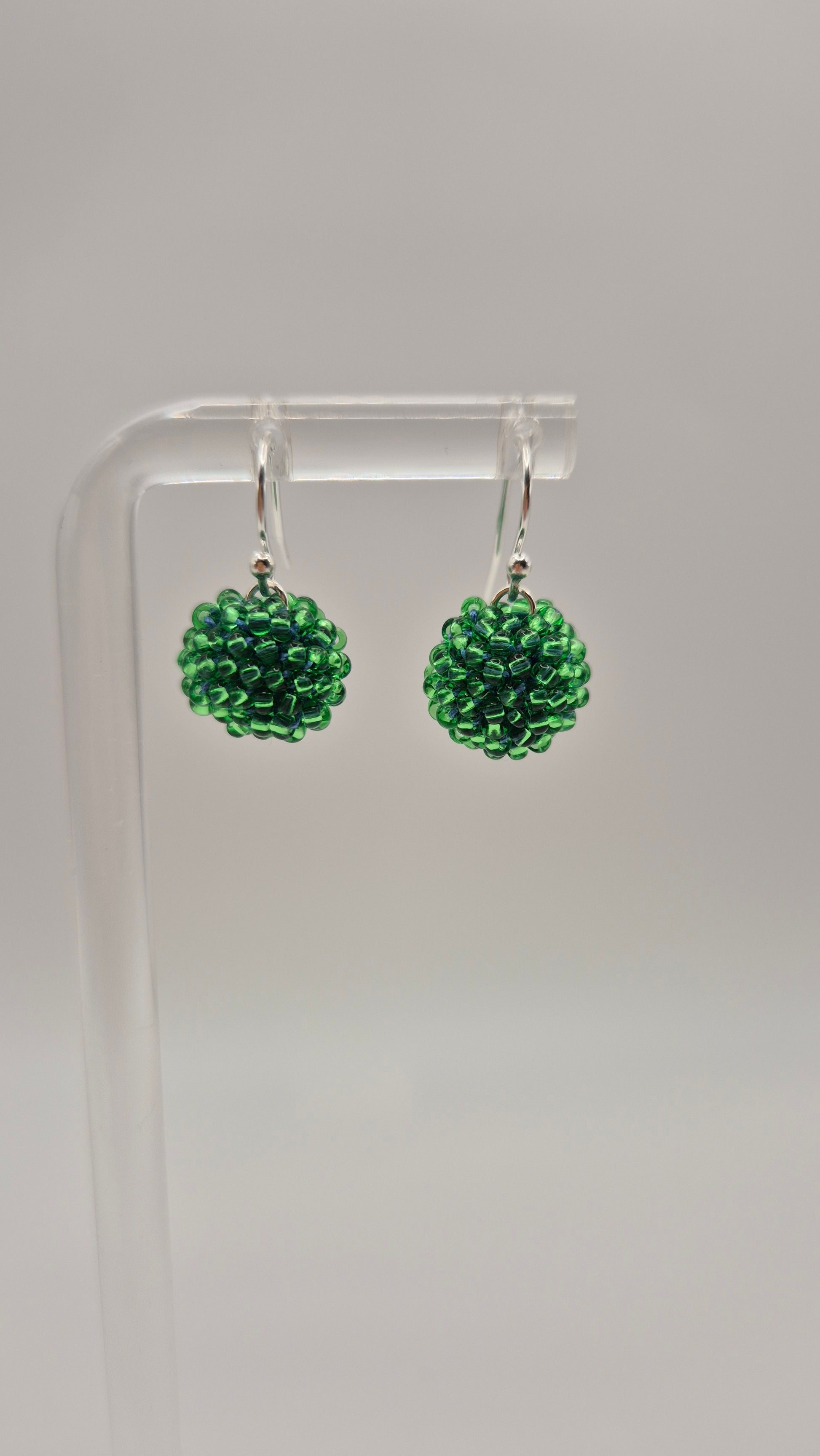 Einzigartige KUULA Hänger. Auf Baumwollgarn aufgezogene 2mm große Rocailles Glasperlen, in aufwändiger Häkeltechnik von Hand hergestellt. Die Ohrringe haben jeweils einen Anhänger in Form einer Kugel gehäkelt und vernäht. Die Öse ist eingehäkelt und vernäht. Der Schmuck kommt komplett ohne Kleber aus.