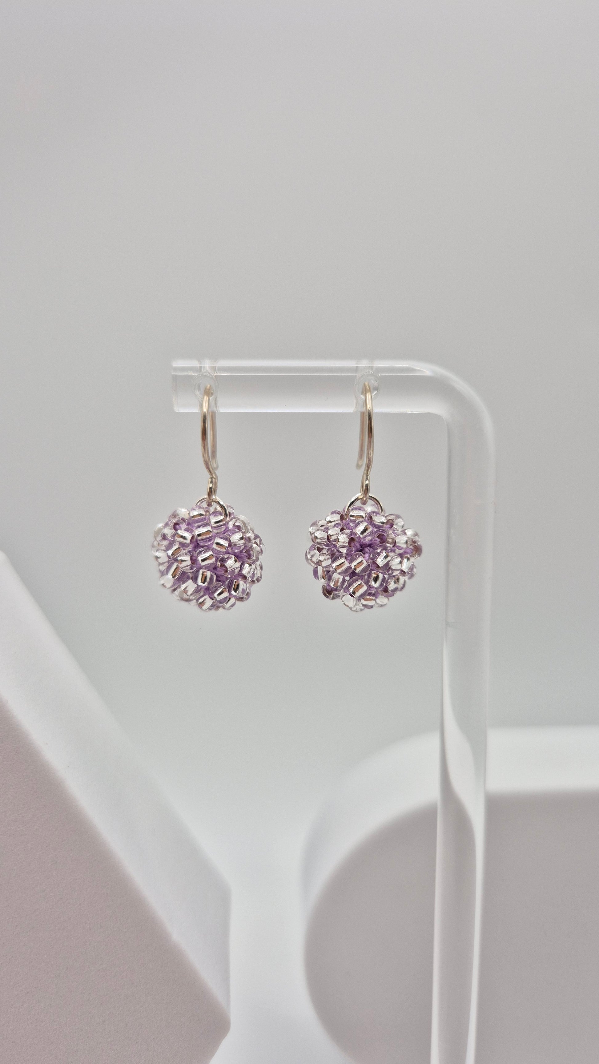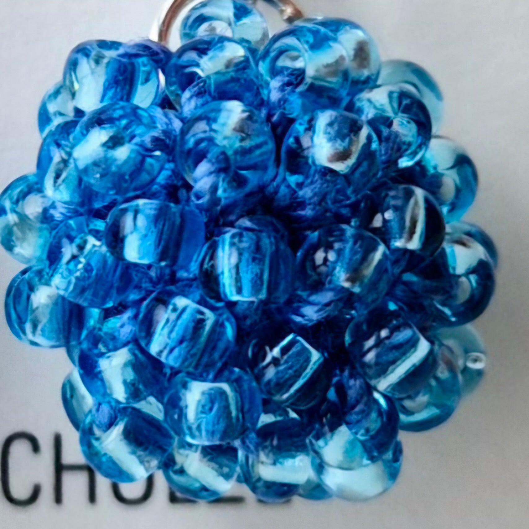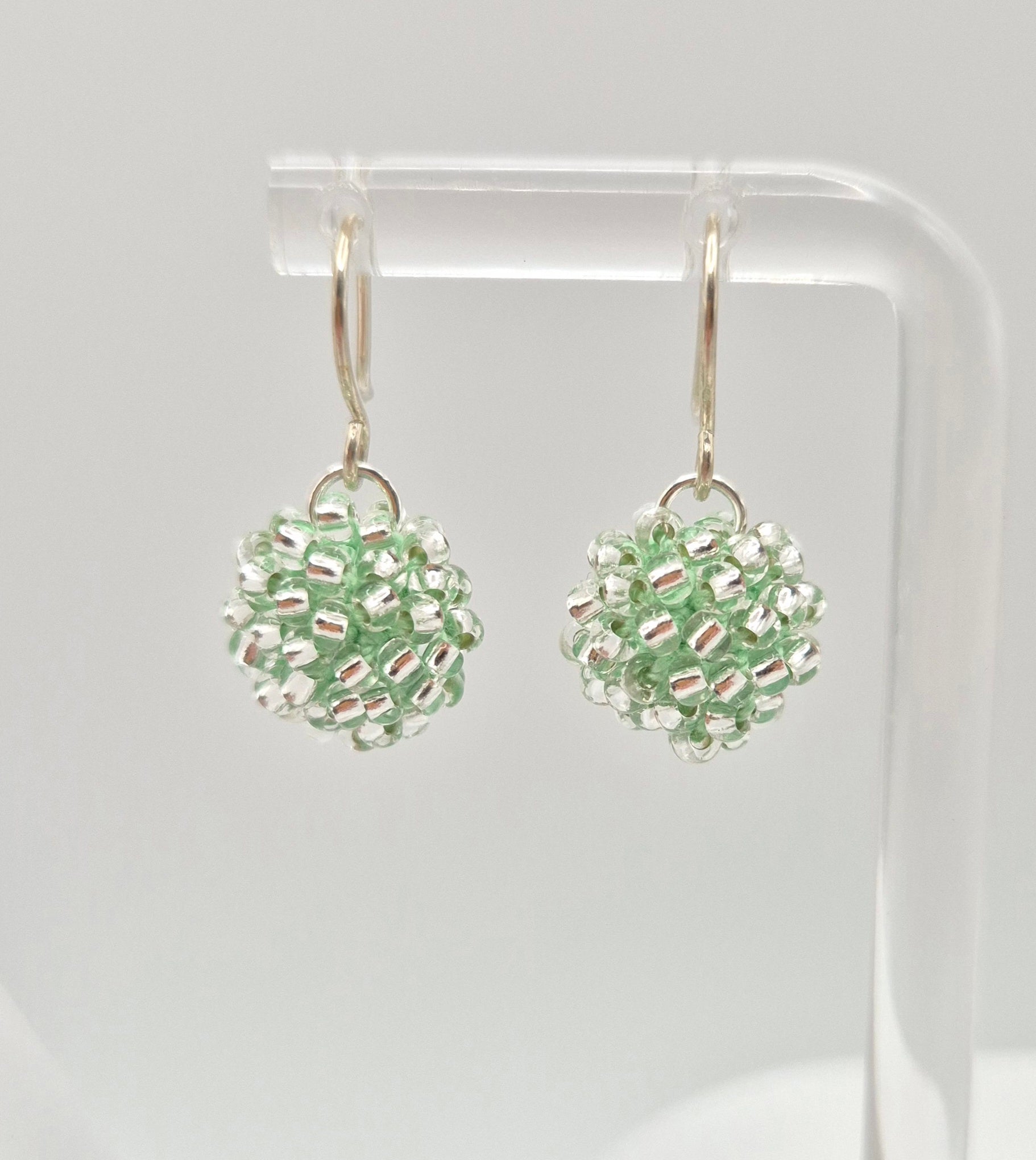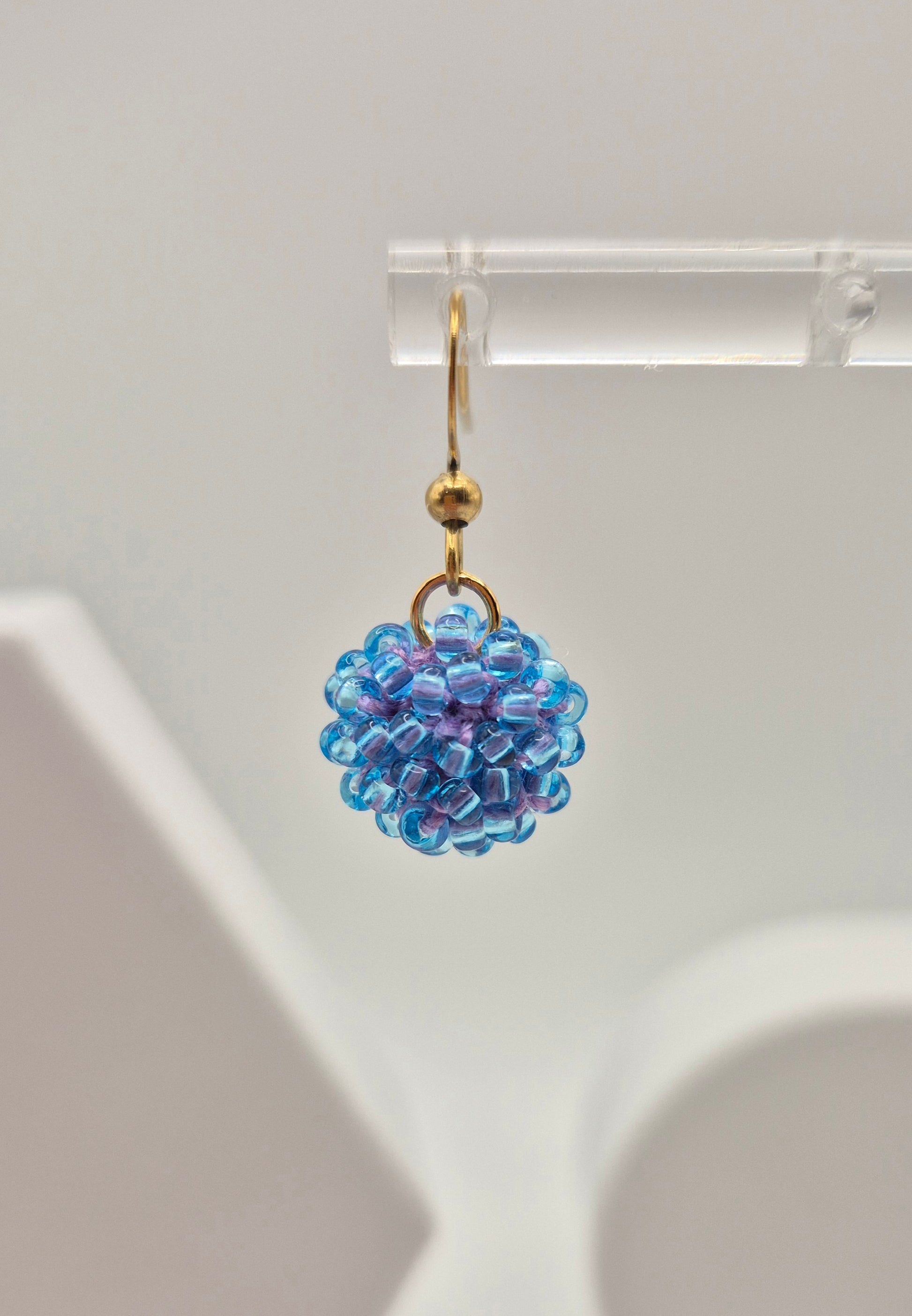 Einzigartige KUULA Hänger . Auf Baumwollgarn aufgezogene 2,5 - 3 mm große Rocailles Glasperlen, in aufwändiger Häkeltechnik von Hand hergestellt. Die Ohrringe haben jeweils einen Anhänger in Form einer Kugel gehäkelt und vernäht. Die Öse ist eingehäkelt und vernäht. Der Schmuck kommt komplett ohne Kleber aus.