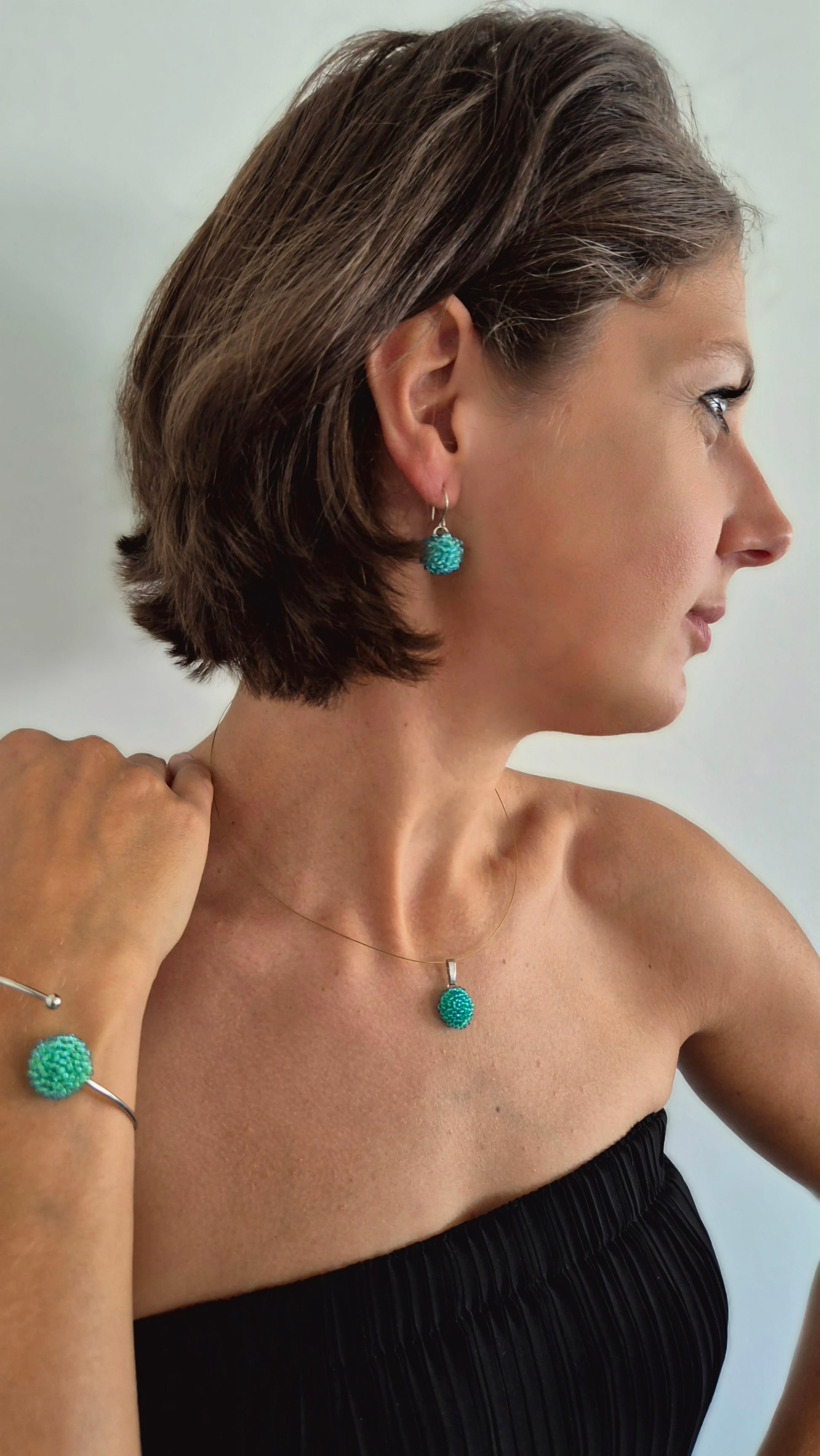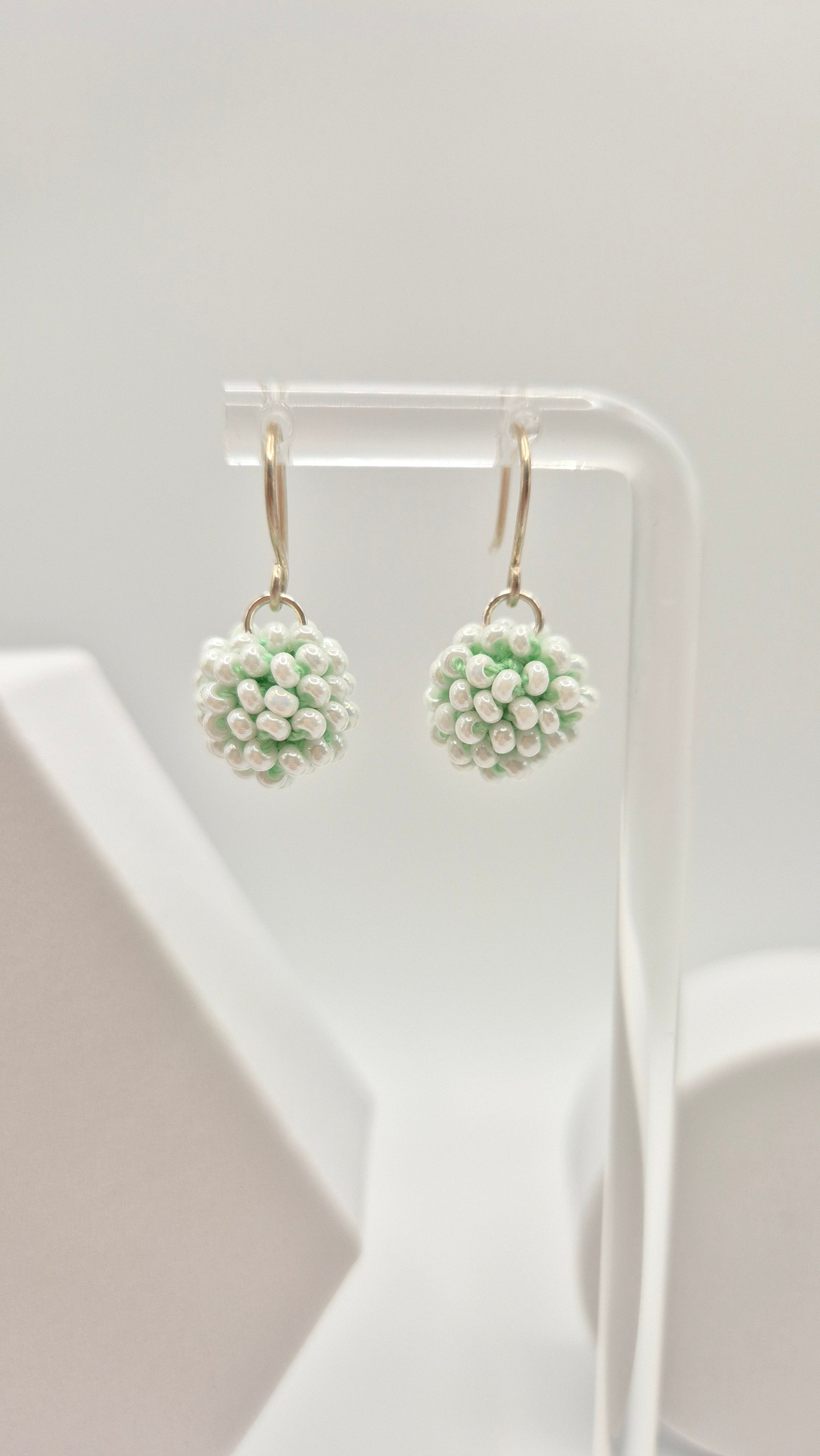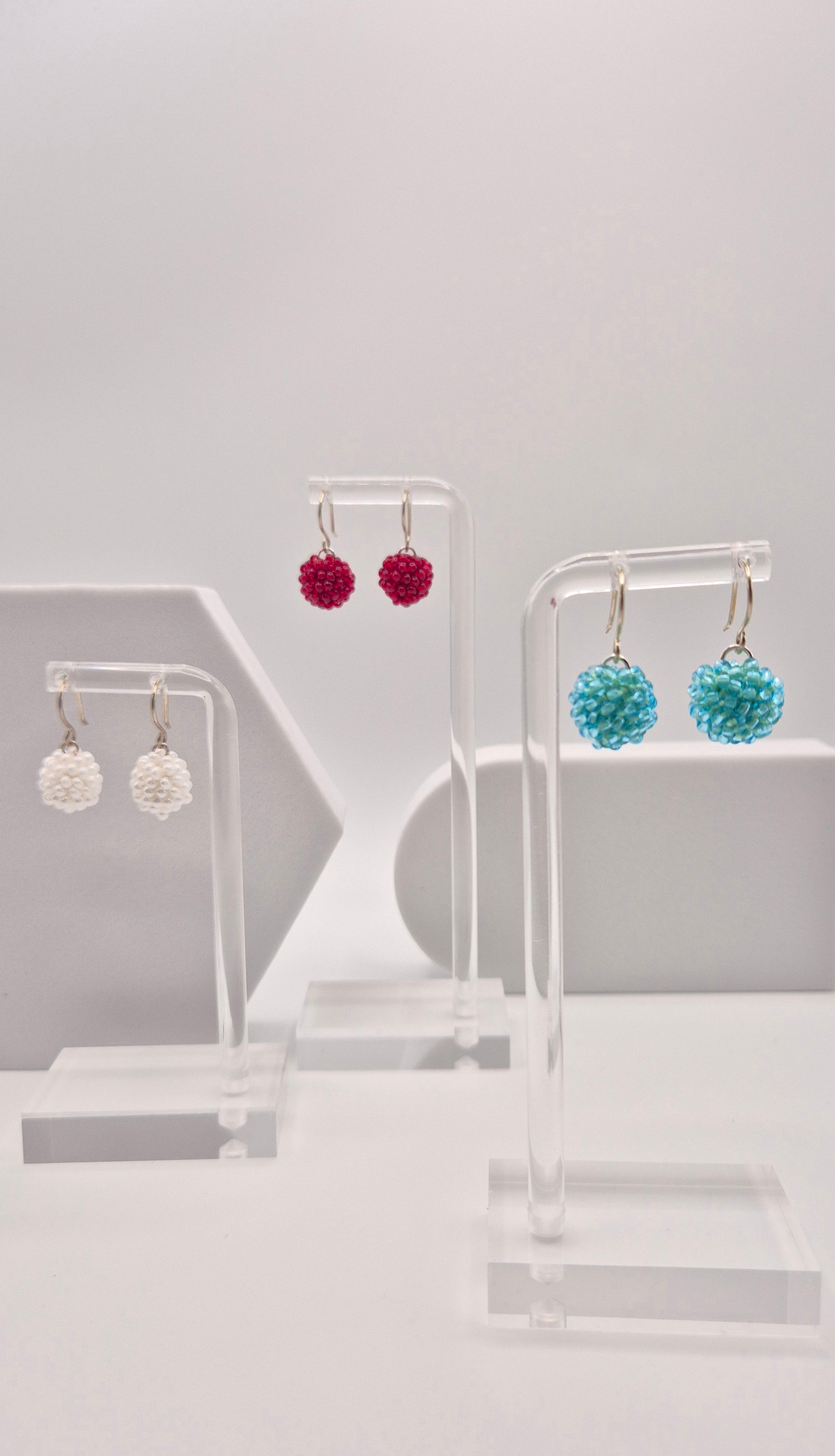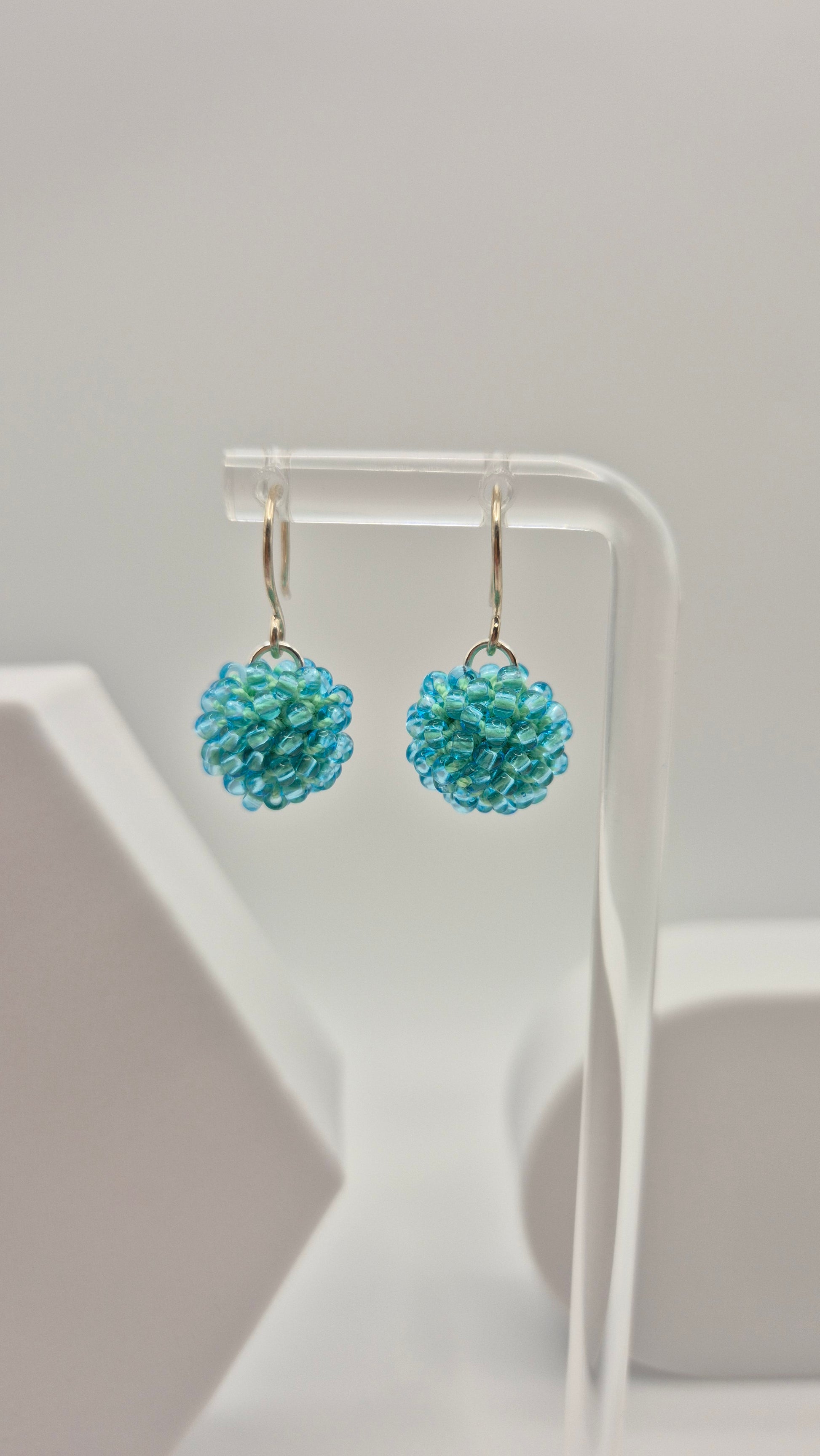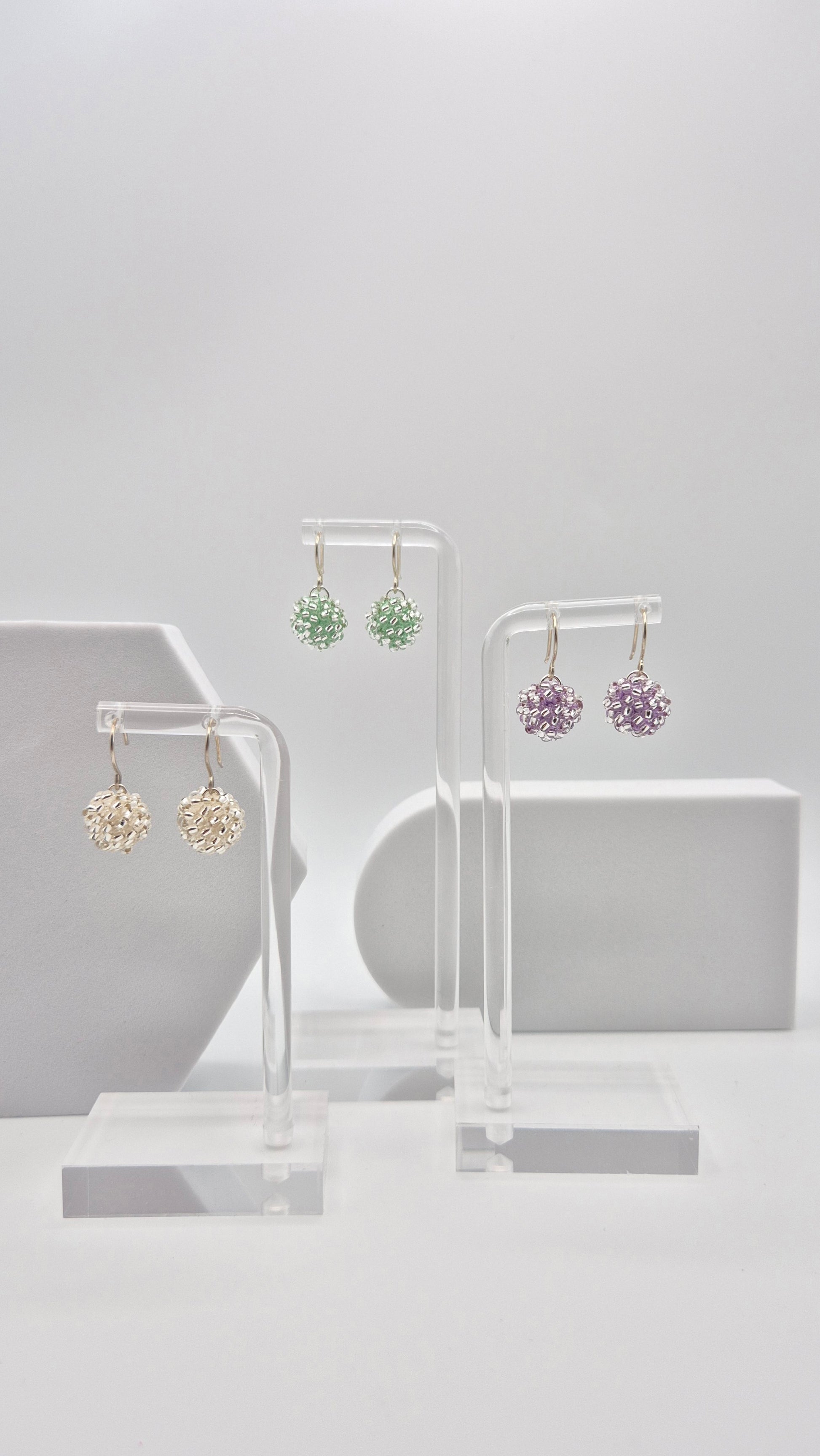 Einzigartige KUULA Hänger . Auf Baumwollgarn aufgezogene 2,5 - 3 mm große Rocailles Glasperlen, in aufwändiger Häkeltechnik von Hand hergestellt. Die Ohrringe haben jeweils einen Anhänger in Form einer Kugel gehäkelt und vernäht. Die Öse ist eingehäkelt und vernäht. Der Schmuck kommt komplett ohne Kleber aus.