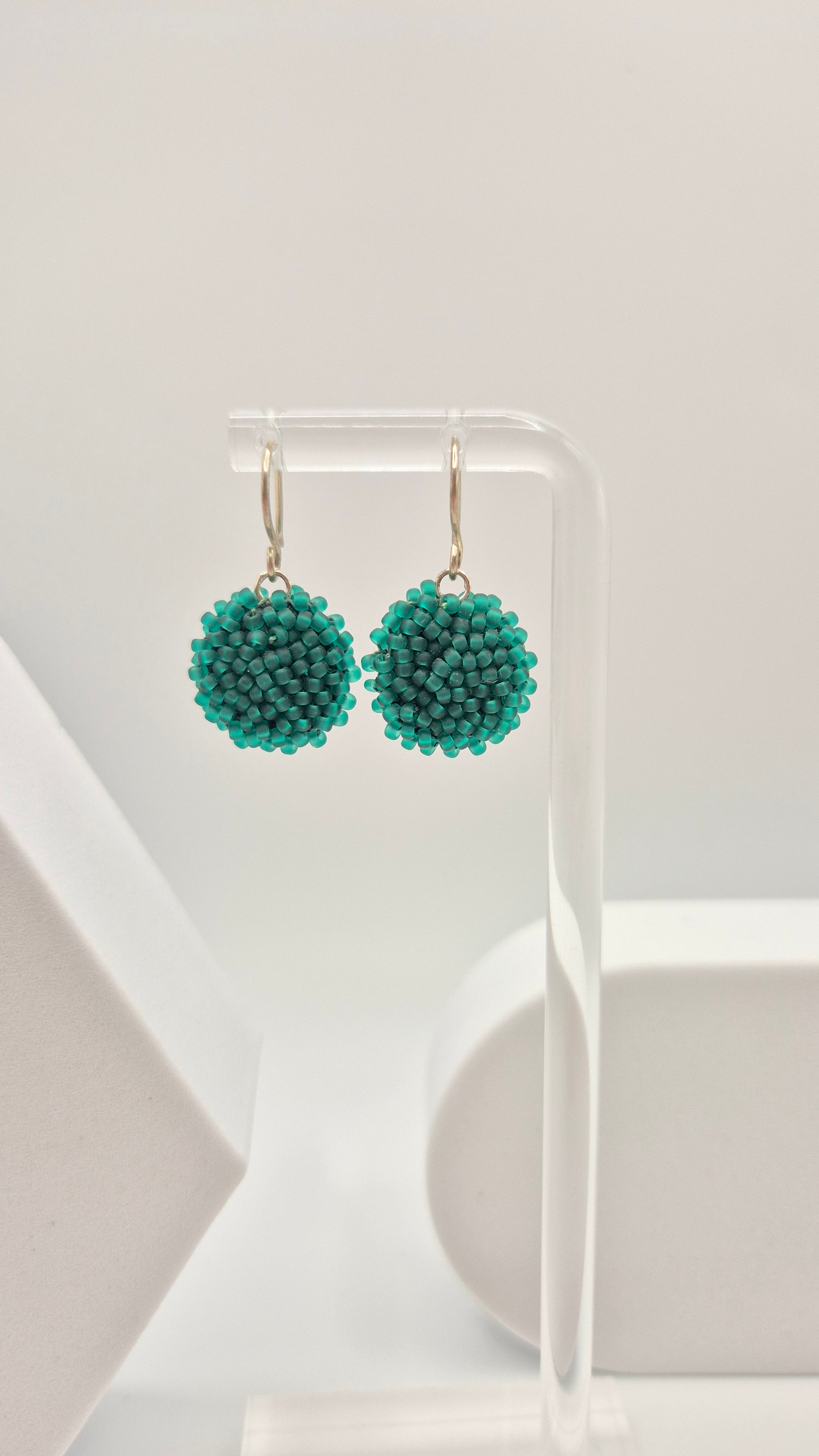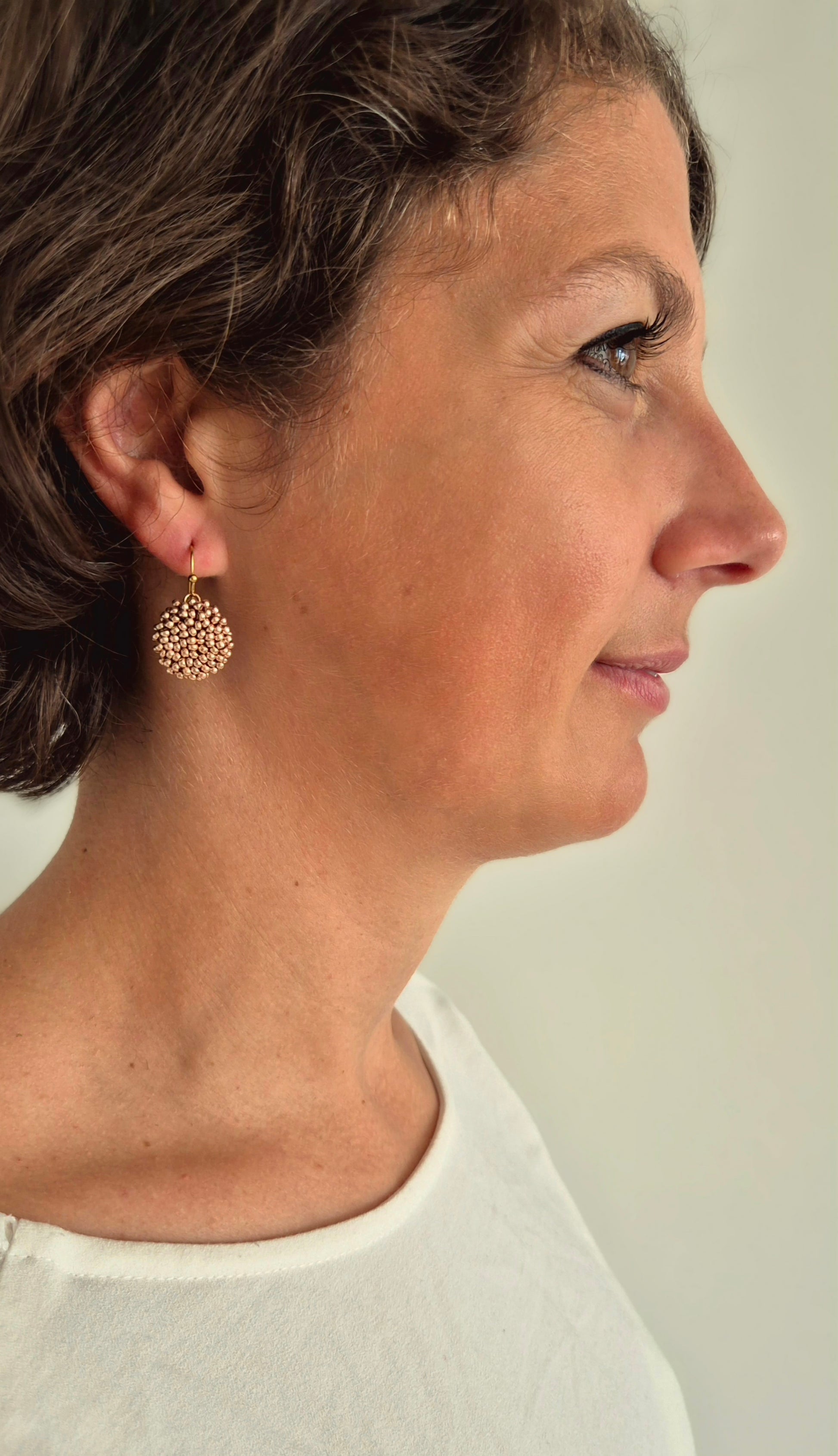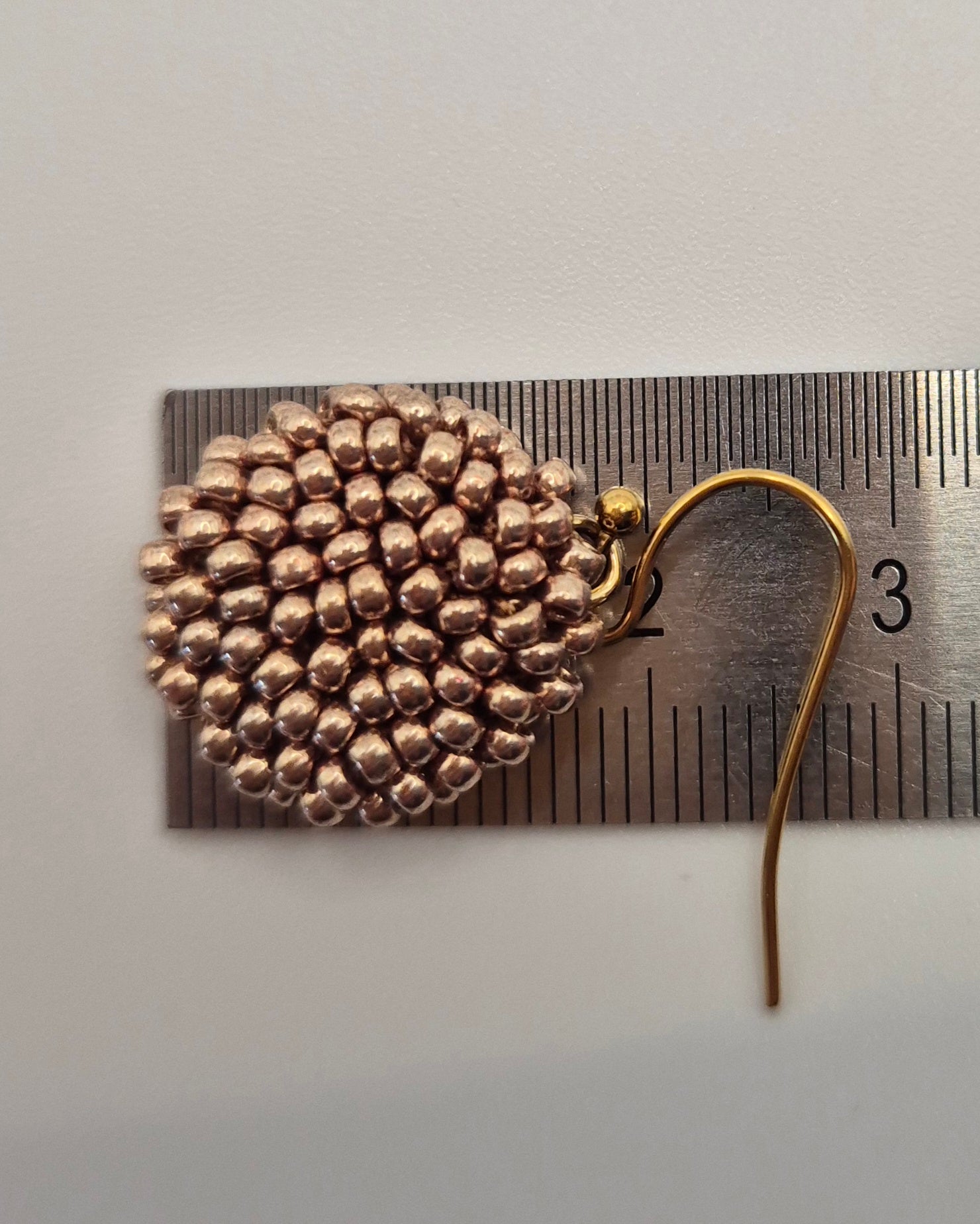 Einzigartige LINNSI Hänger. Auf Baumwollgarn aufgezogene 2mm große Rocailles Glasperlen, in aufwändiger Häkeltechnik von Hand hergestellt. Die Ohrringe haben jeweils einen Anhänger in Form einer Linse gehäkelt und vernäht. Die Öse ist eingehäkelt und vernäht. Der Schmuck kommt komplett ohne Kleber aus.