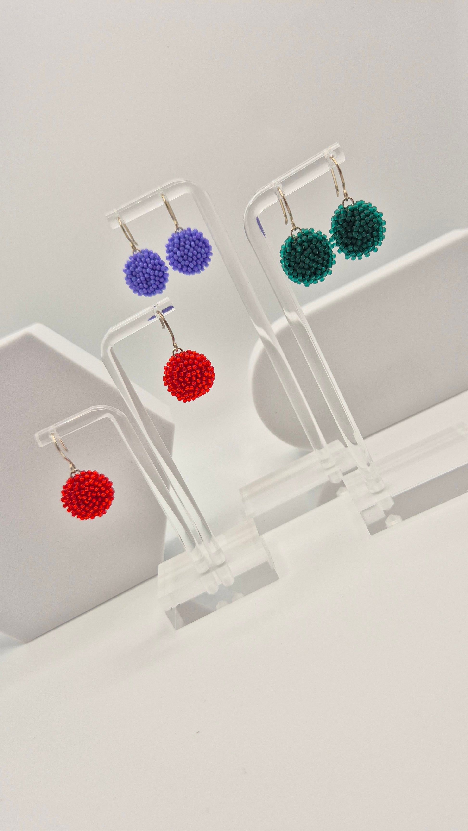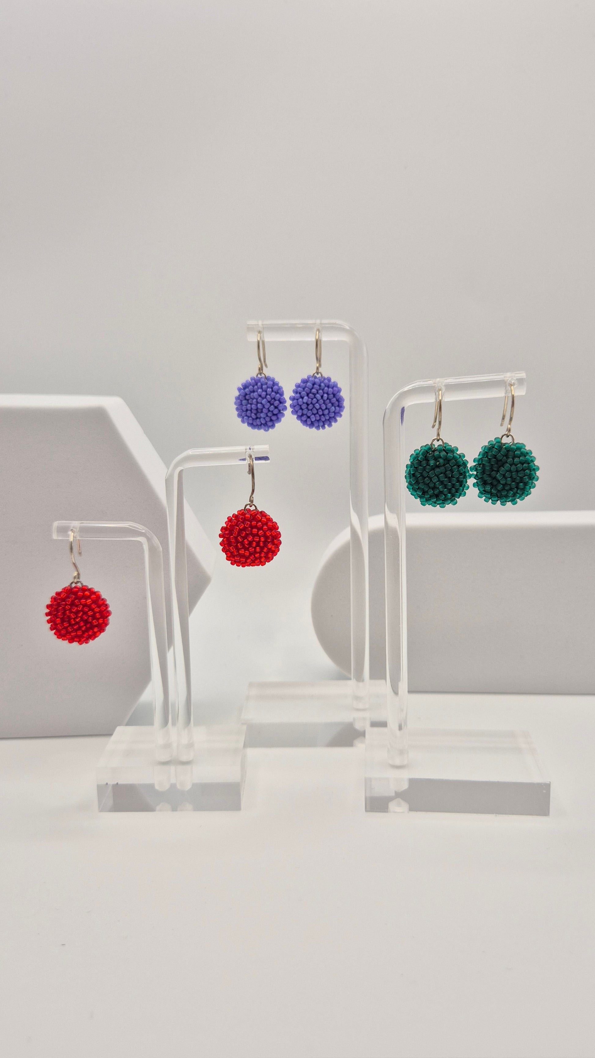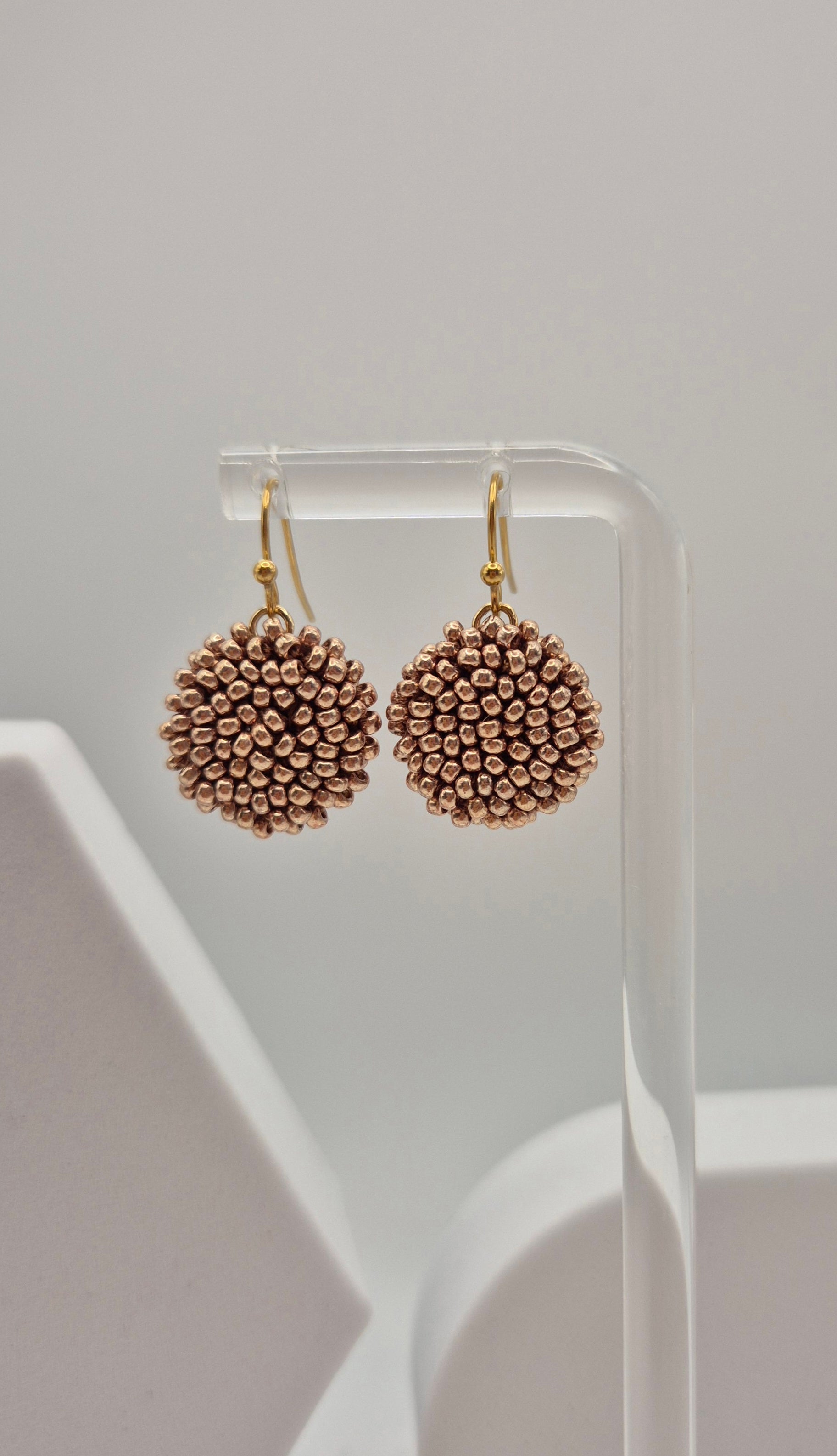 Einzigartige LINNSI Hänger. Auf Baumwollgarn aufgezogene 2mm große Rocailles Glasperlen, in aufwändiger Häkeltechnik von Hand hergestellt. Die Ohrringe haben jeweils einen Anhänger in Form einer Linse gehäkelt und vernäht. Die Öse ist eingehäkelt und vernäht. Der Schmuck kommt komplett ohne Kleber aus.