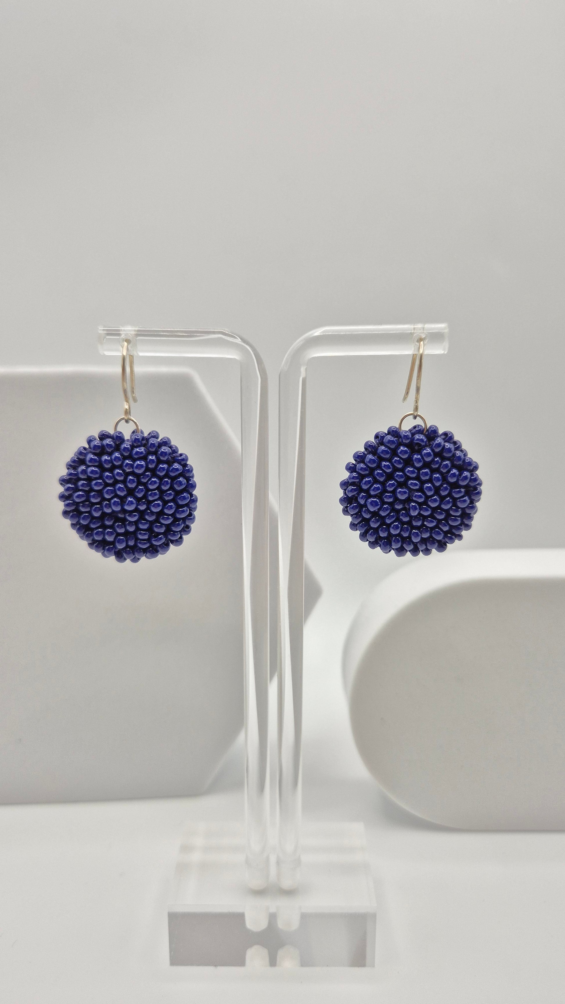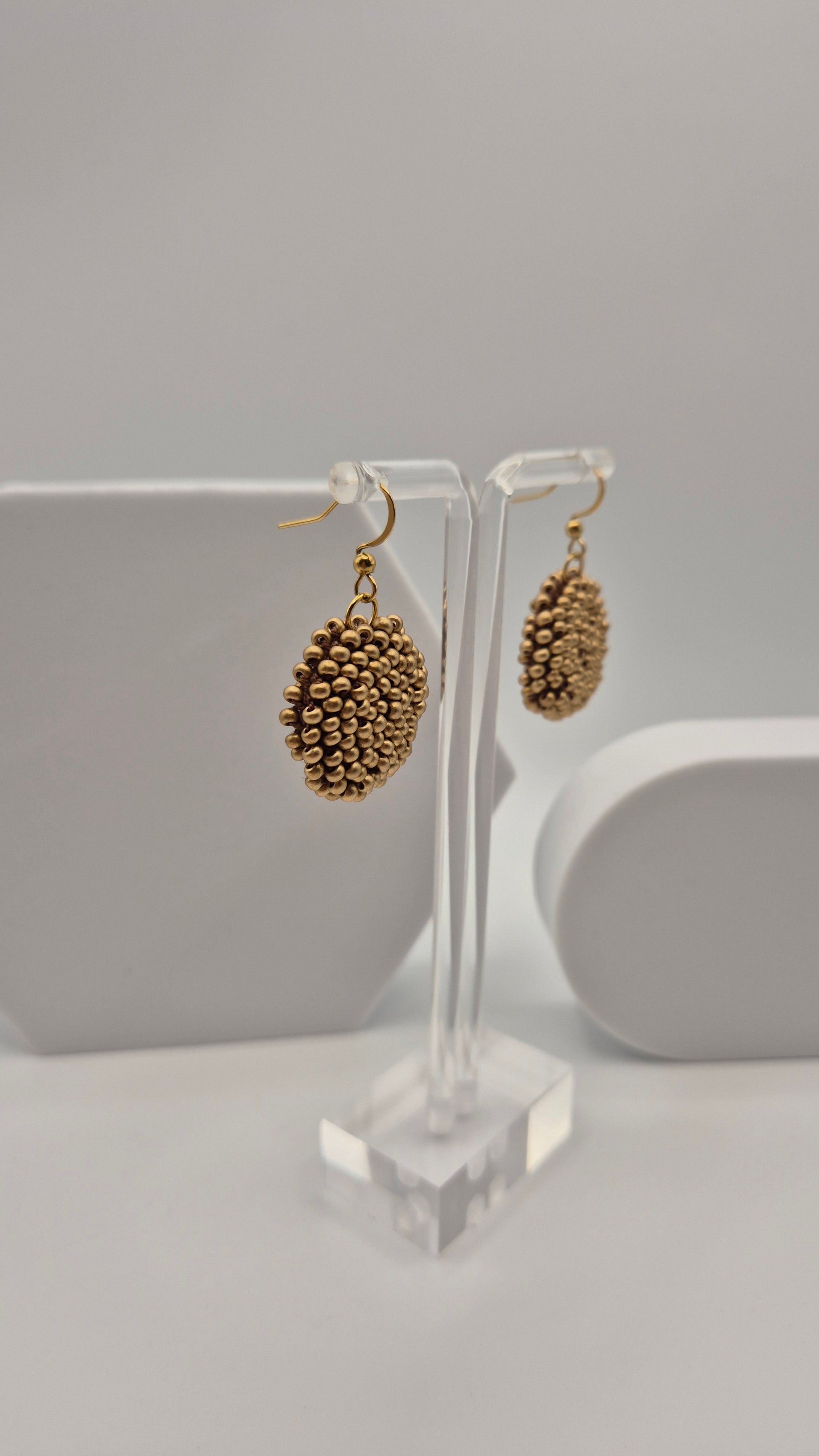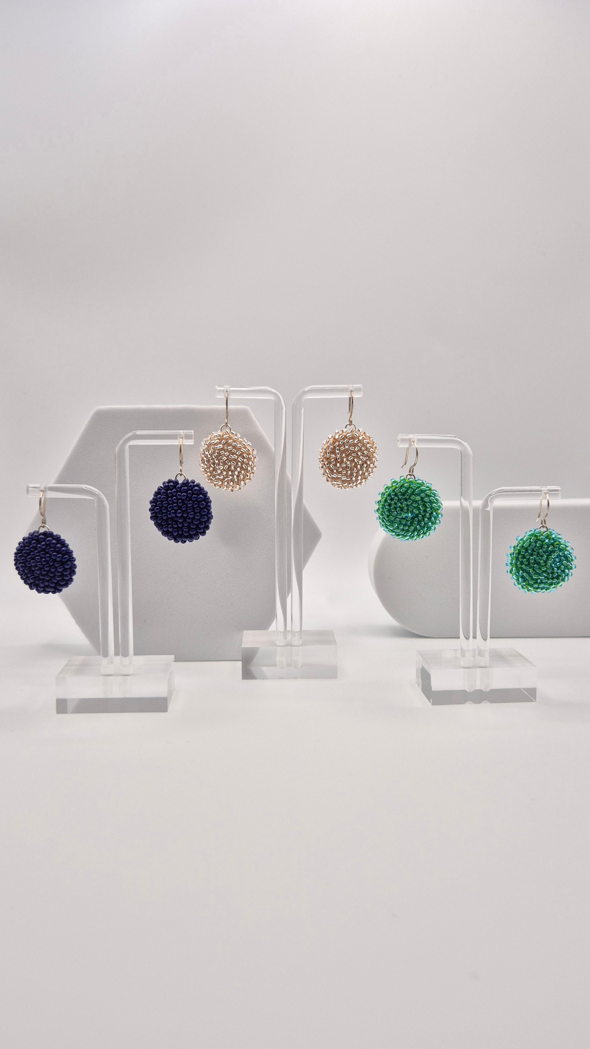 Einzigartige LINNSI Hänger . Auf Baumwollgarn aufgezogene 2,5 - 3 mm große Rocailles Glasperlen, in aufwändiger Häkeltechnik von Hand hergestellt. Die Ohrringe haben jeweils einen Anhänger in Form einer Linse gehäkelt und vernäht. Die Öse ist eingehäkelt und vernäht. Der Schmuck kommt komplett ohne Kleber aus.