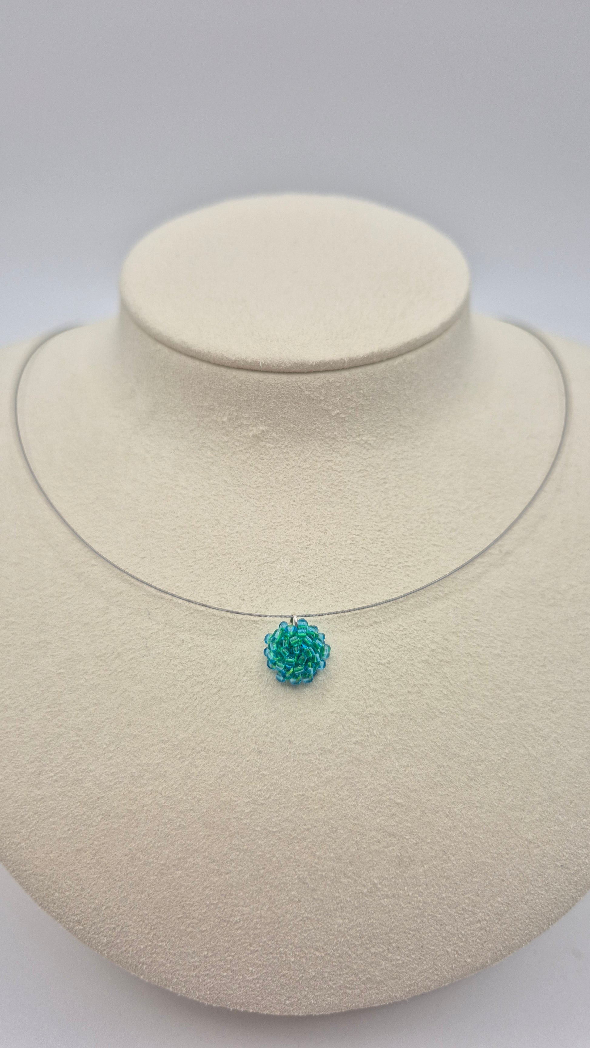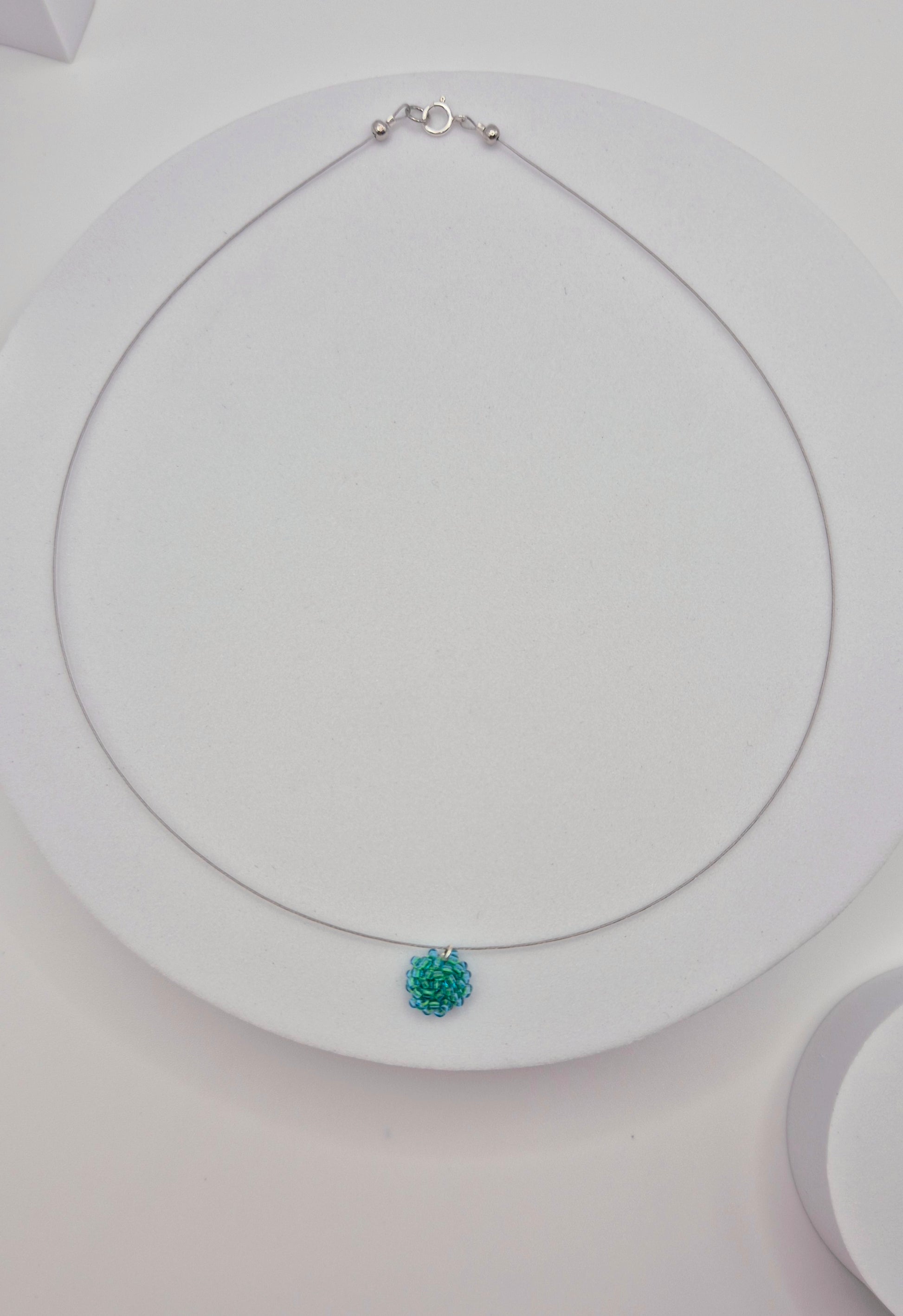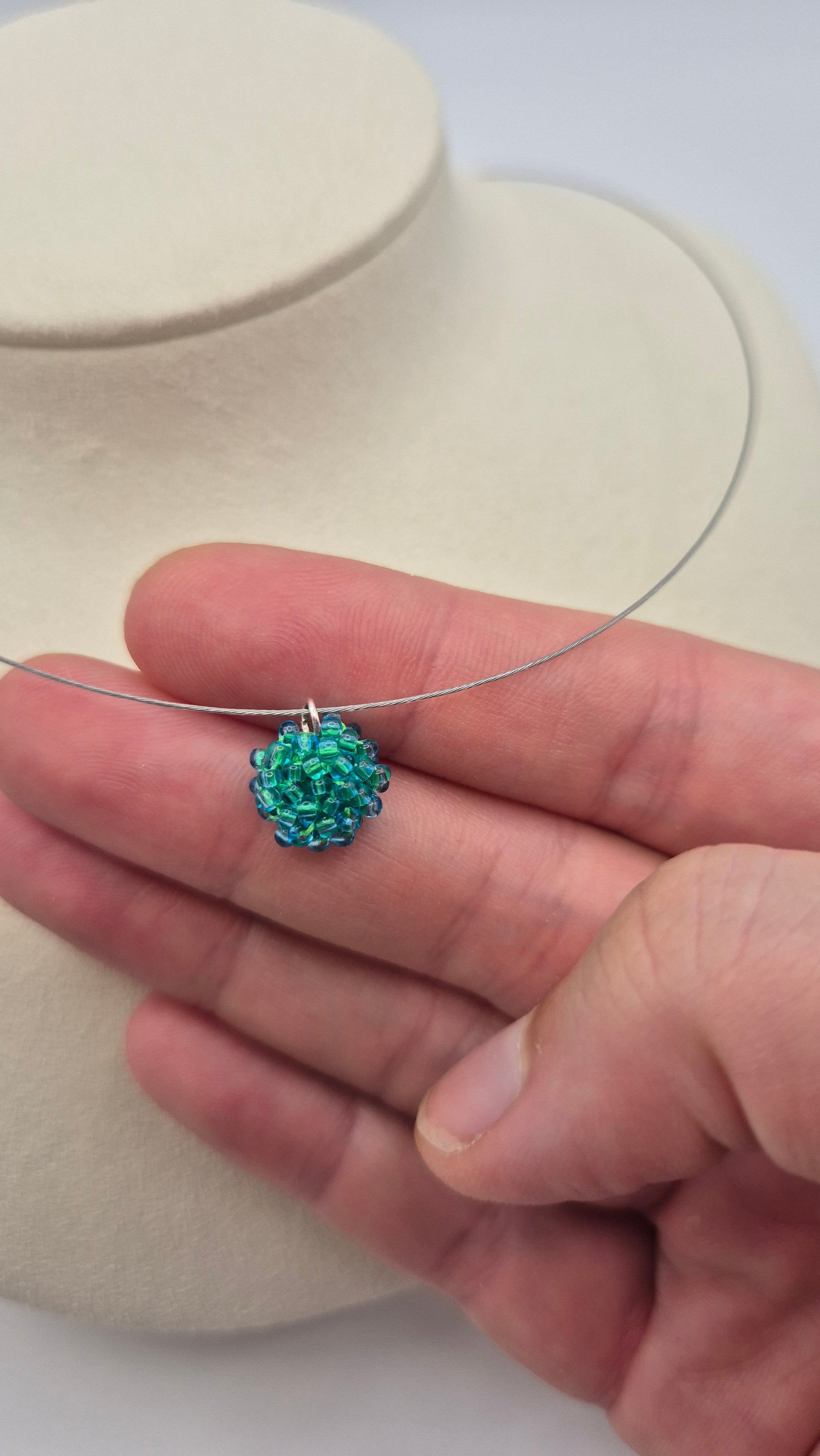 Einzigartige LINNSI Kette. Auf Baumwollgarn aufgezogene 2mm große Rocailles Glasperlen, in aufwändiger Häkeltechnik von Hand hergestellt. Die Kette besteht aus 7-strängiger Edelstahlseide (super reißfest und rostfrei) und besitzt einen Anhänger in Form einer Linse gehäkelt und vernäht. Die Öse ist eingehäkelt und vernäht. Der Schmuck kommt komplett ohne Kleber aus.