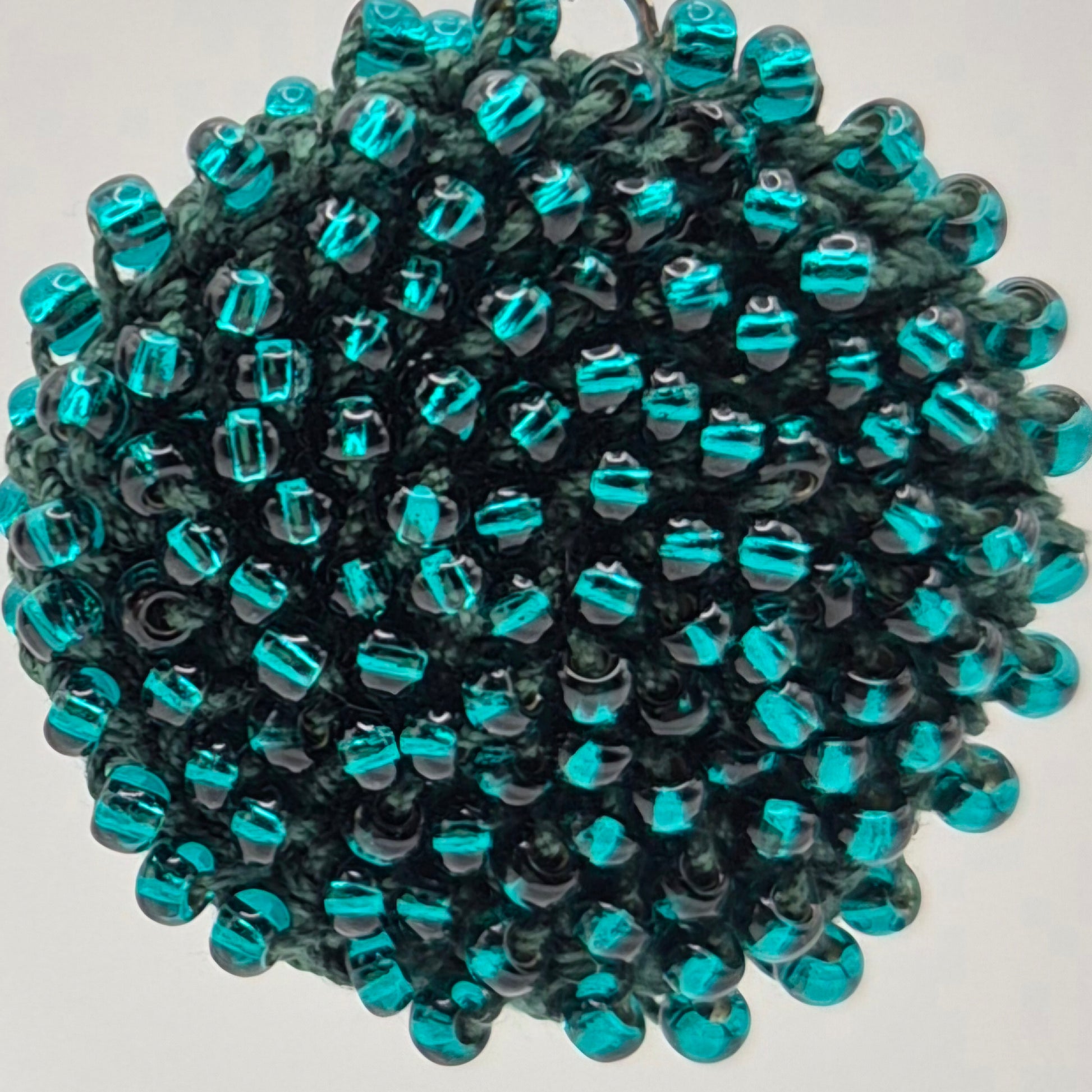 Einzigartige LINNSI Kette. Auf Baumwollgarn aufgezogene 3mm große Rocailles Glasperlen, in aufwändiger Häkeltechnik von Hand hergestellt. Die Kette besteht aus 7-strängiger Edelstahlseide (super reißfest und rostfrei) und besitzt einen Anhänger in Form einer Linse gehäkelt und vernäht. Die Öse ist eingehäkelt und vernäht. Der Anhänger kommt mit einer Schlaufe mit Feder ("Karabinerfunktion"). Der Schmuck kommt komplett ohne Kleber aus.
