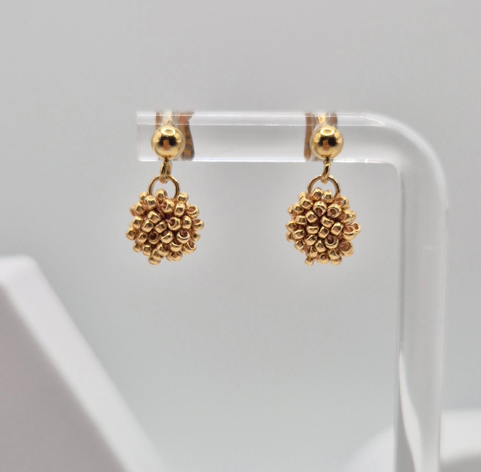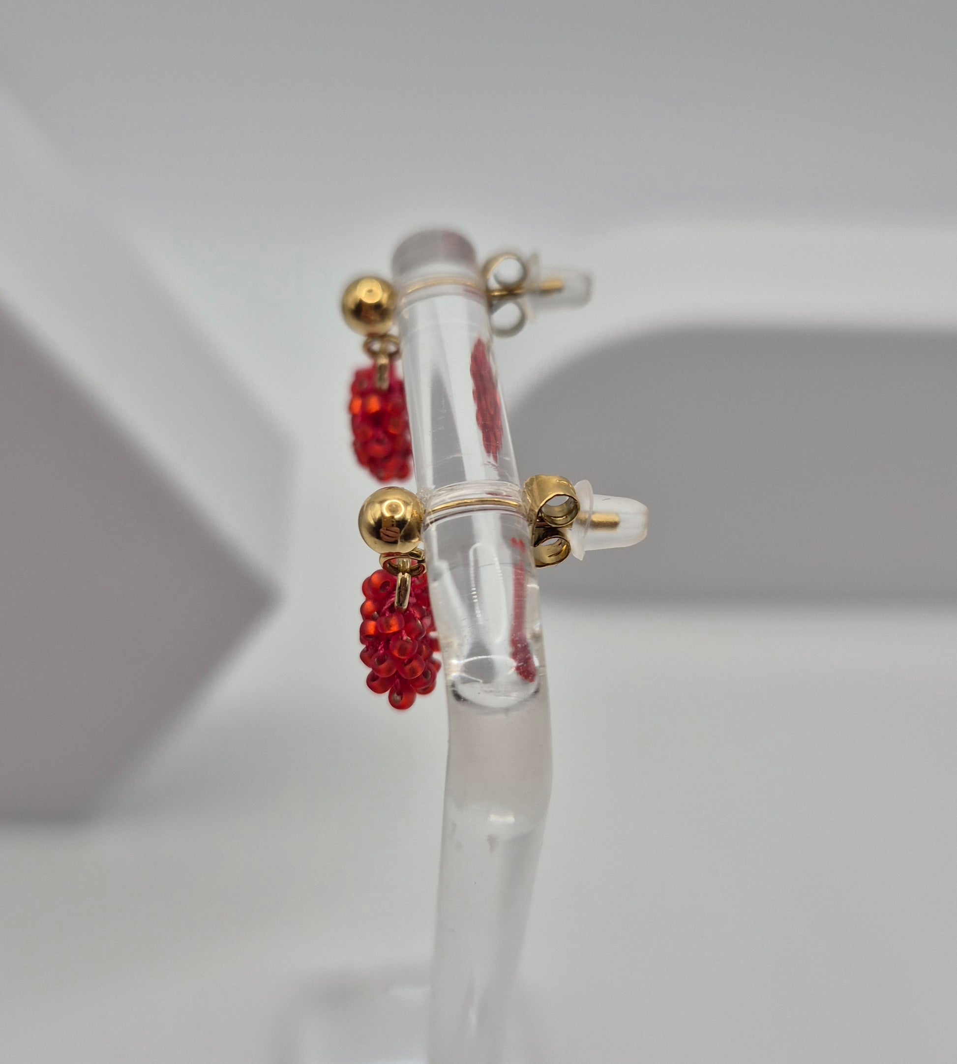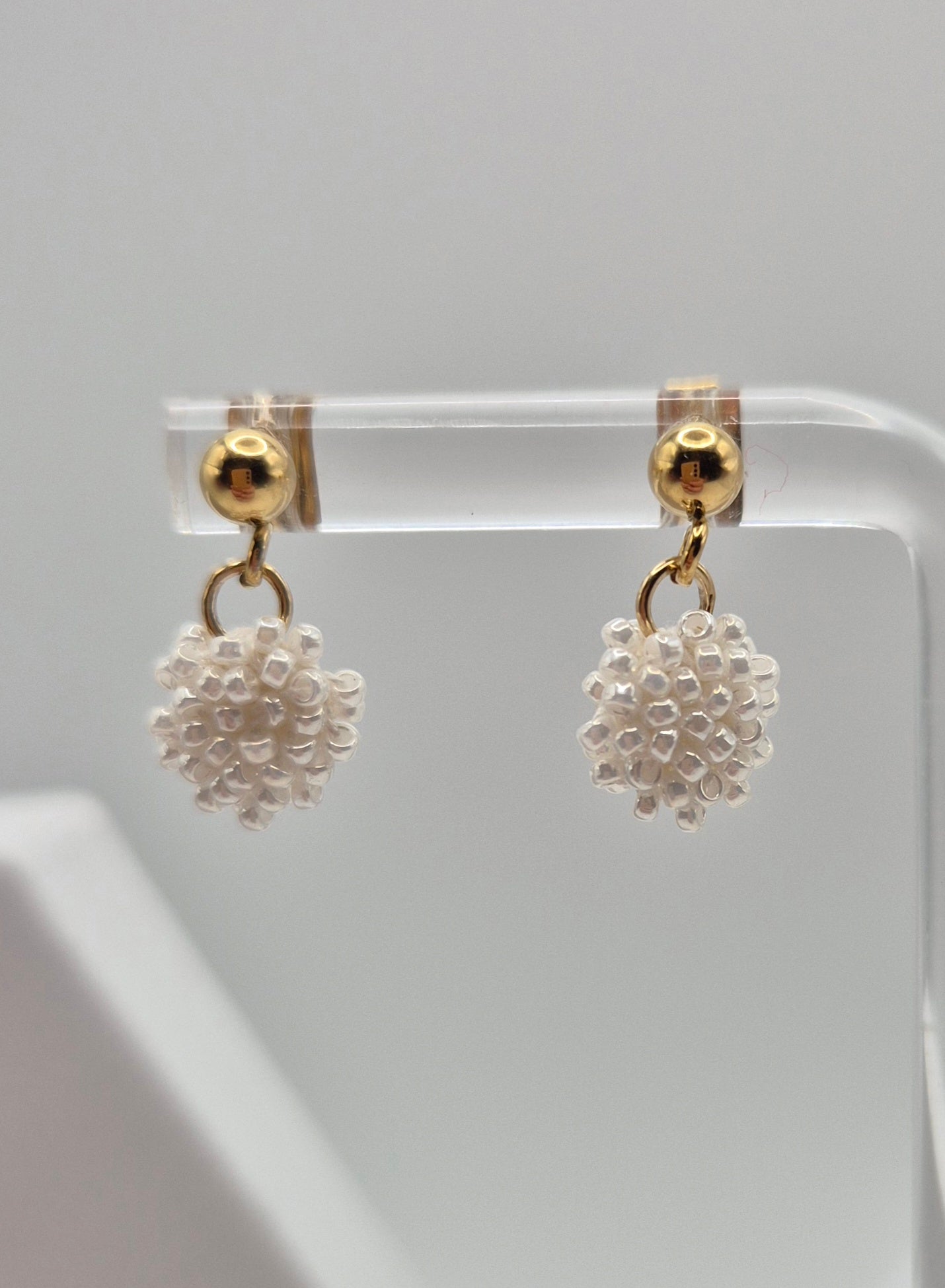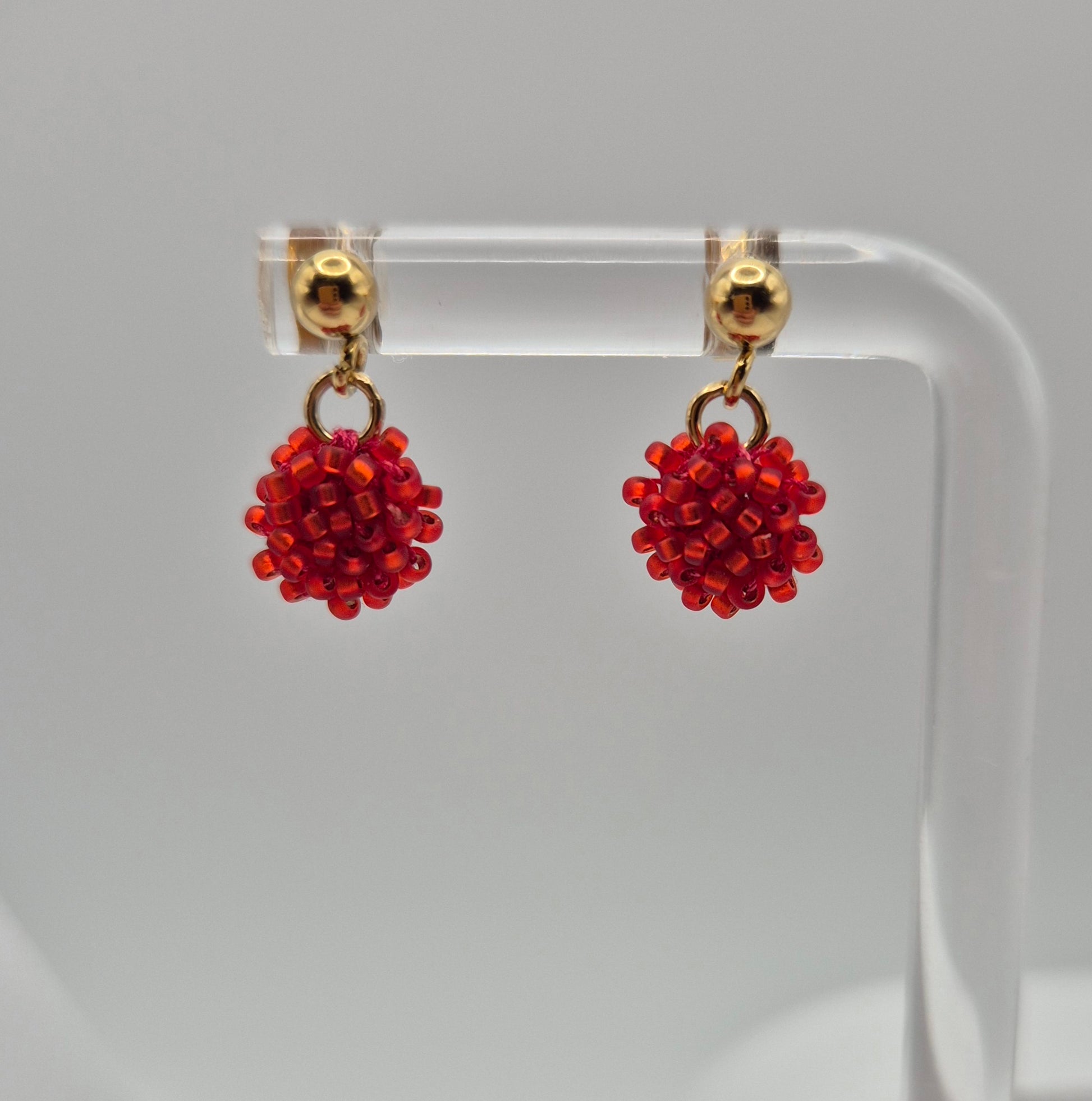Einzigartige Ohrstecker Hänger LINNSI . Auf Baumwollgarn aufgezogene 1mm große Rocailles Glasperlen, in aufwändiger Häkeltechnik von Hand hergestellt. Die Ohrringe haben jeweils einen Ohrstecker aus 304 Edelstahl vergoldet mit einem Anhänger in Form einer Linse gehäkelt und vernäht . Die Öse ist eingehäkelt und vernäht. Der Schmuck kommt komplett ohne Kleber aus.