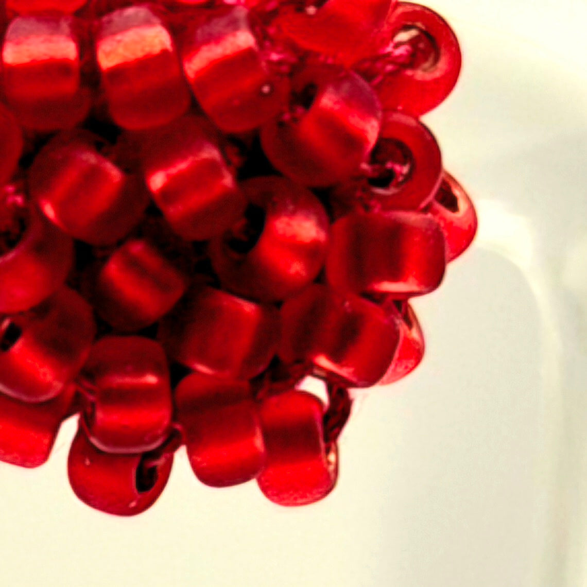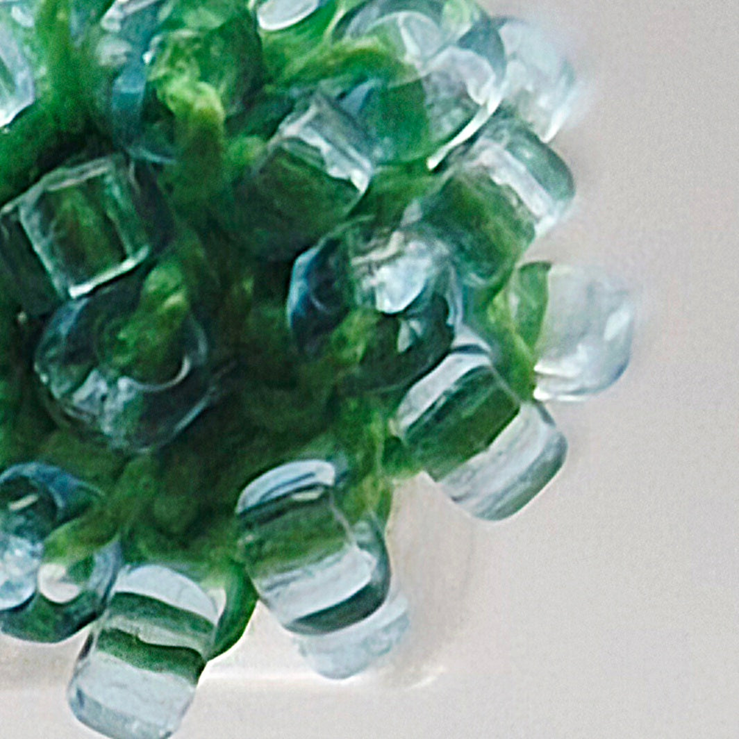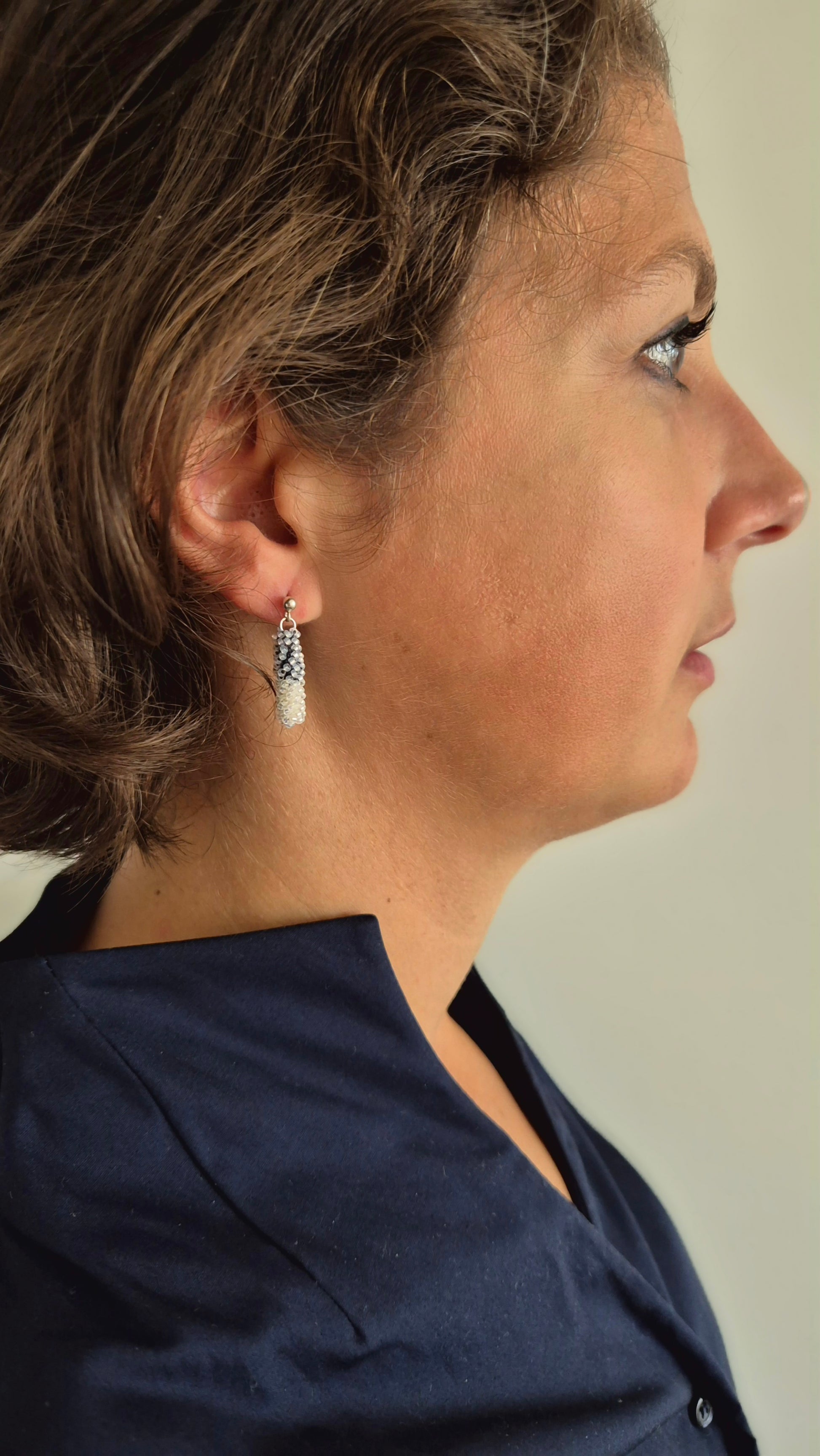 Einzigartige Ohrstecker Hänger STICK midi. Auf Baumwollgarn aufgezogene 1mm große Rocailles Glasperlen, in aufwändiger Häkeltechnik von Hand hergestellt.