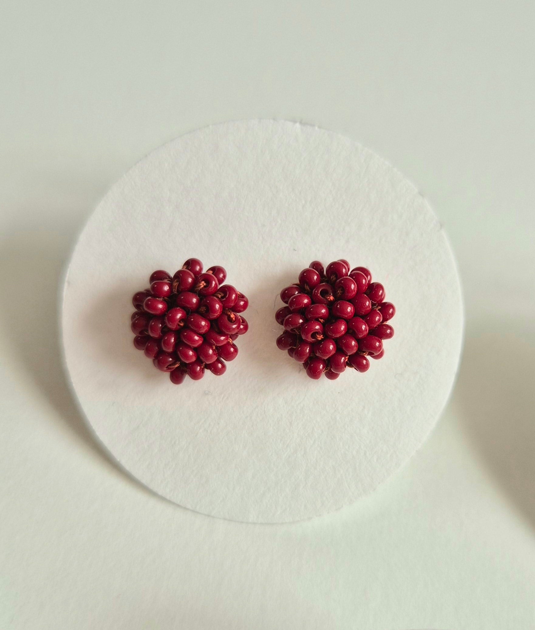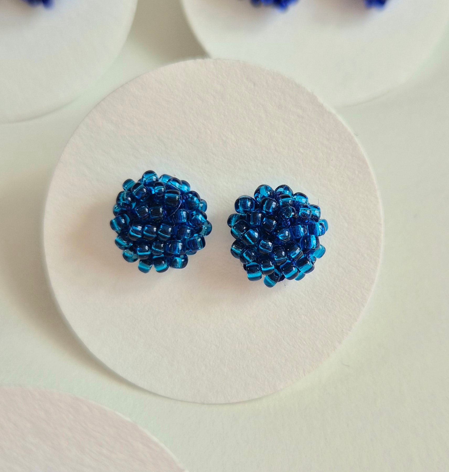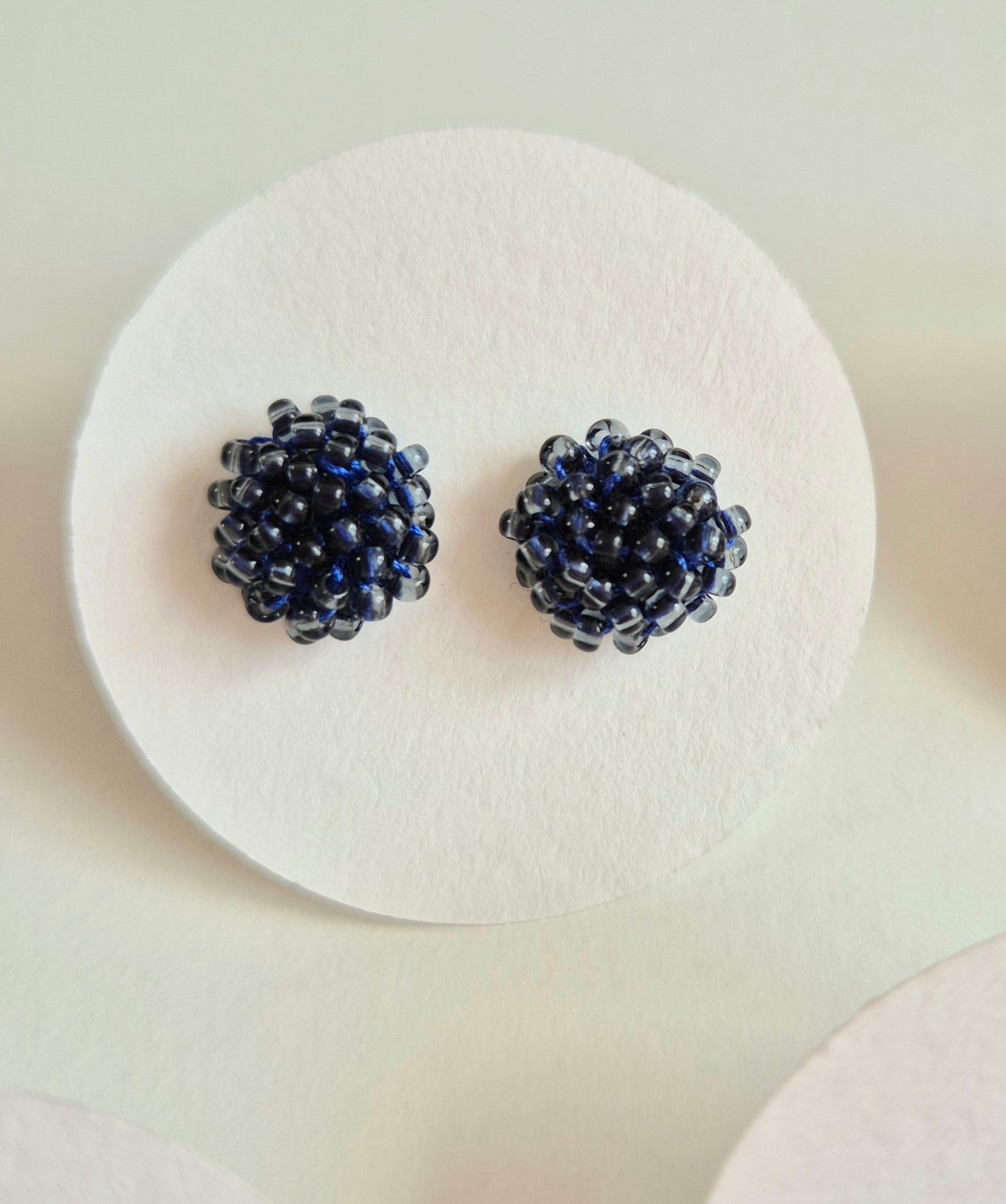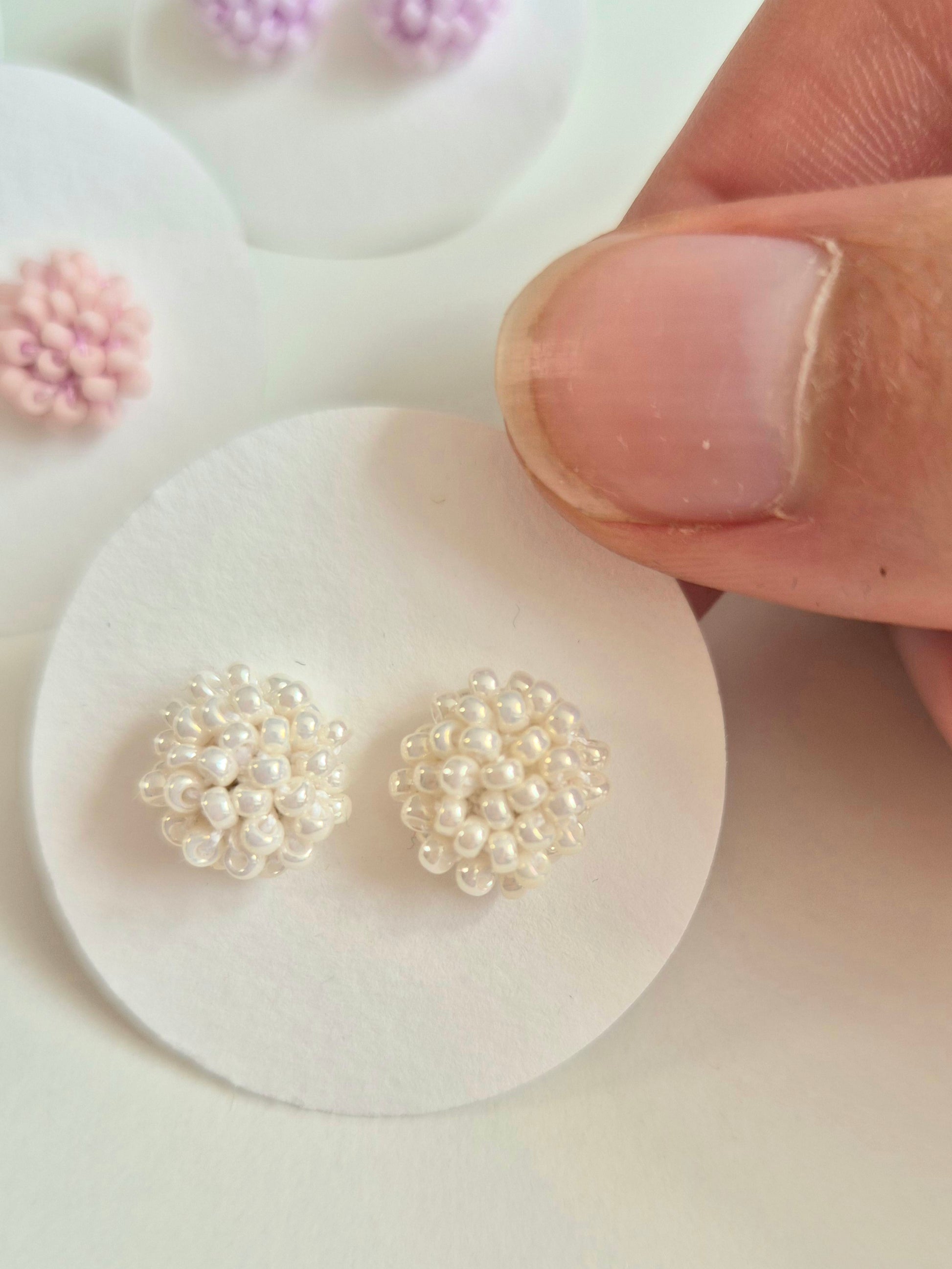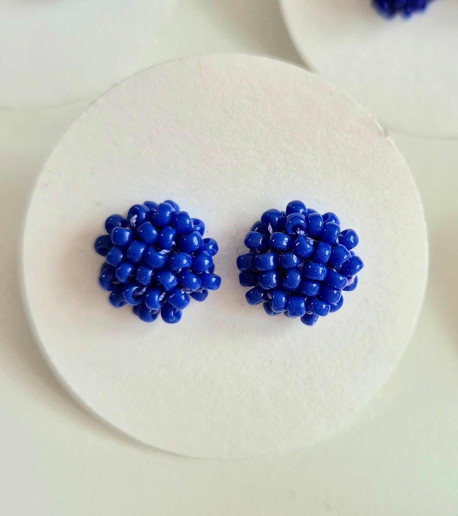 Einzigartige Ohrstecker LINNSI. Auf Baumwollgarn aufgezogene 2mm große Rocailles Glasperlen, in aufwändiger Häkeltechnik von Hand hergestellt. Die Stecker sind in Form einer Linse gehäkelt und vernäht. Der Schmuck kommt komplett ohne Kleber aus.