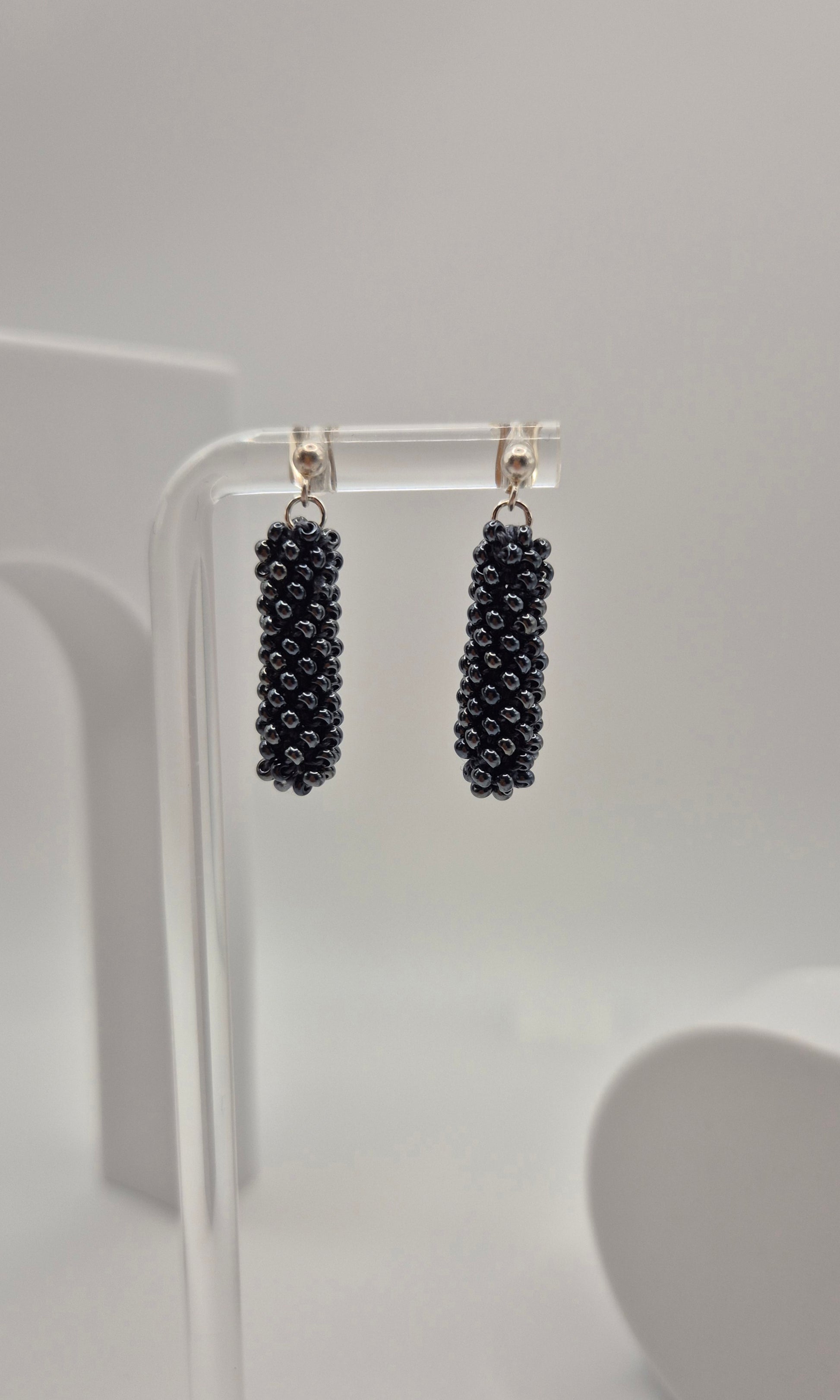 Einzigartige Ohrstecker Hänger STICK . Auf Baumwollgarn aufgezogene 2mm große Rocailles Glasperlen, in aufwändiger Häkeltechnik von Hand hergestellt. Die Ohrringe haben jeweils einen Ohrstecker mit einem Anhänger in Form eines Stäbchens gehäkelt und vernäht . Die Öse ist eingehäkelt und vernäht. Der Schmuck kommt komplett ohne Kleber aus.