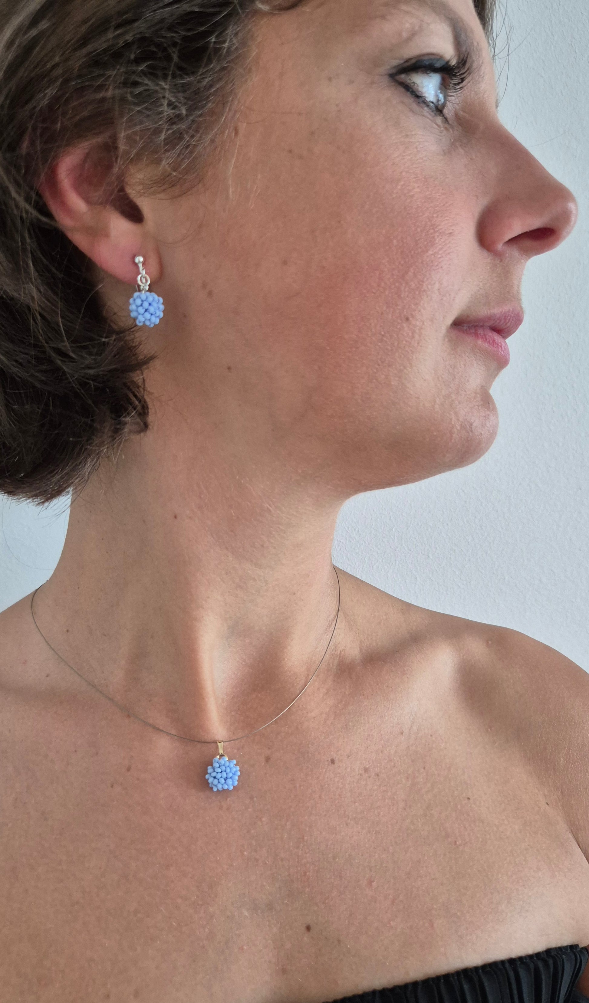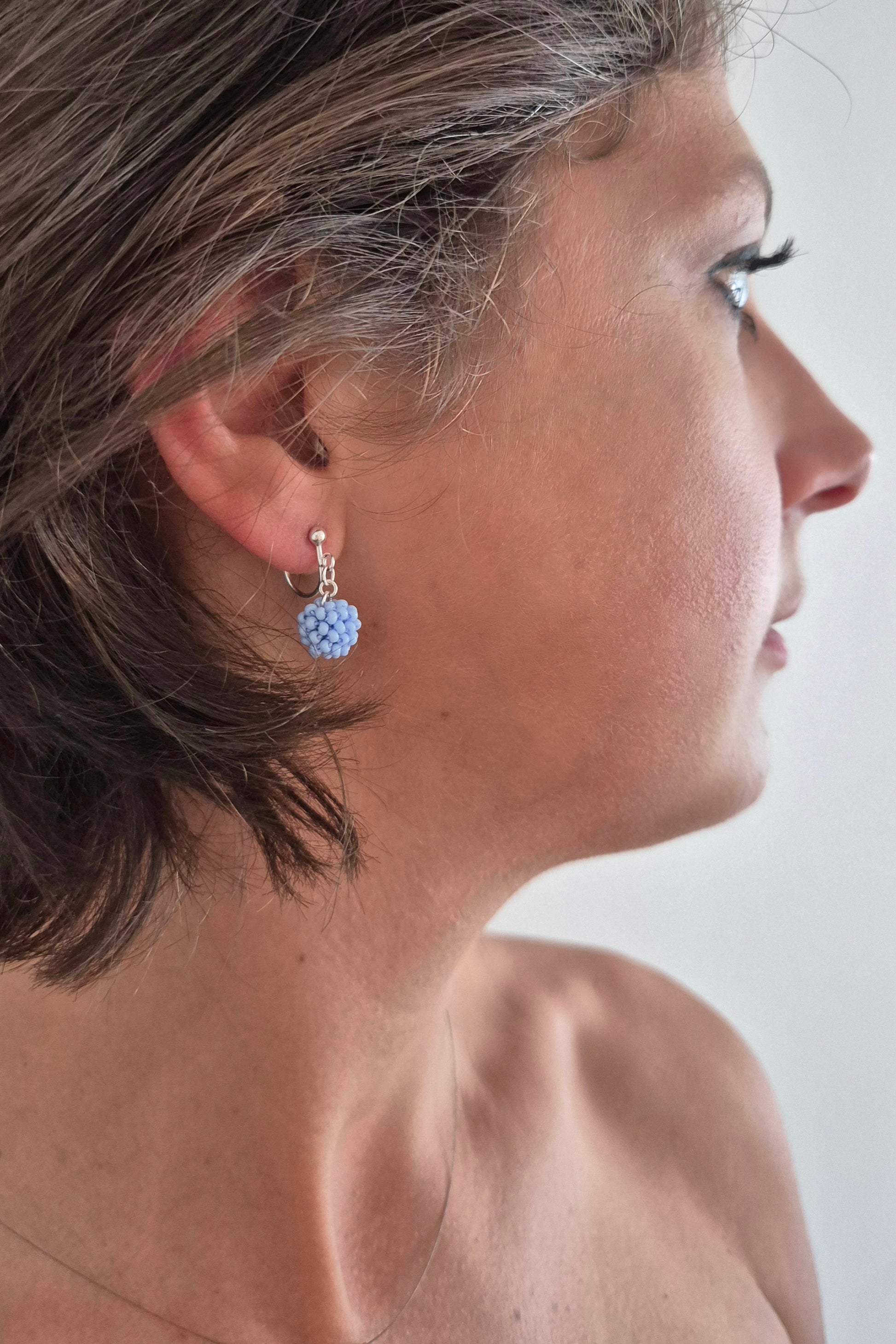 Einzigartige KUULA Hänger für Ohrläppchen ohne Löcher. Auf Baumwollgarn aufgezogene 2mm große Rocailles Glasperlen, in aufwändiger Häkeltechnik von Hand hergestellt. Die Ohrringe haben jeweils einen Anhänger in Form einer Kugel gehäkelt und vernäht. Die Öse ist eingehäkelt und vernäht. Der Schmuck kommt komplett ohne Kleber aus.