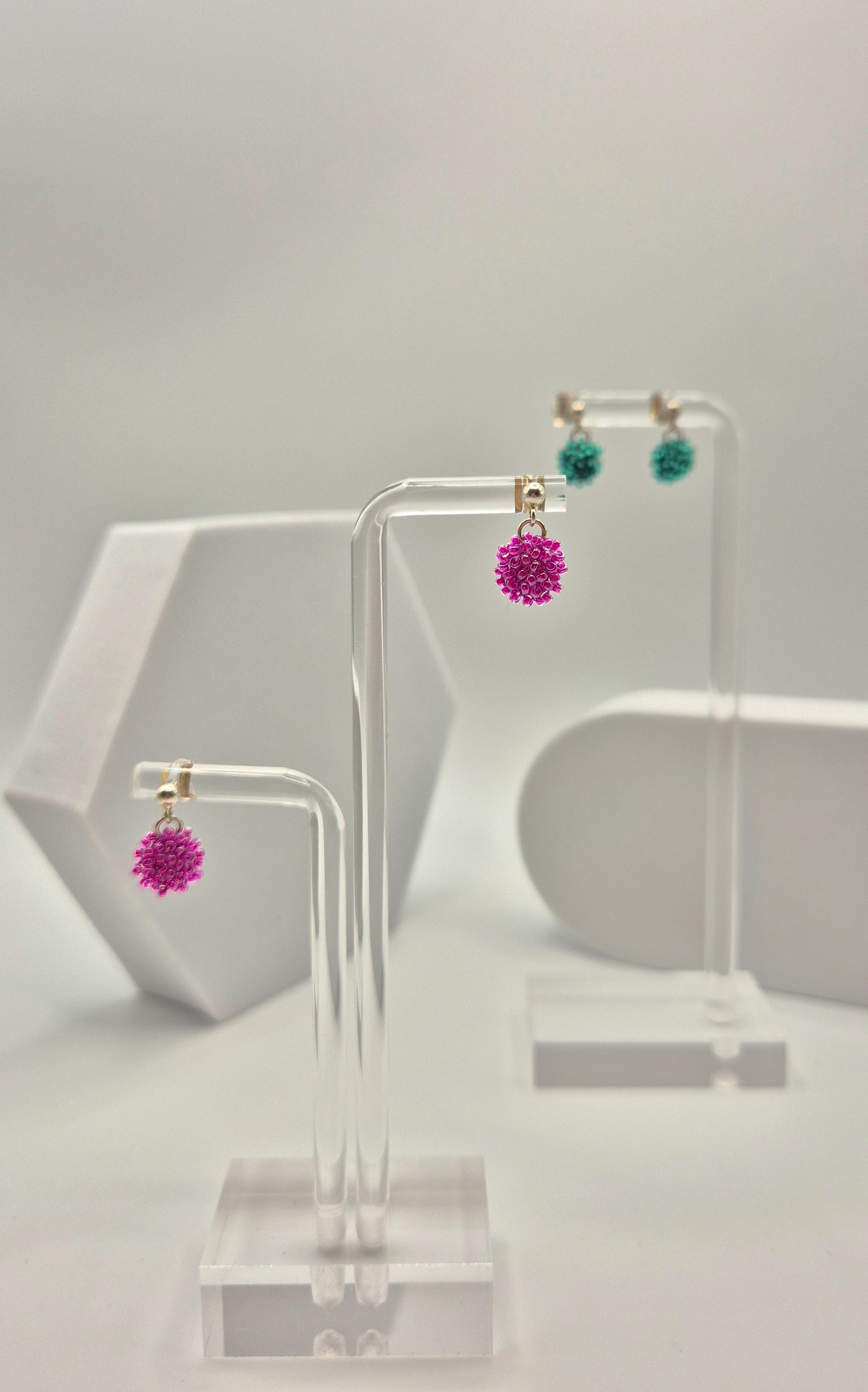 Einzigartige Ohrstecker Hänger LINNSI . Auf Baumwollgarn aufgezogene 1mm große Rocailles Glasperlen, in aufwändiger Häkeltechnik von Hand hergestellt. Die Ohrringe haben jeweils einen Ohrstecker aus Silber mit einem Anhänger in Form einer Linse gehäkelt und vernäht . Die Öse ist eingehäkelt und vernäht. Der Schmuck kommt komplett ohne Kleber aus.