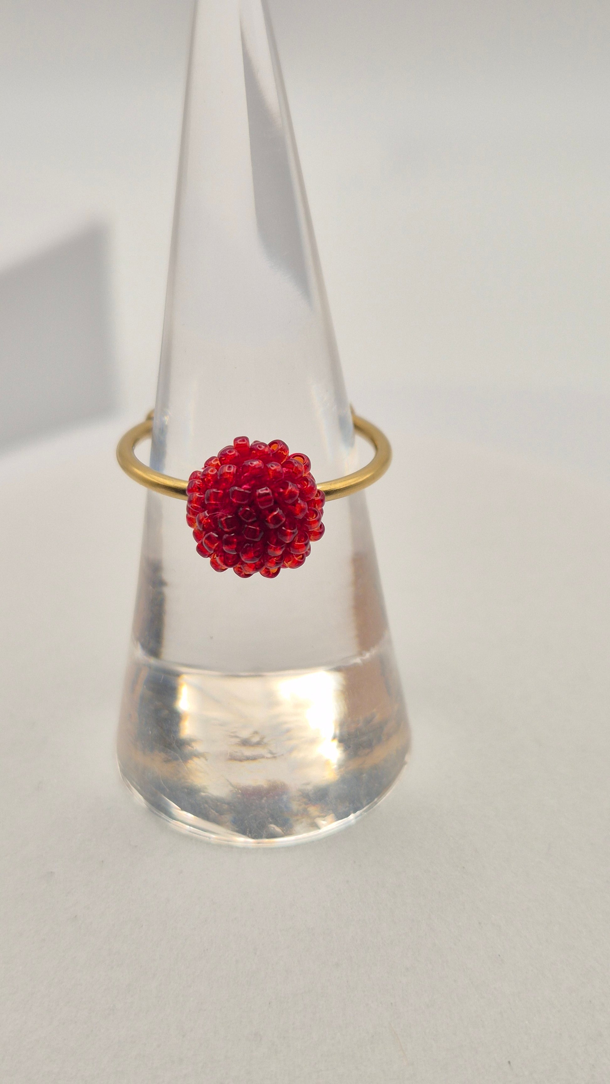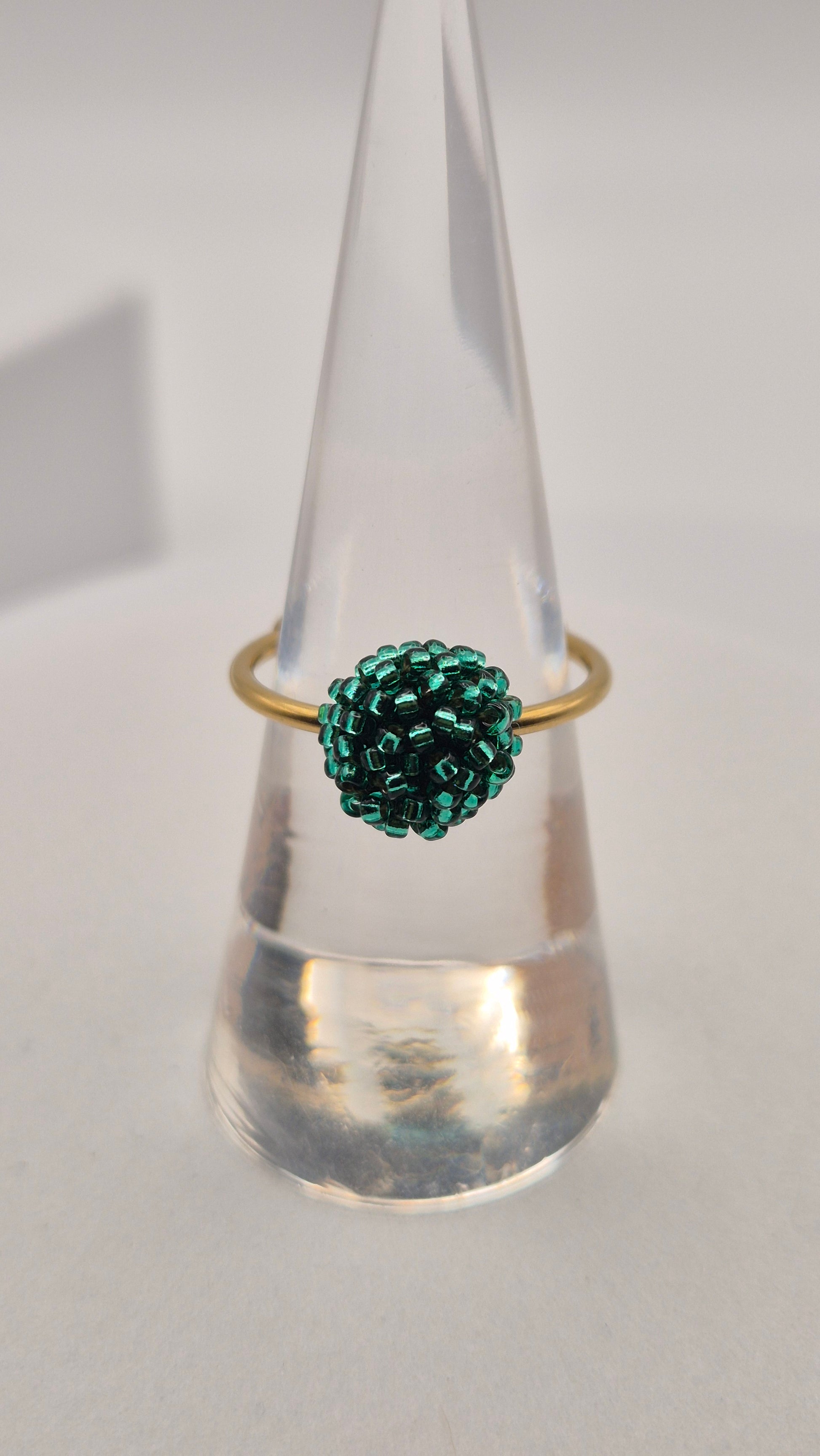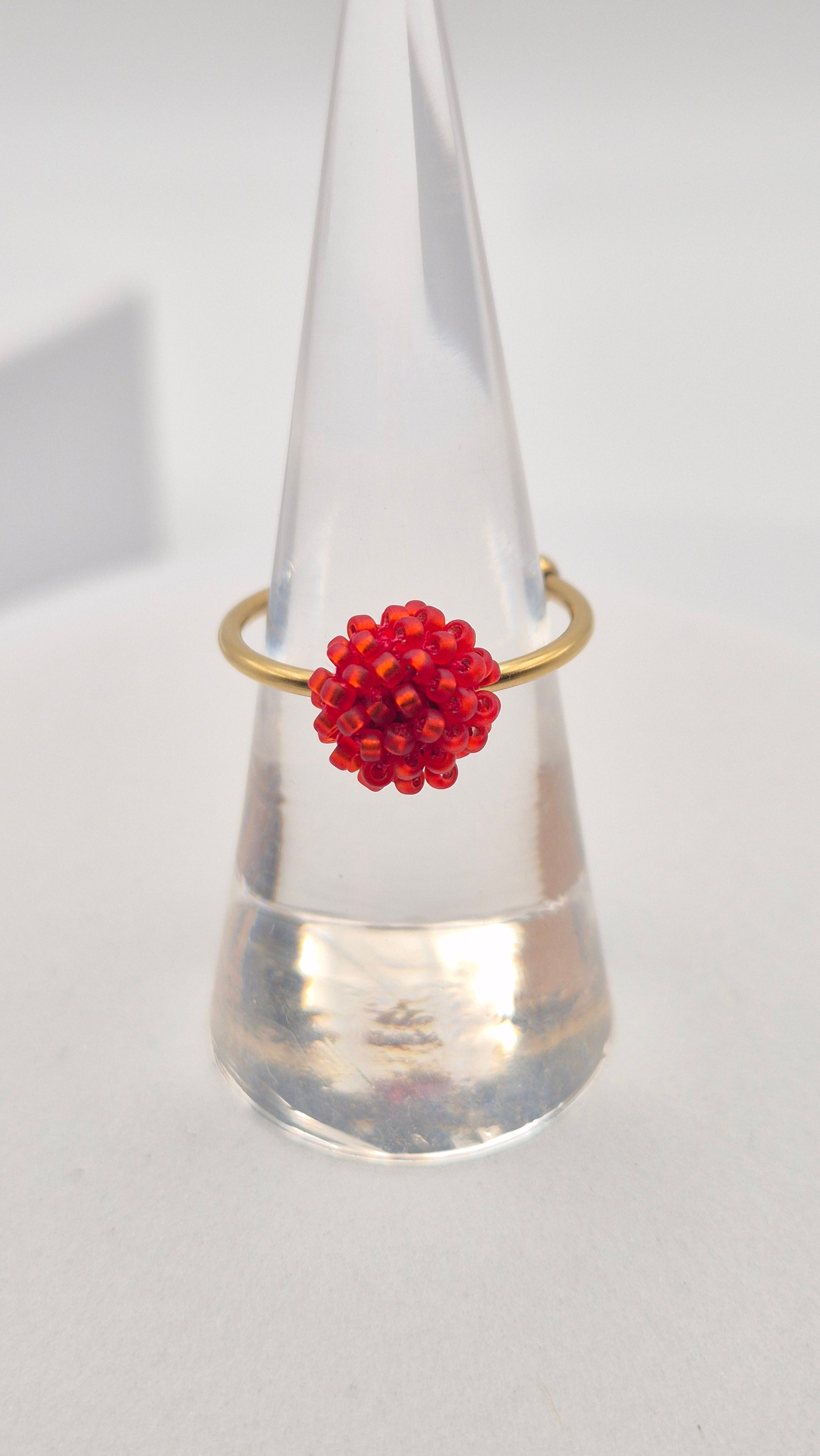 Einzigartige Ringe DOT Auf Baumwollgarn aufgezogene 1mm kleine Rocailles Glasperlen, in aufwändiger Häkeltechnik von Hand hergestellt. Der Edelstahl Ring hat eine gehäkelten Aufsatz in Form einer dickeren Linse gehäkelt und vernäht. Die auf den Ring aufgelötete Platte wird eingehäkelt und vernäht. Der Schmuck kommt komplett ohne Kleber aus.